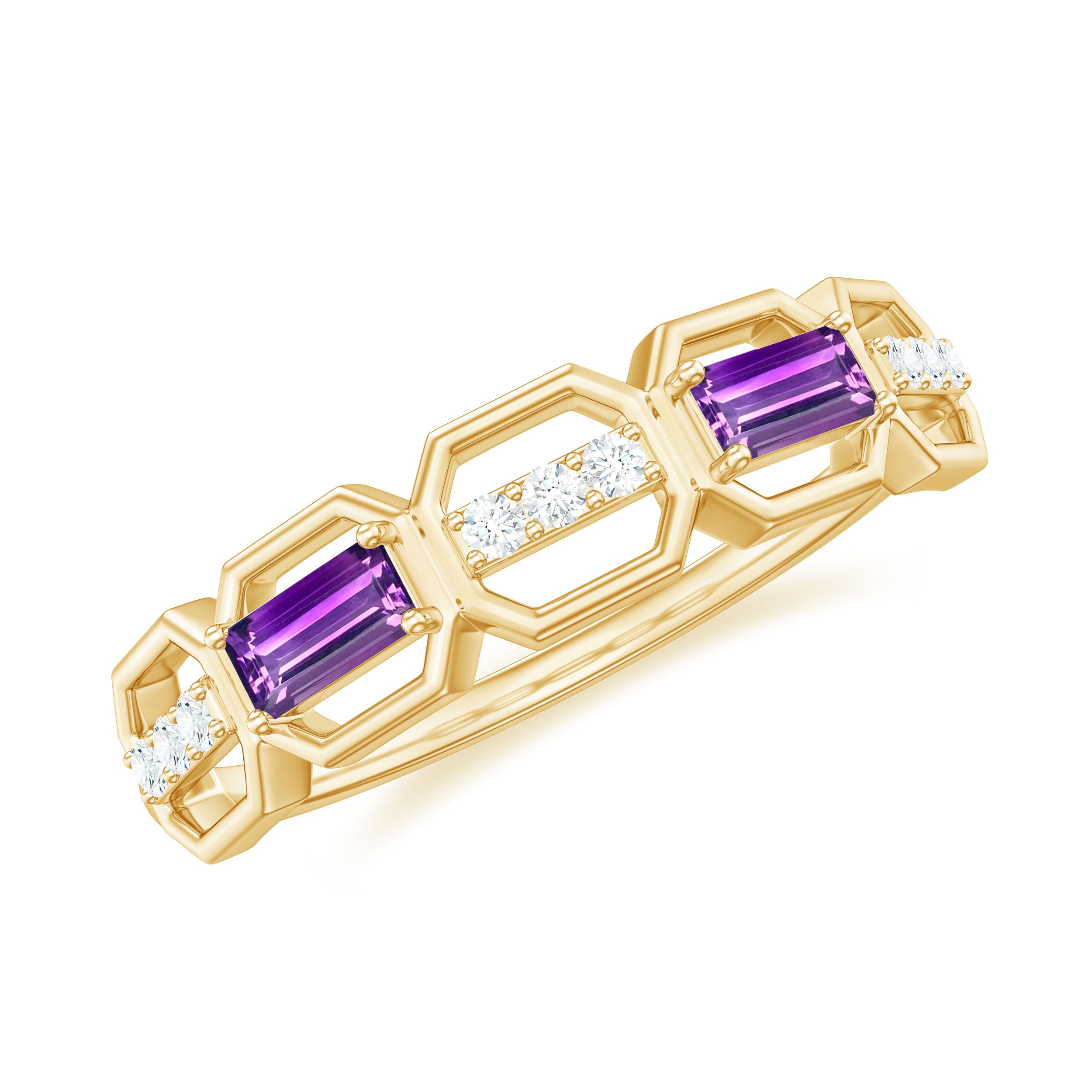 Timeless and radiant, this Classic Band Ring showcases the beauty of Amethyst and the sparkle of Diamond, a perfect symbol of enduring love and style.