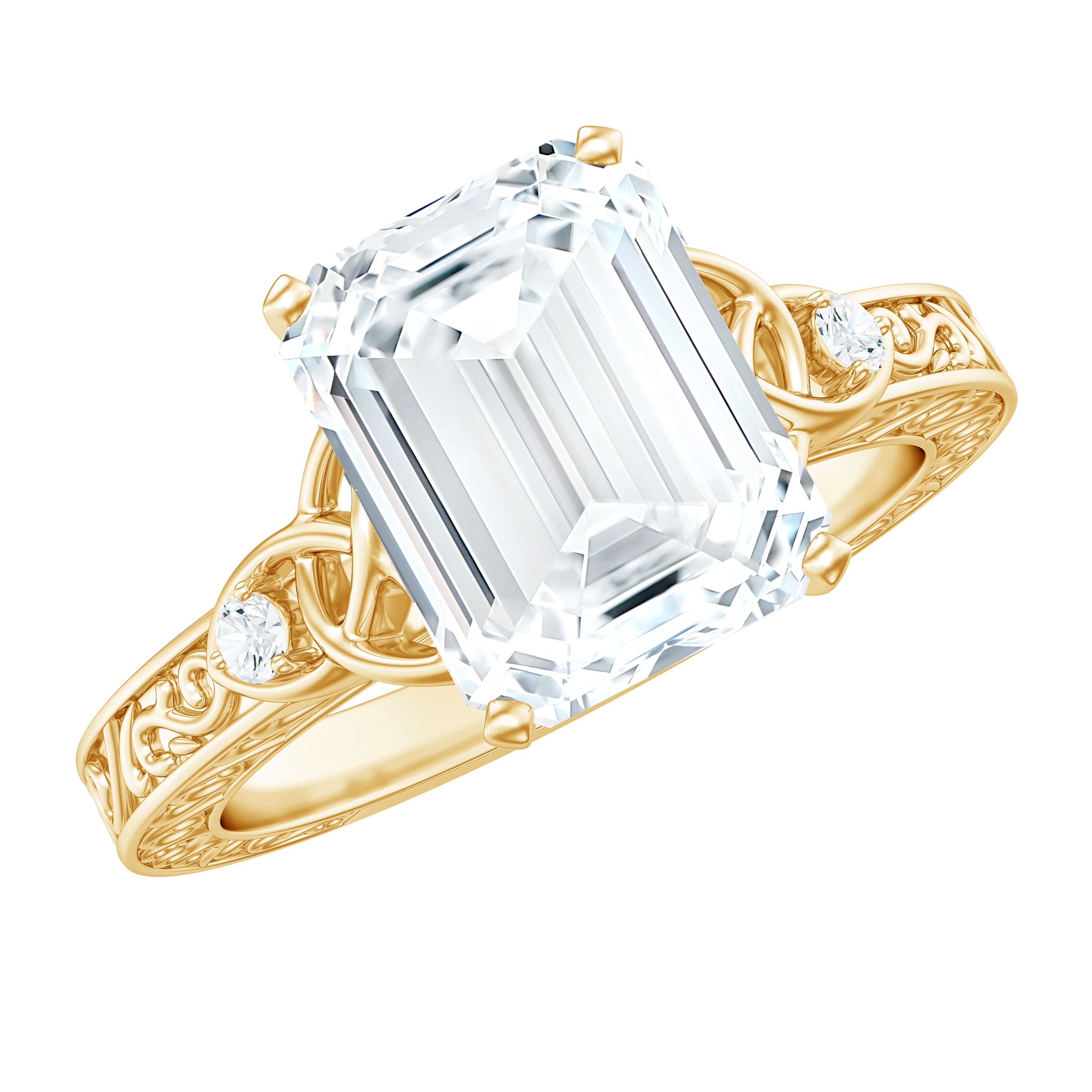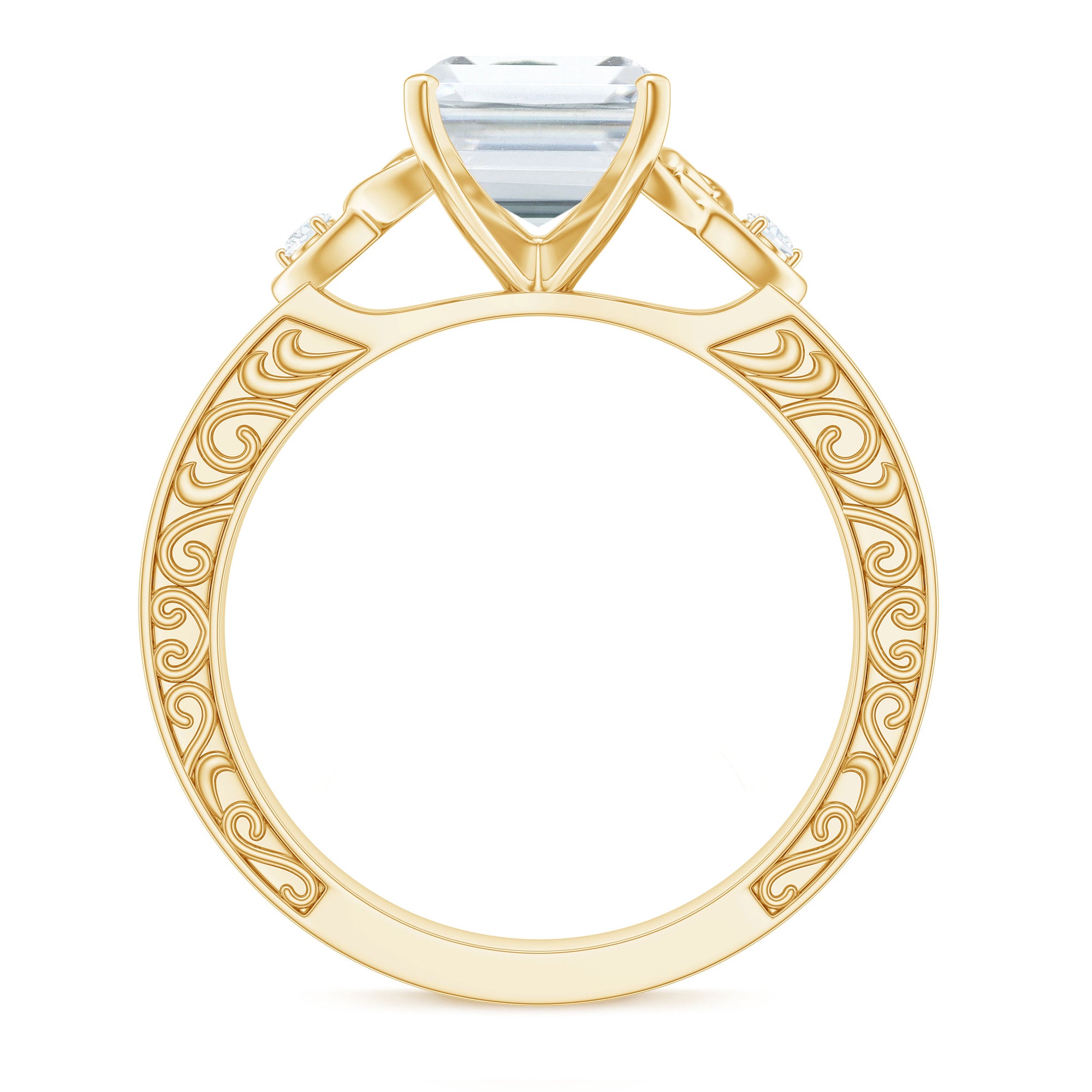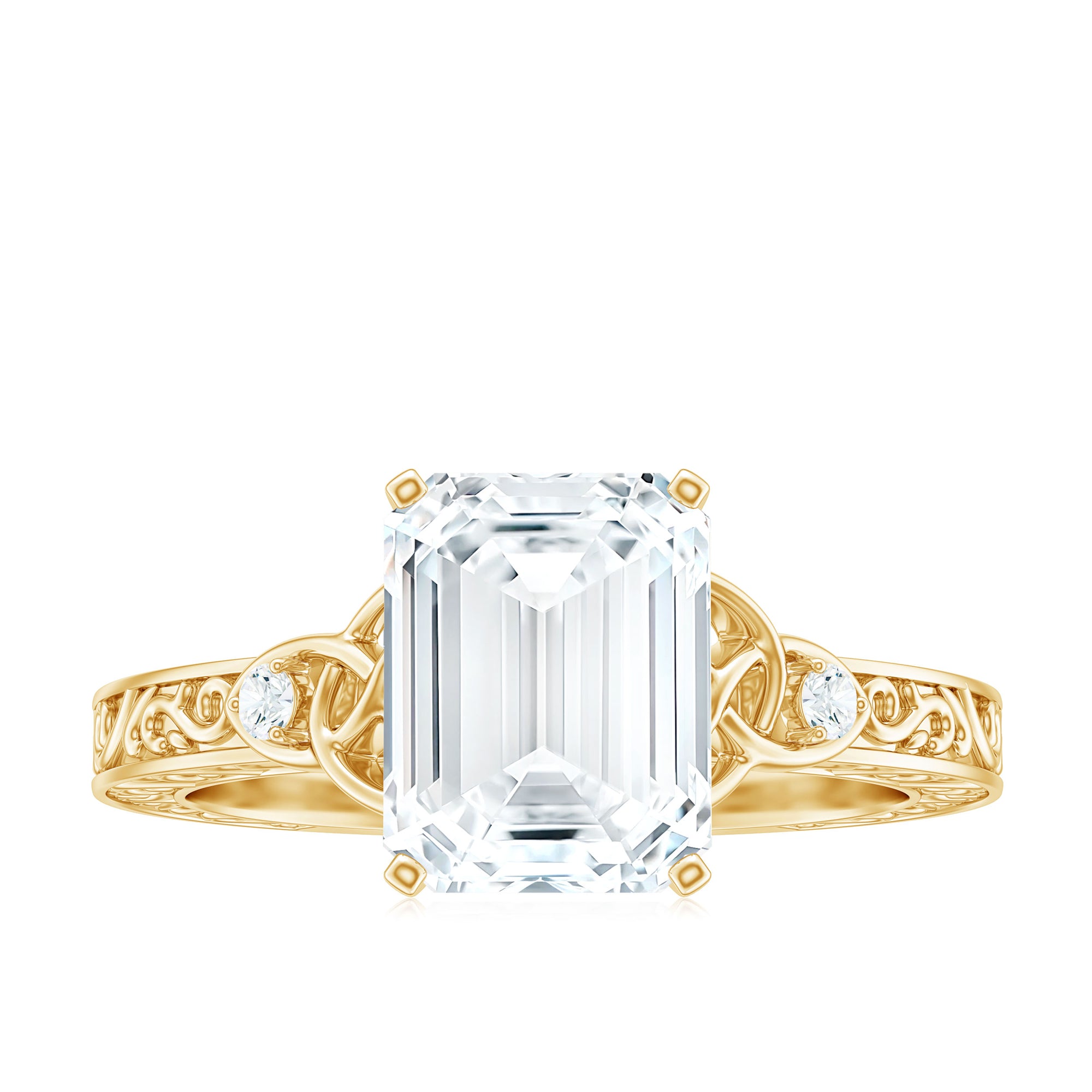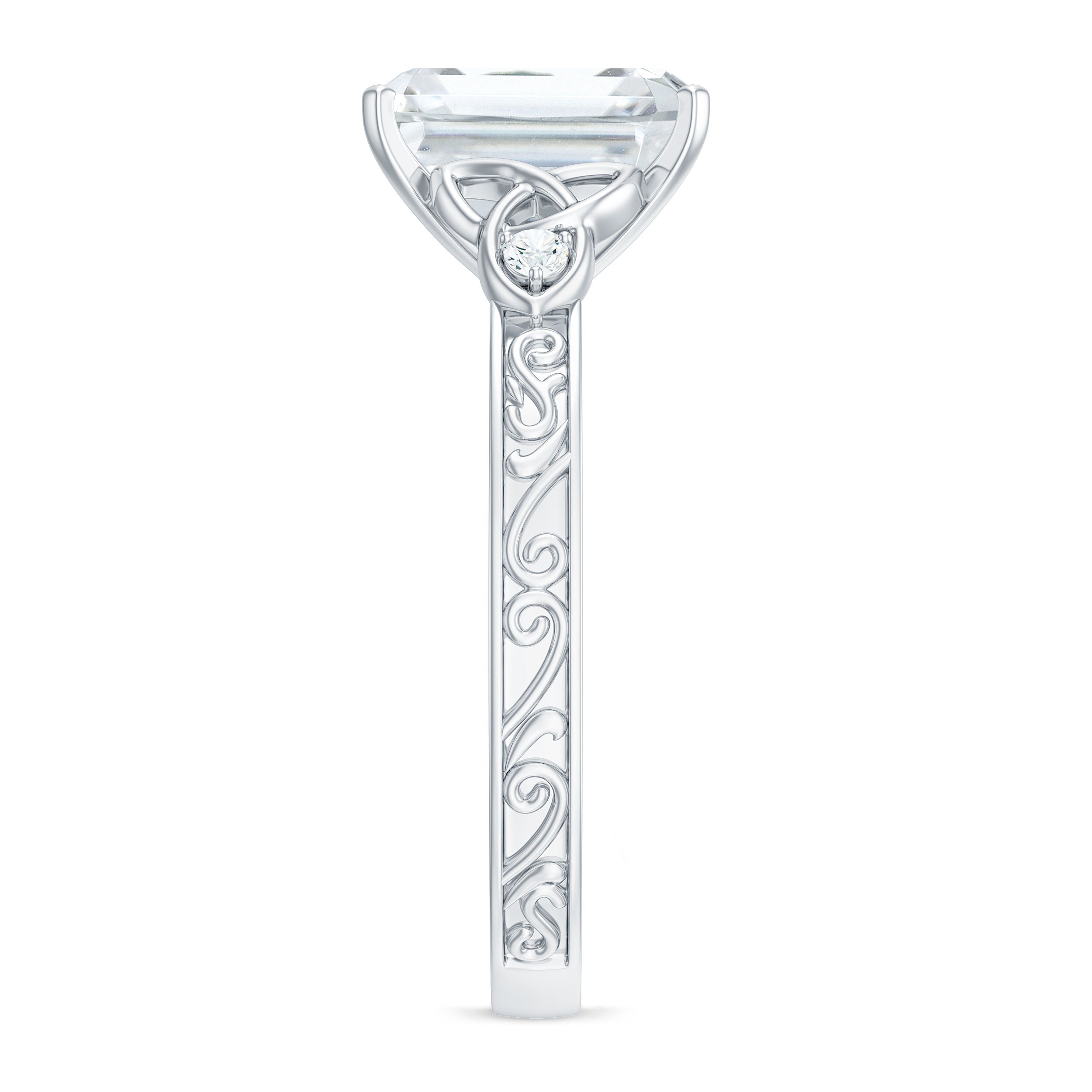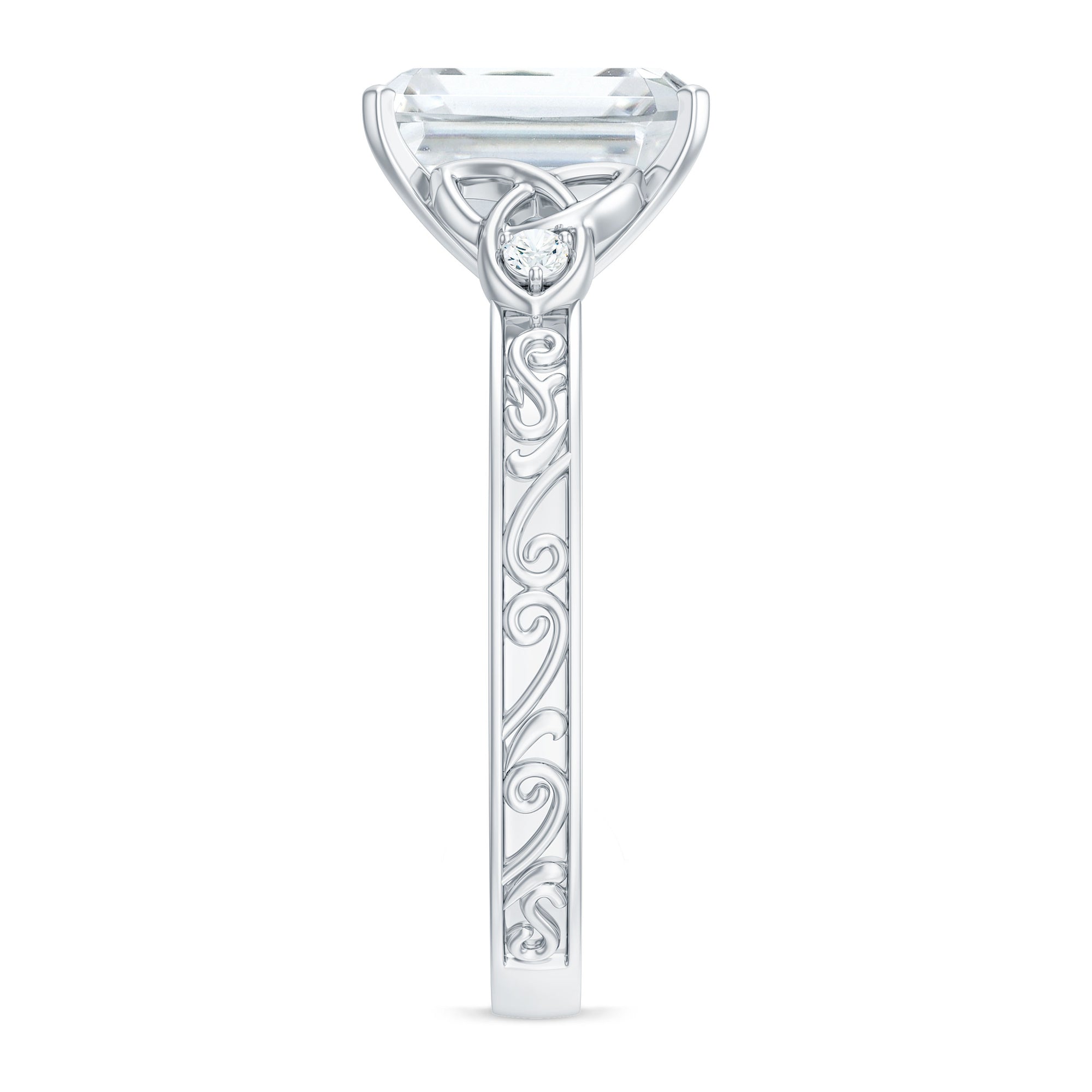7X9 mm Emerald Cut Moissanite Solitaire Celtic Ring with Engraved Shank