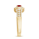 Antique Style Lab Ruby and Moissanite Double Halo Engagement Ring