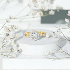 This Moissanite Engagement Ring will make her feel special on the big day. This ring is embellished with the 6 MM Round Shape Moissanite delicately placed in Prong Setting encircled by a Halo of Petite Moissanite. This Classic Engagement Ring is inspired by the vintage jewelry collection. Declare your feelings for your partner by getting this Vintage Inspired Engagement Ring as it will stay close to her forever. The shank of the ring is decorated with Moissanite along with the beaded detailing. Celebrate your bond with this stunning Halo Ring that beholds the shine of D-Vs1 Quality Moissanite.
