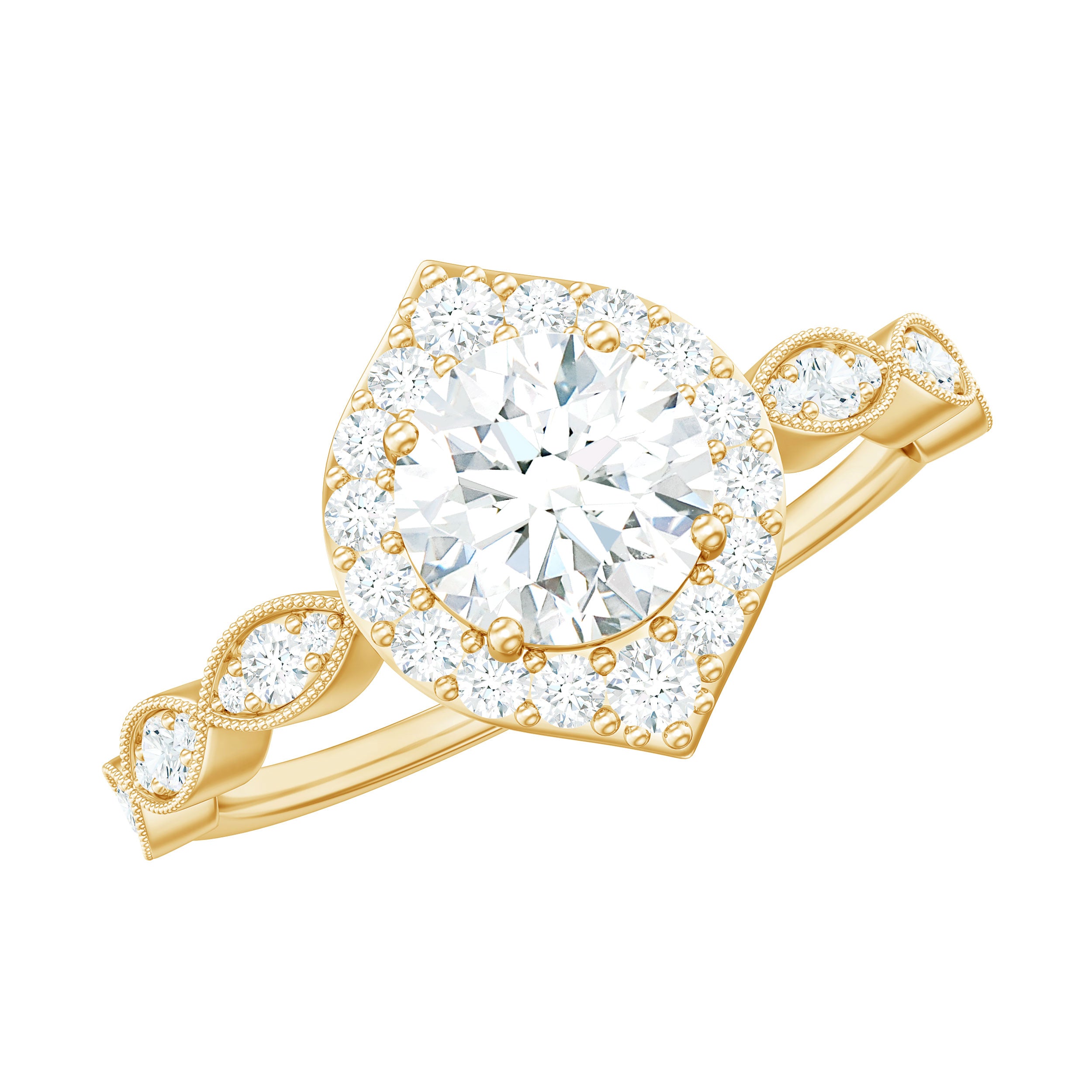 Antique Style Moissanite Halo Engagement Ring
