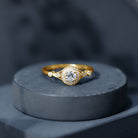 Antique Zircon Engagement Ring with Milgrain Gold