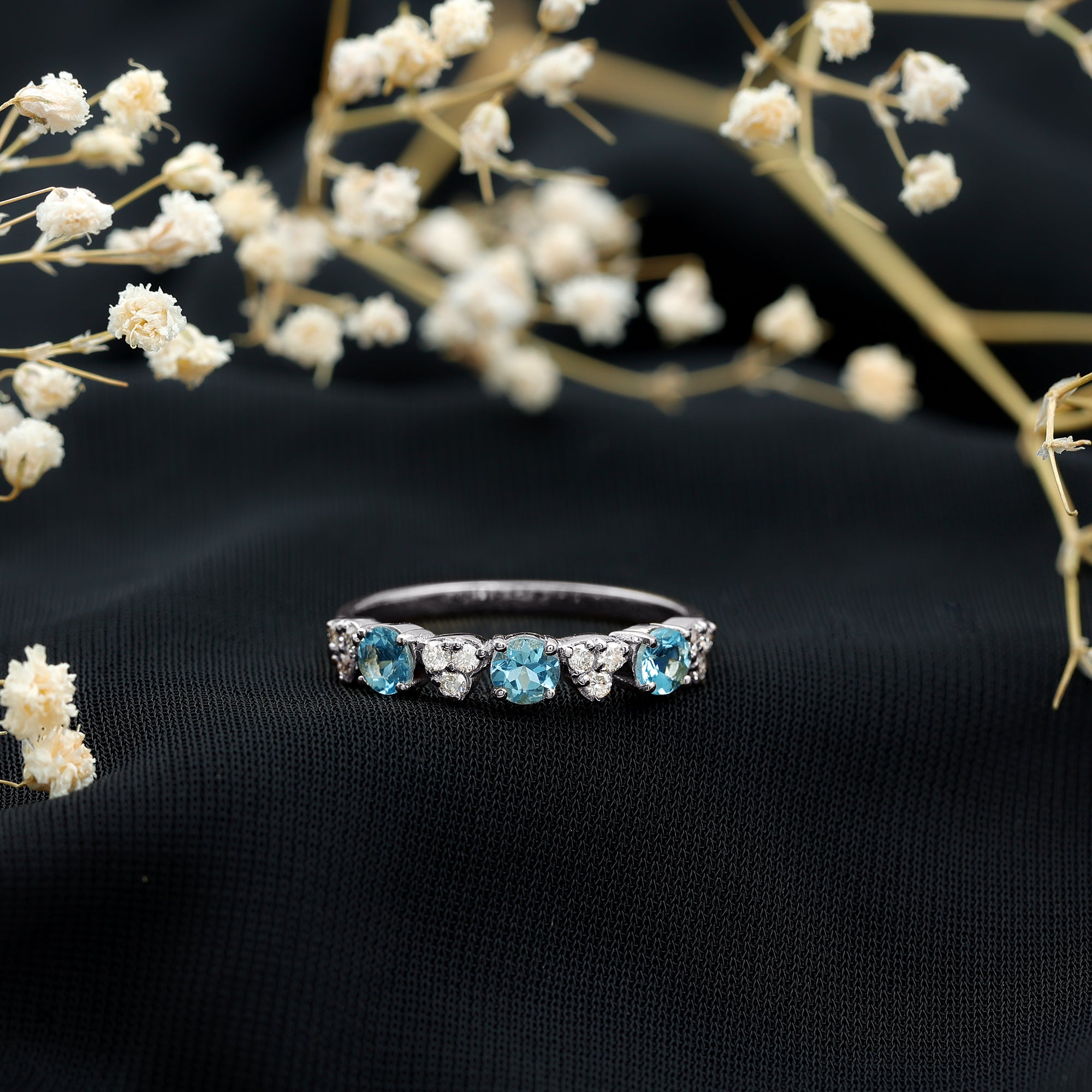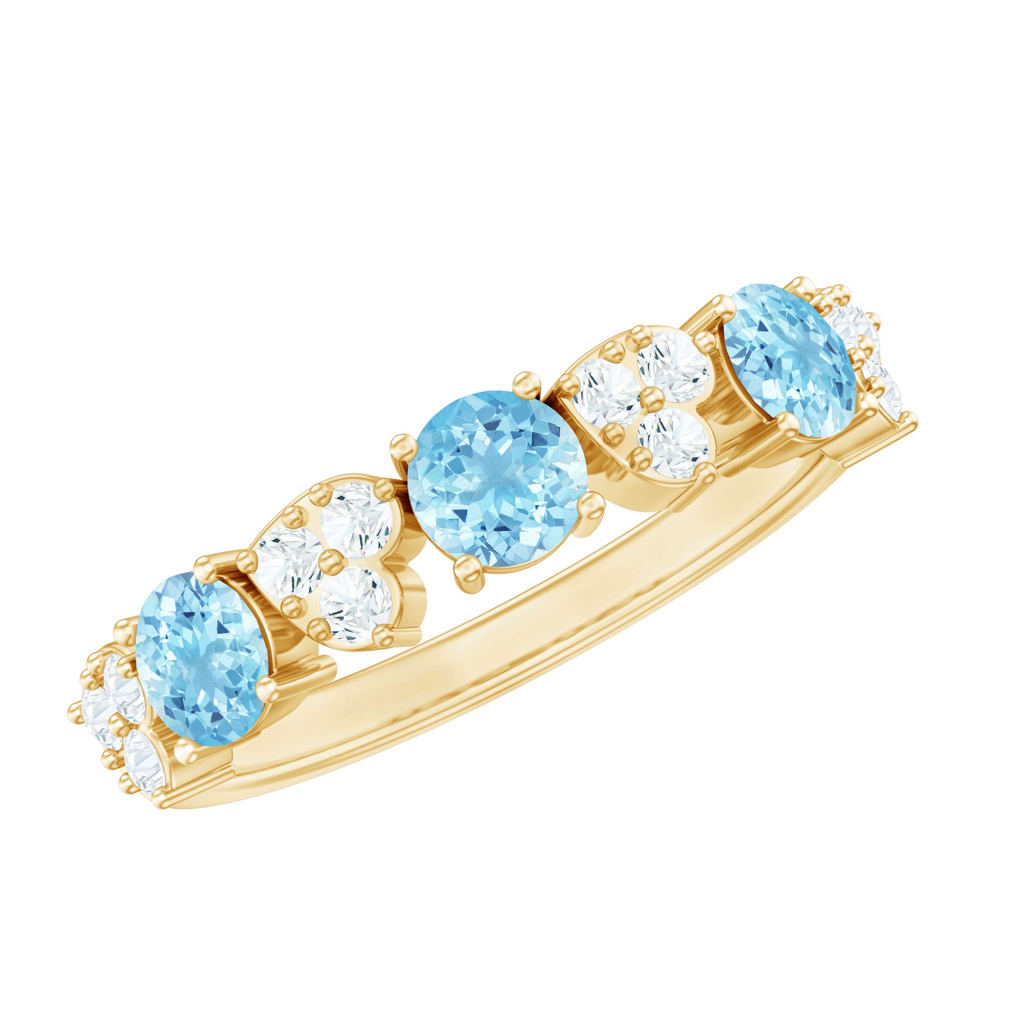 Aquamarine and Diamond Heart Shape Eternity Ring