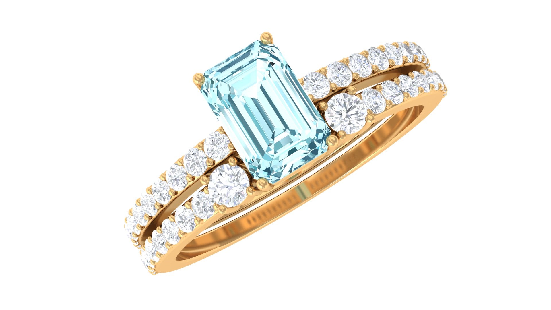 Elevate your style with our Aquamarine and Diamond Solitaire Ring Set, a captivating fusion of beauty and brilliance that symbolizes eternal love.