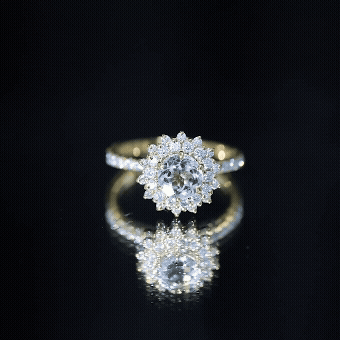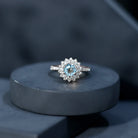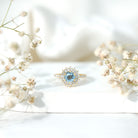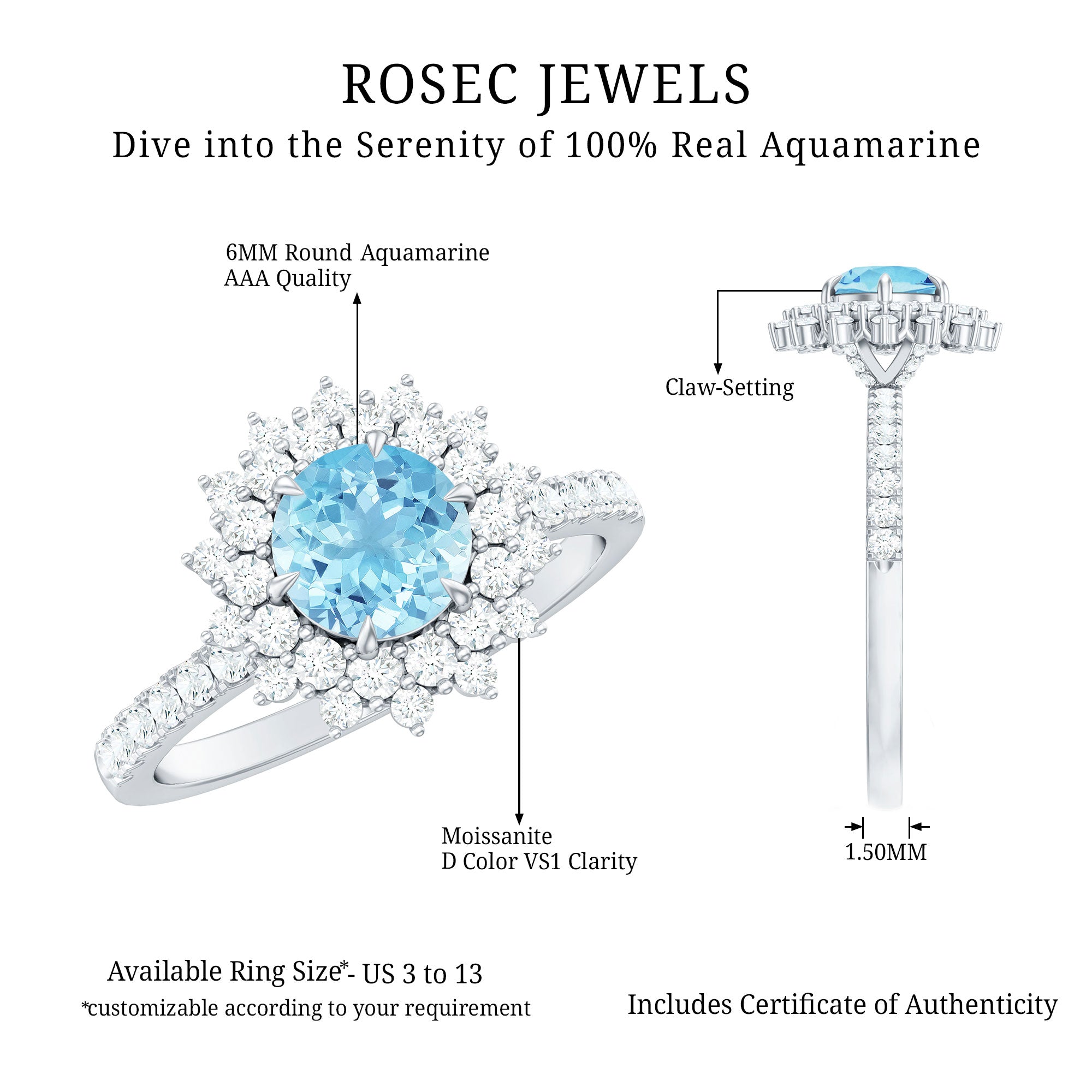 Aquamarine and Moissanite Cluster Halo Engagement Ring