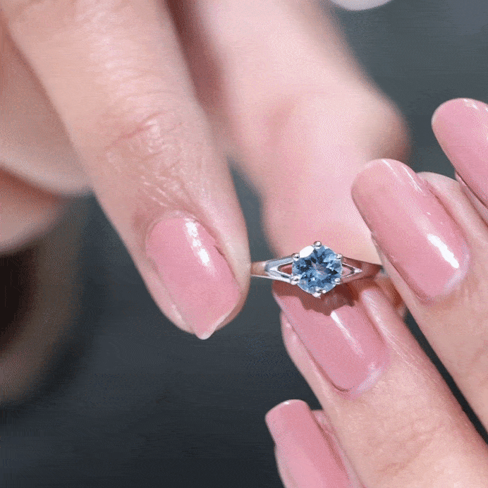 Gorgeous and meaningful, this Solitaire Engagement Ring features a brilliant 6 MM round cut aquamarine held securely in 6-prong setting. Known as the March birthstone, aquamarine is loved for its calm blue color that symbolizes clarity, trust, and harmony, perfect qualities for a promise or engagement ring. The Aquamarine Engagement Ring is designed with a stylish split shank, giving it a modern and graceful look. This design not only enhances the center stone but also adds a touch of uniqueness without taking away from the classic solitaire style. The smooth band sits comfortably on the finger, making it ideal for everyday wear. Whether chosen as a promise ring, an engagement ring, or a personal keepsake, it carries a sense of purity and deep emotional connection. Perfect for someone who appreciates simplicity with a hint of sophistication, this March Birthstone Ring blends timeless beauty with gentle color.