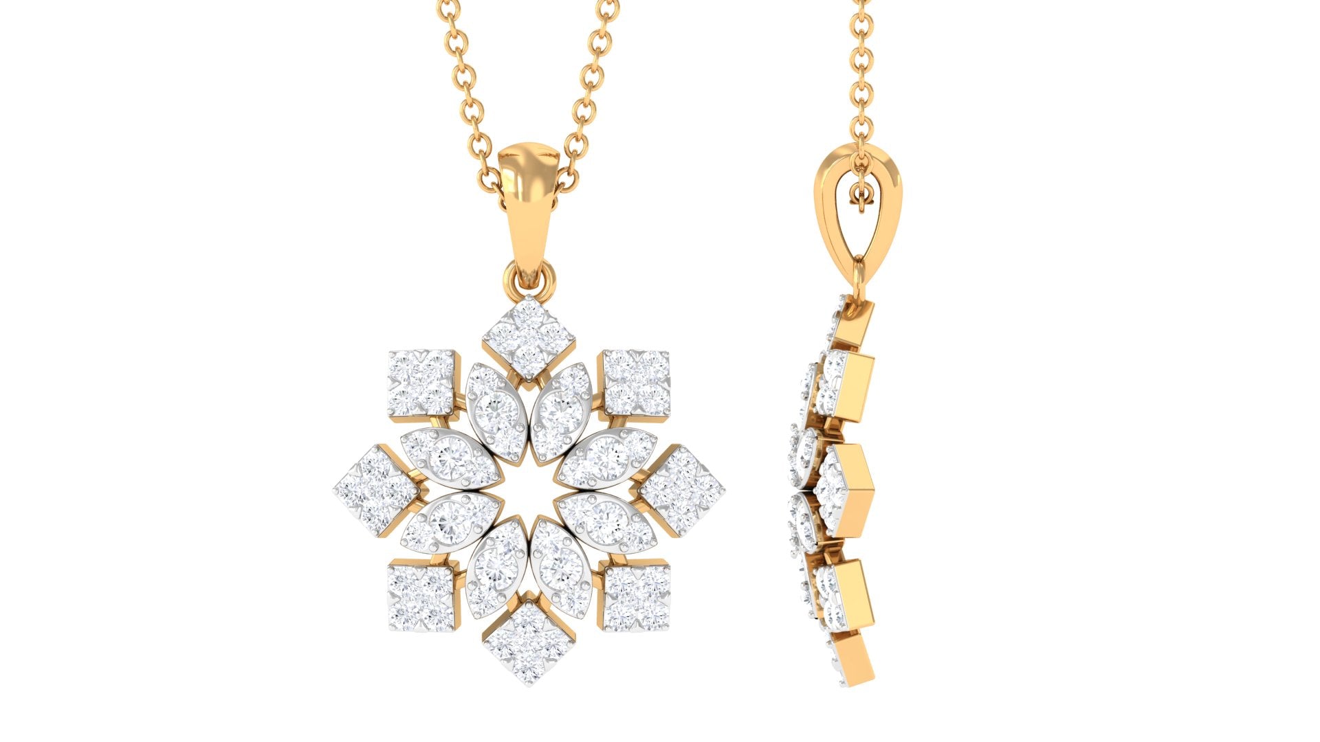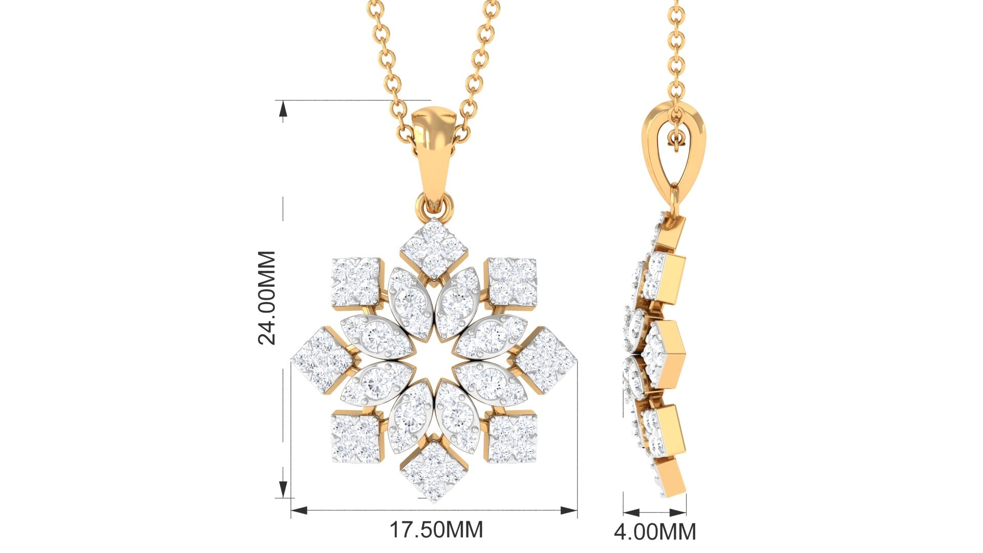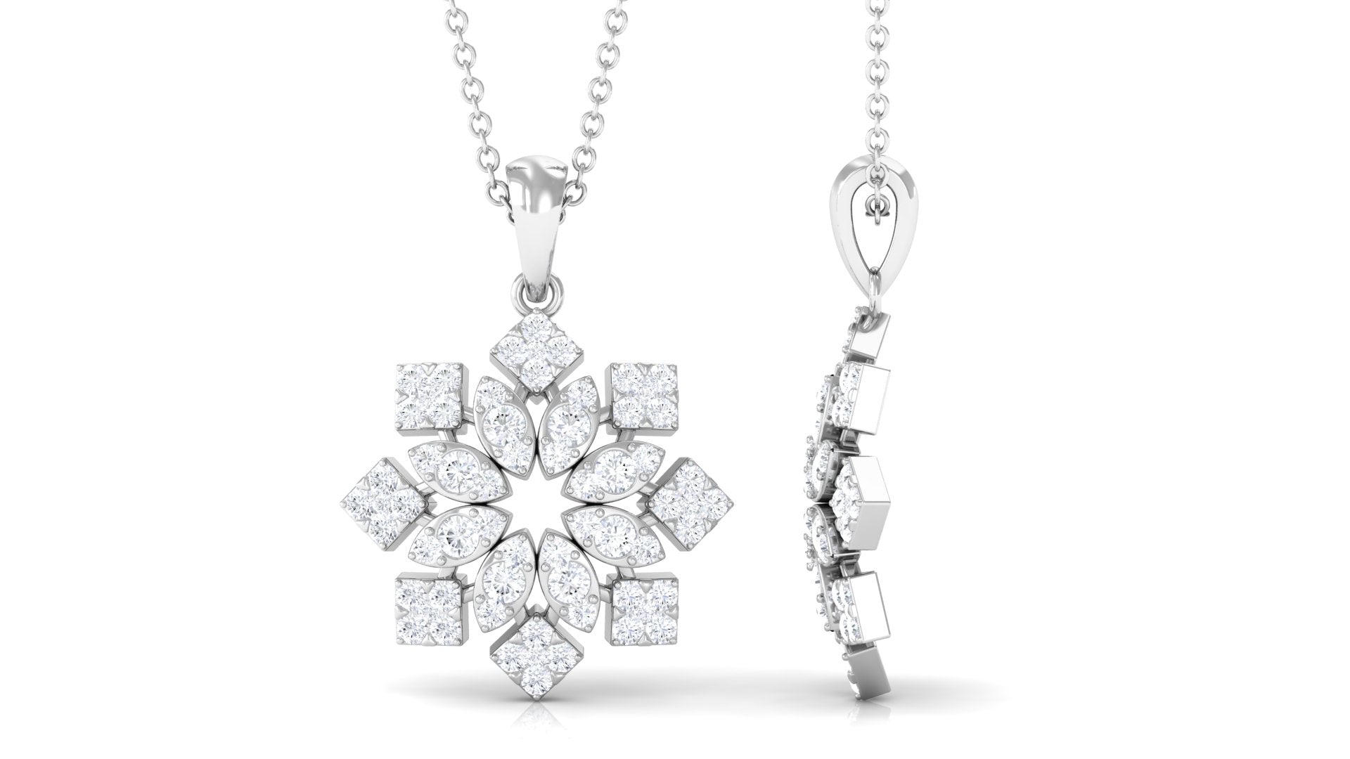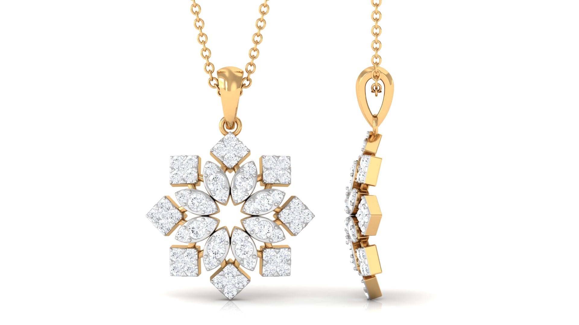 The Floral Pendant will not let you take your eyes off it as it features Round Shape Moissanite studded in Illusion Setting on a floral design. Being crafted in Solid Metal, this stunning Flower Necklace is an adorable Gift For Her as Bridal Jewelry on her special day of life. Style this Moissanite Pendant with minimal jewelry to complete your look. Wear this Floral Necklace and escalate its shine around you.