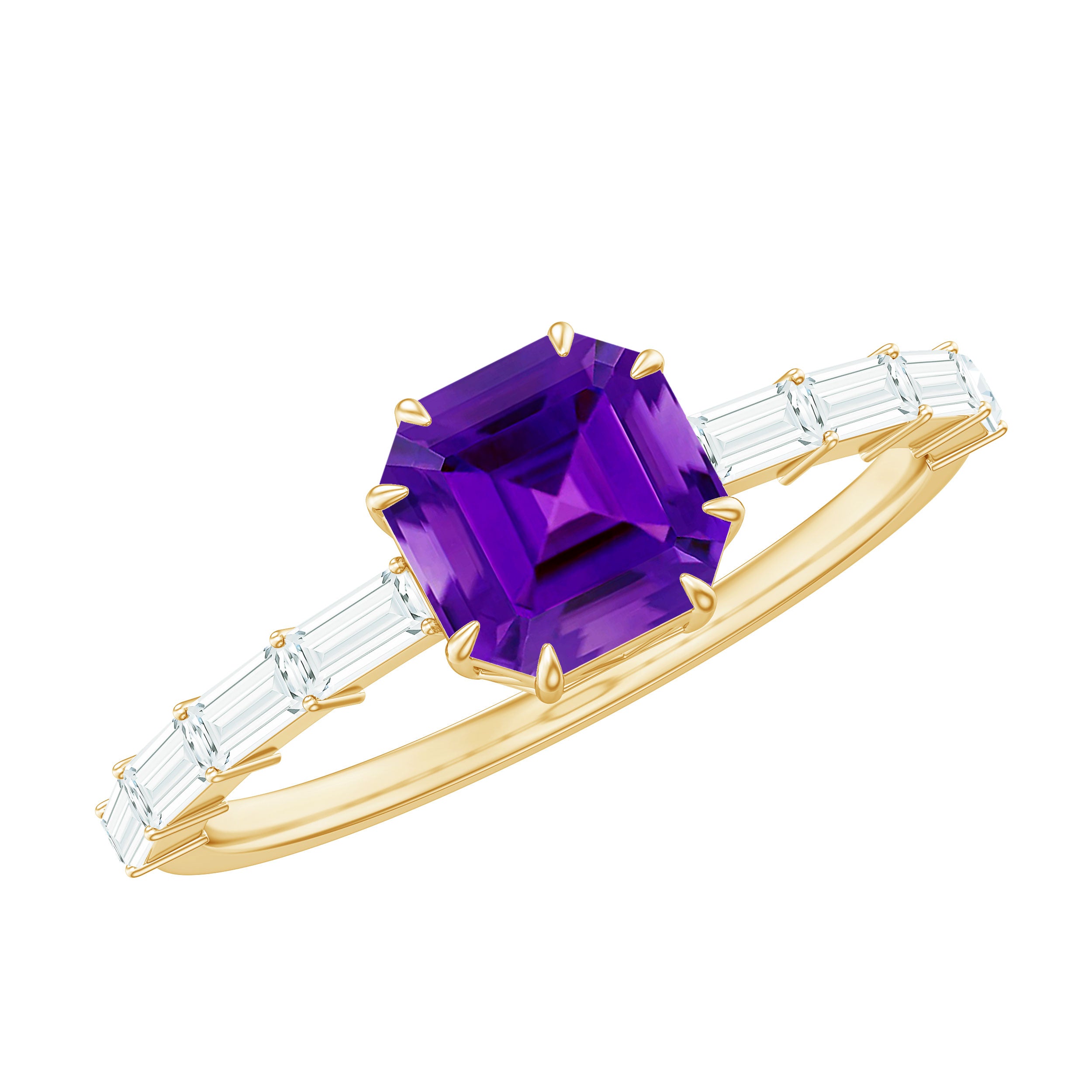 Asscher Amethyst Solitaire Engagement Ring with Diamond