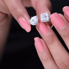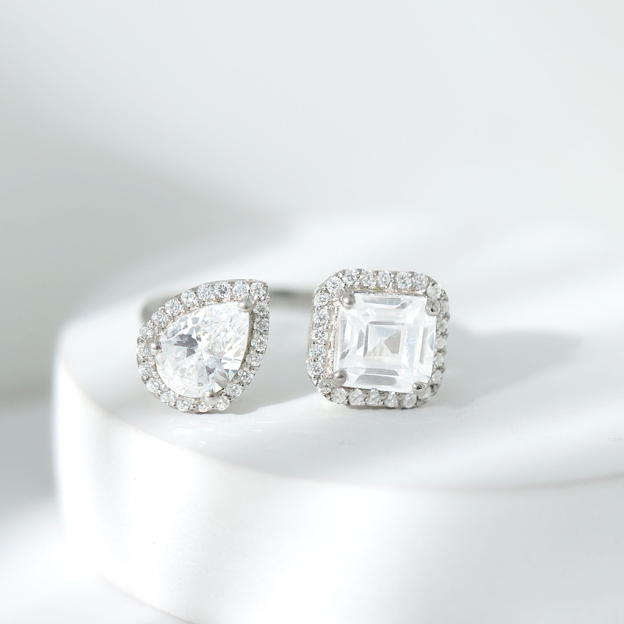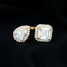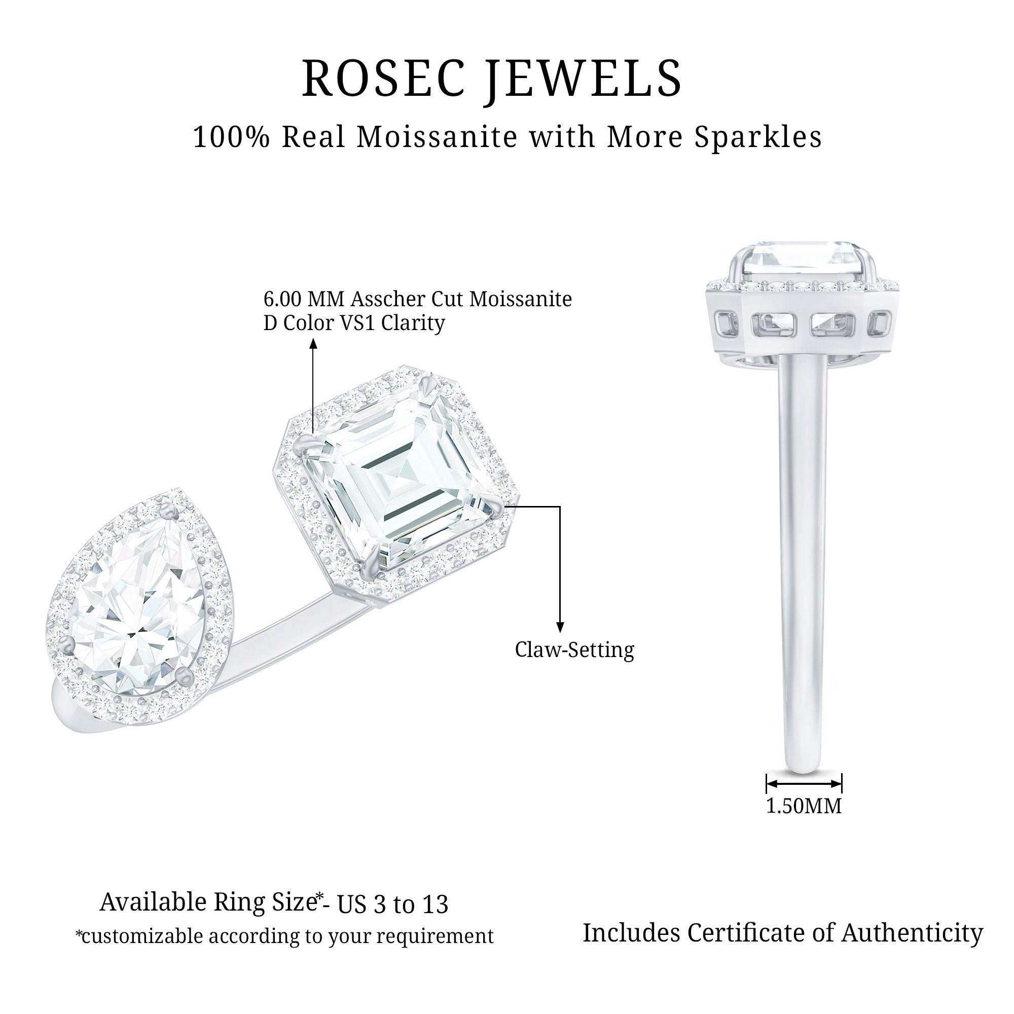 Asscher and Pear Cut Moissanite Two Stone Engagement Ring