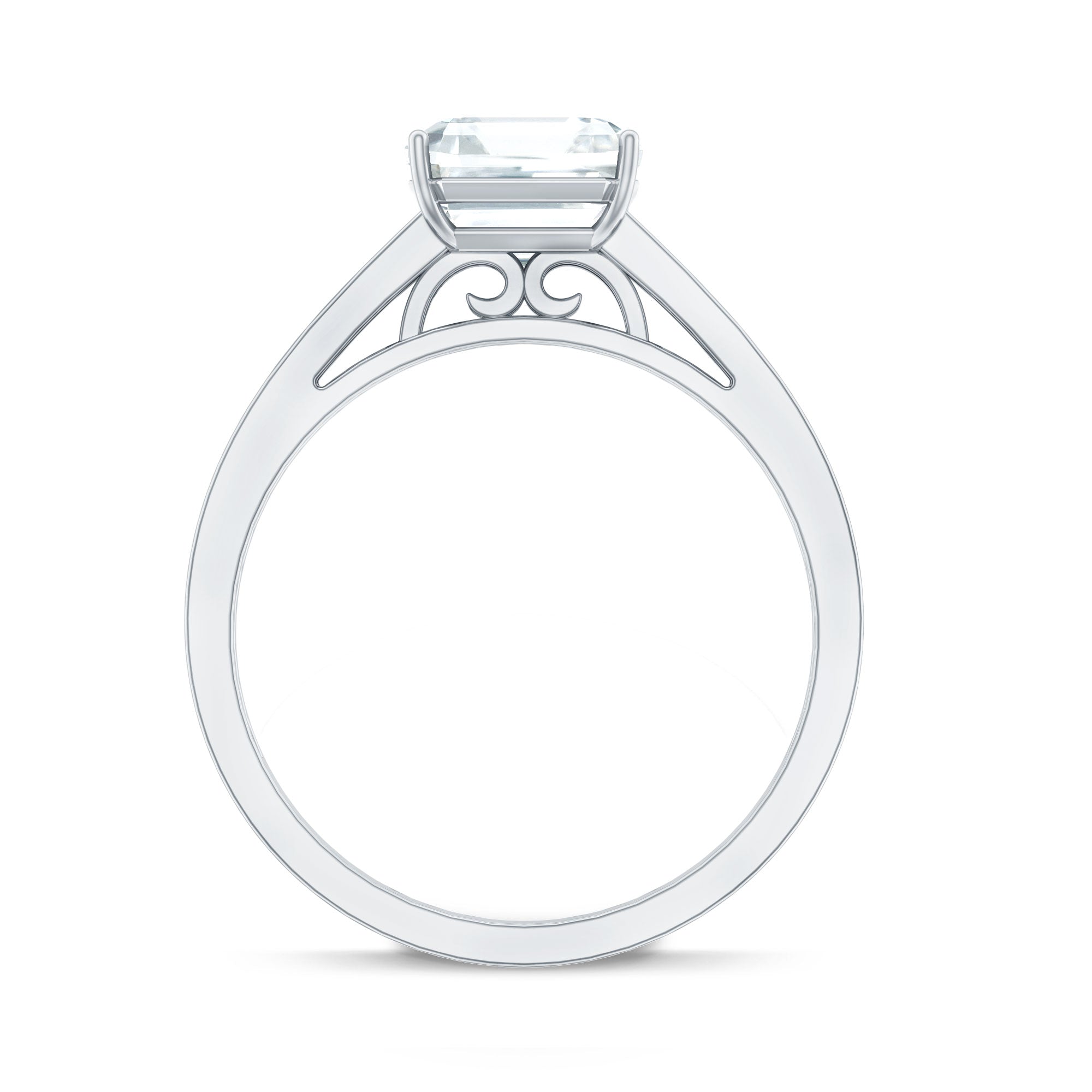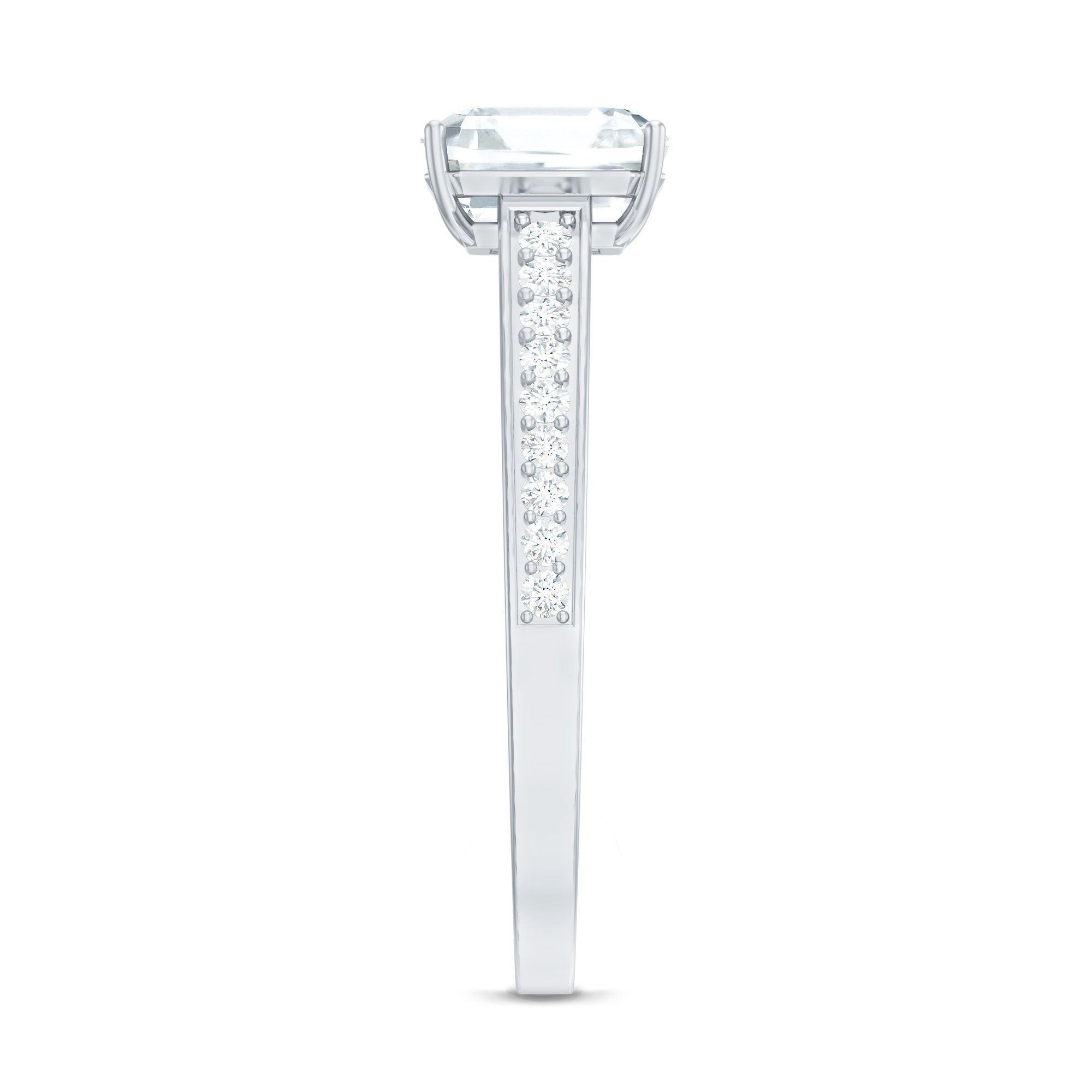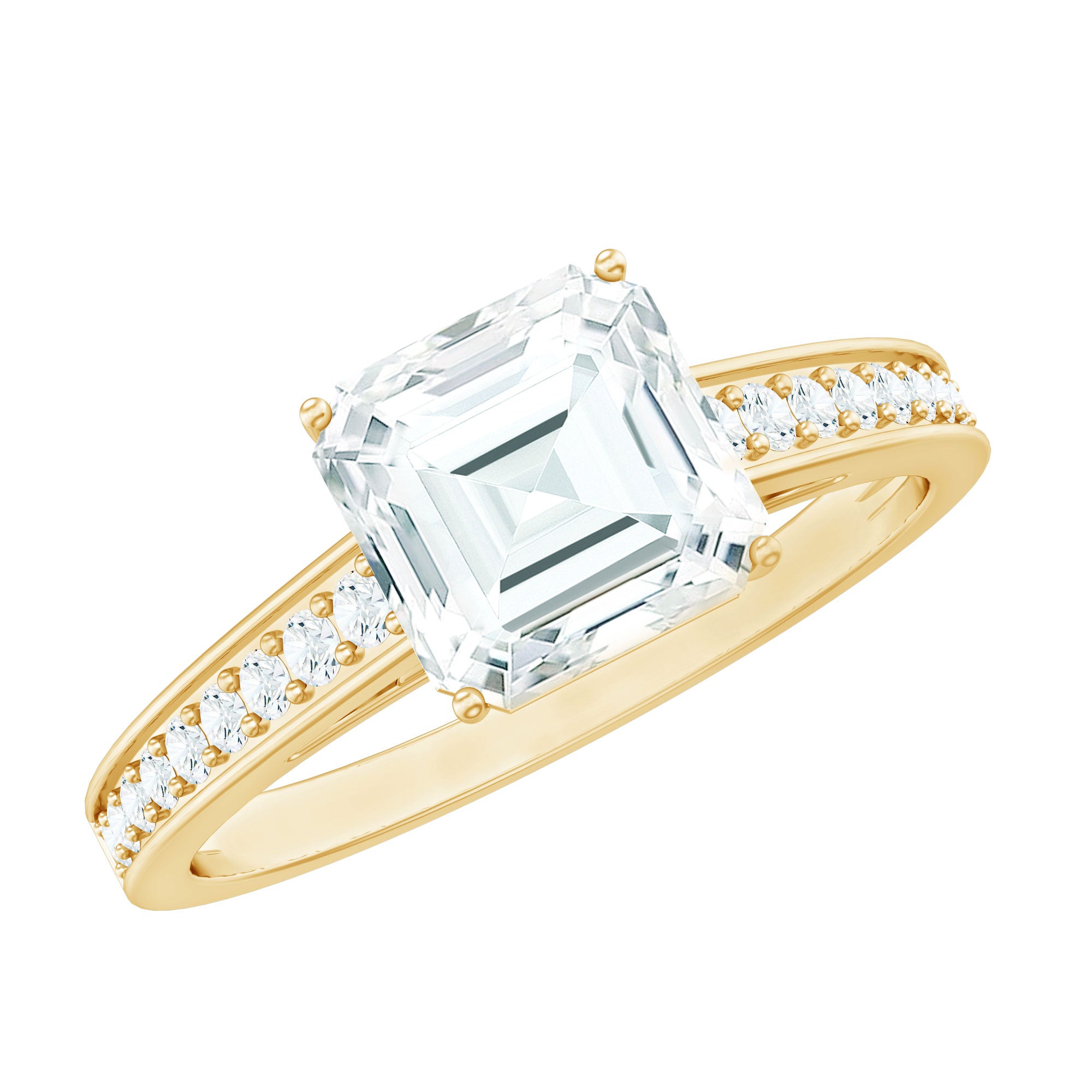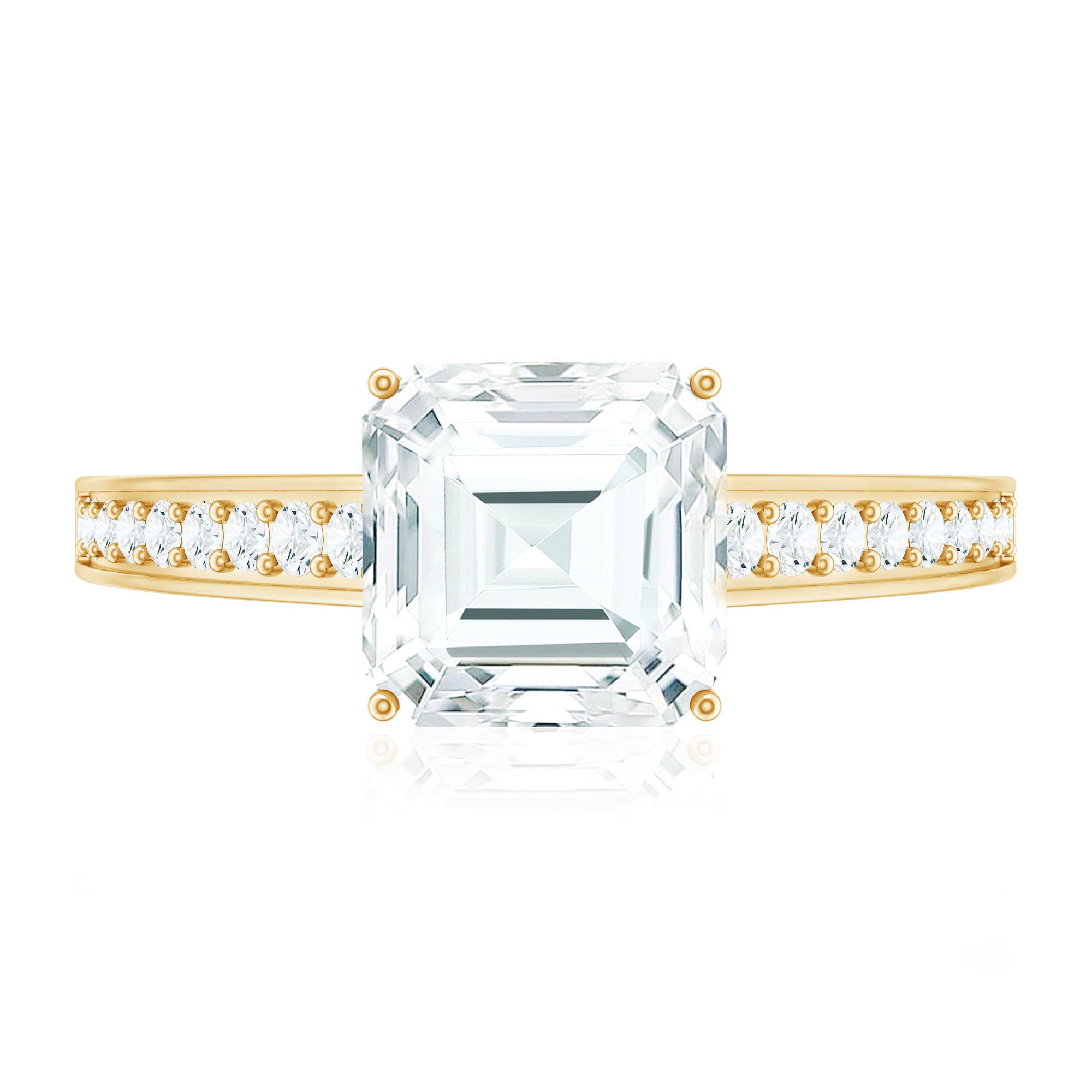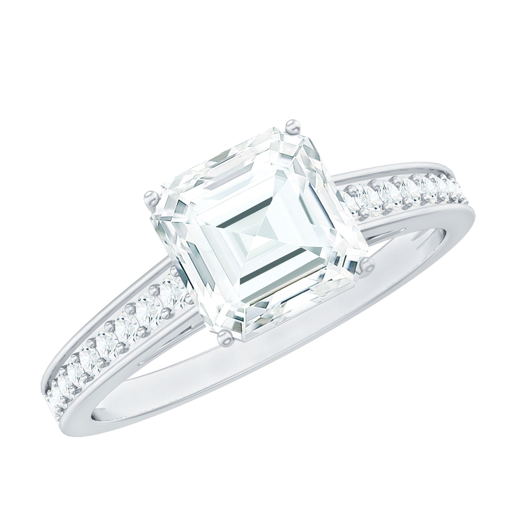 Asscher Cut 8 MM Moissanite Solitaire Engagement Ring with Side Stones