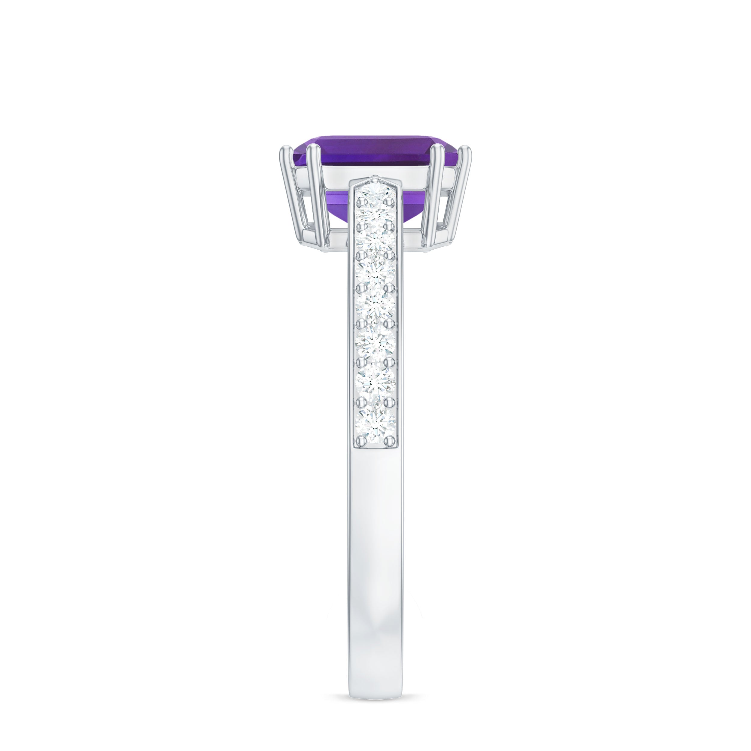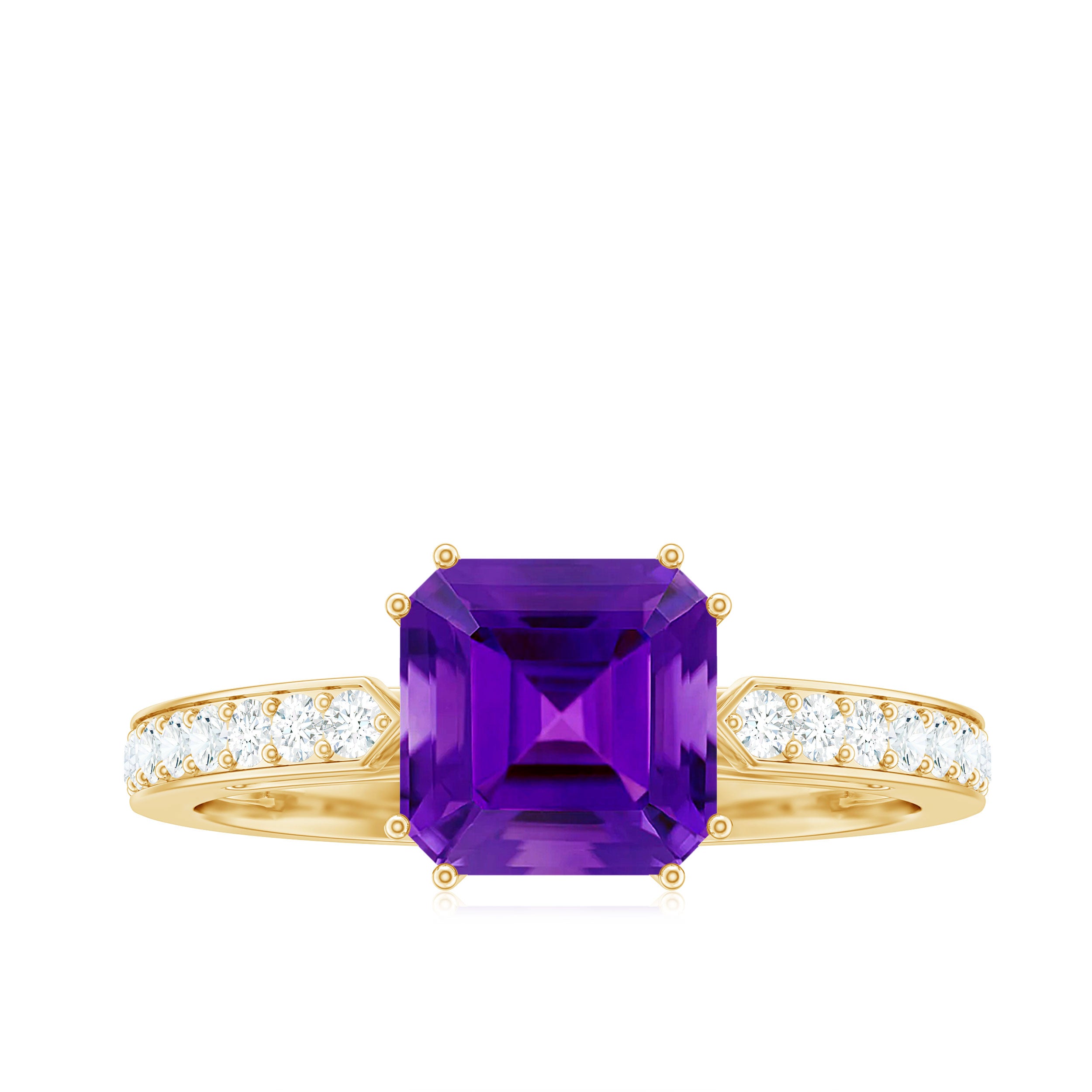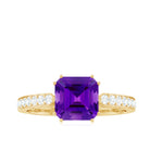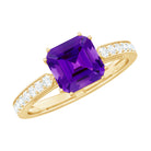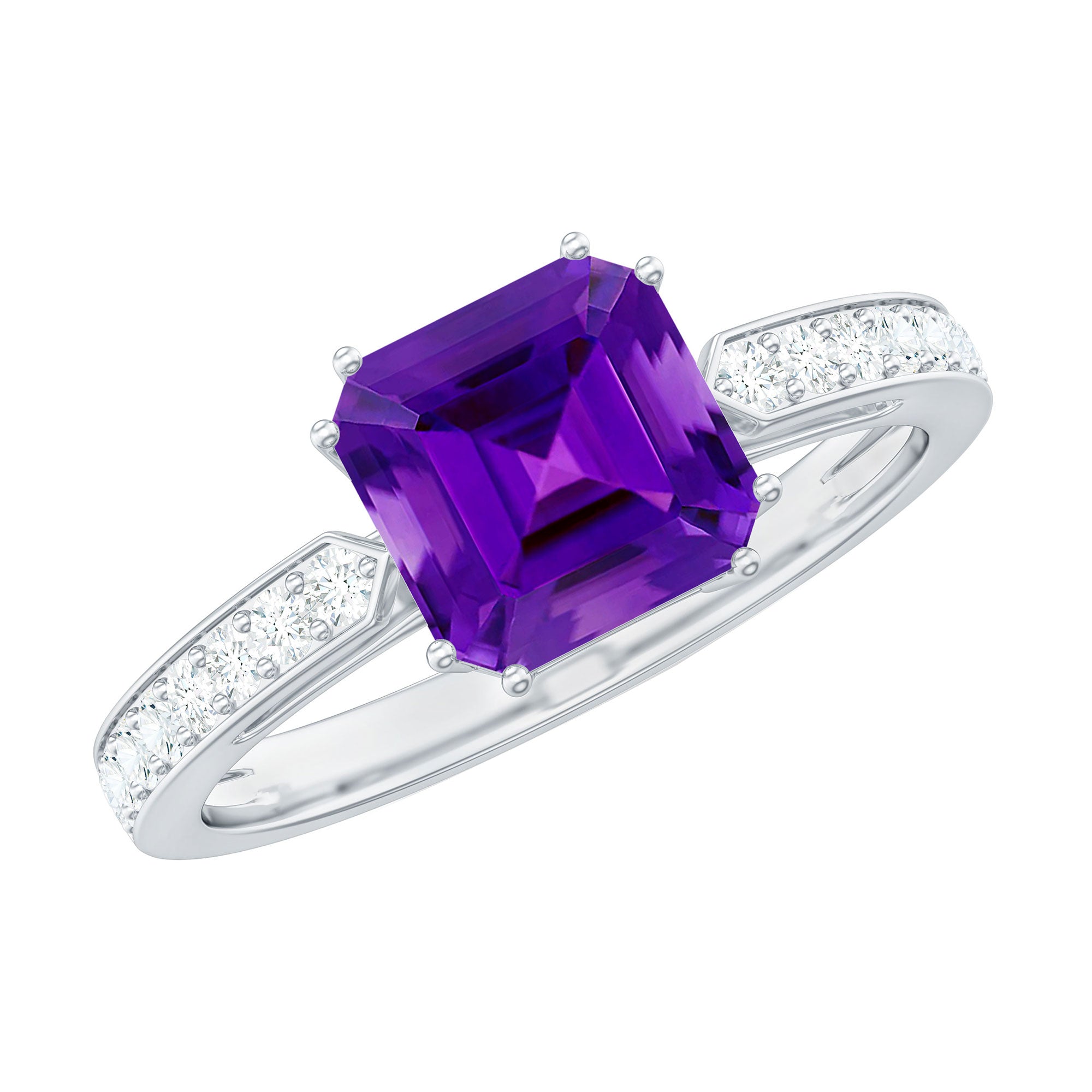 Asscher Cut Amethyst Solitaire Ring with Diamond Side Stones