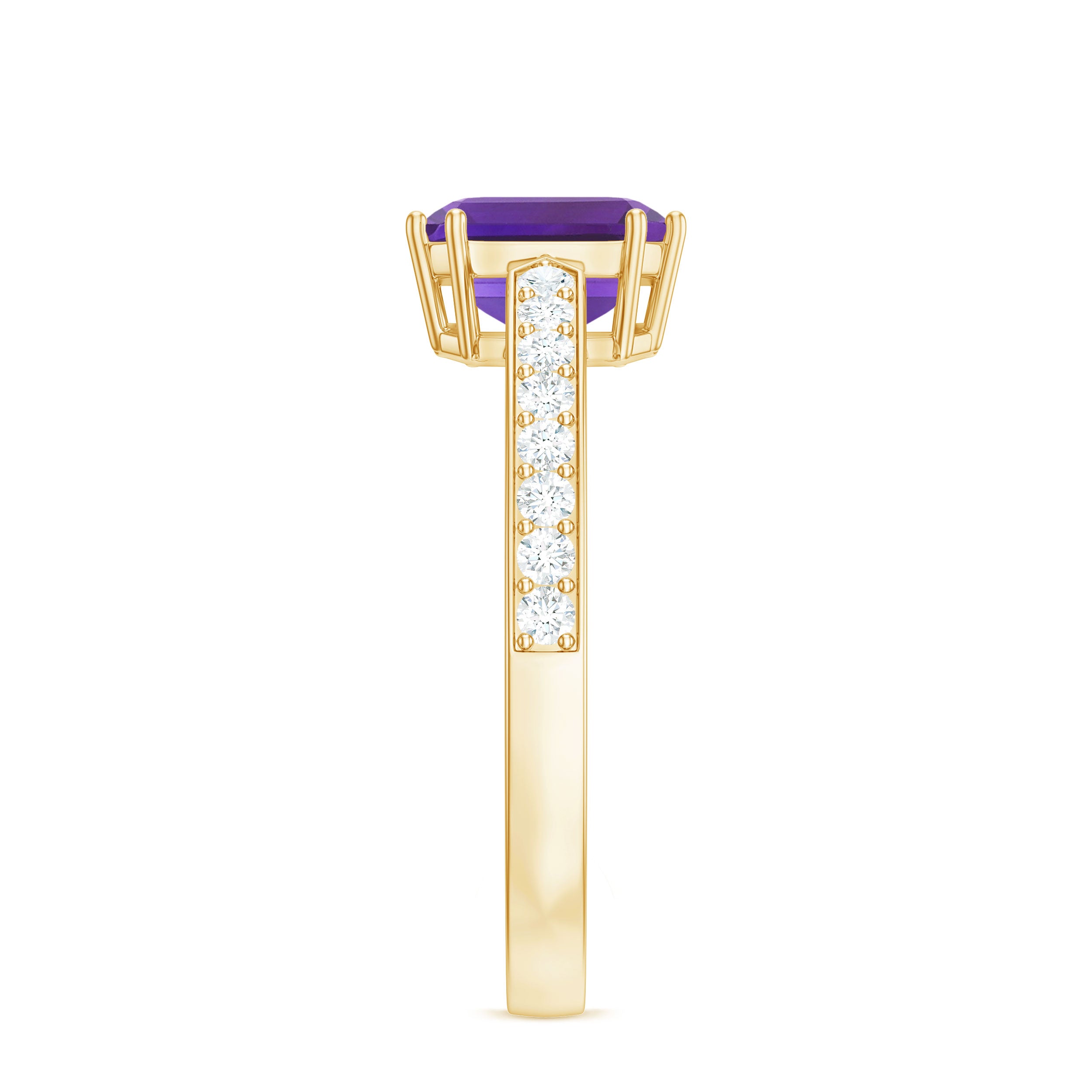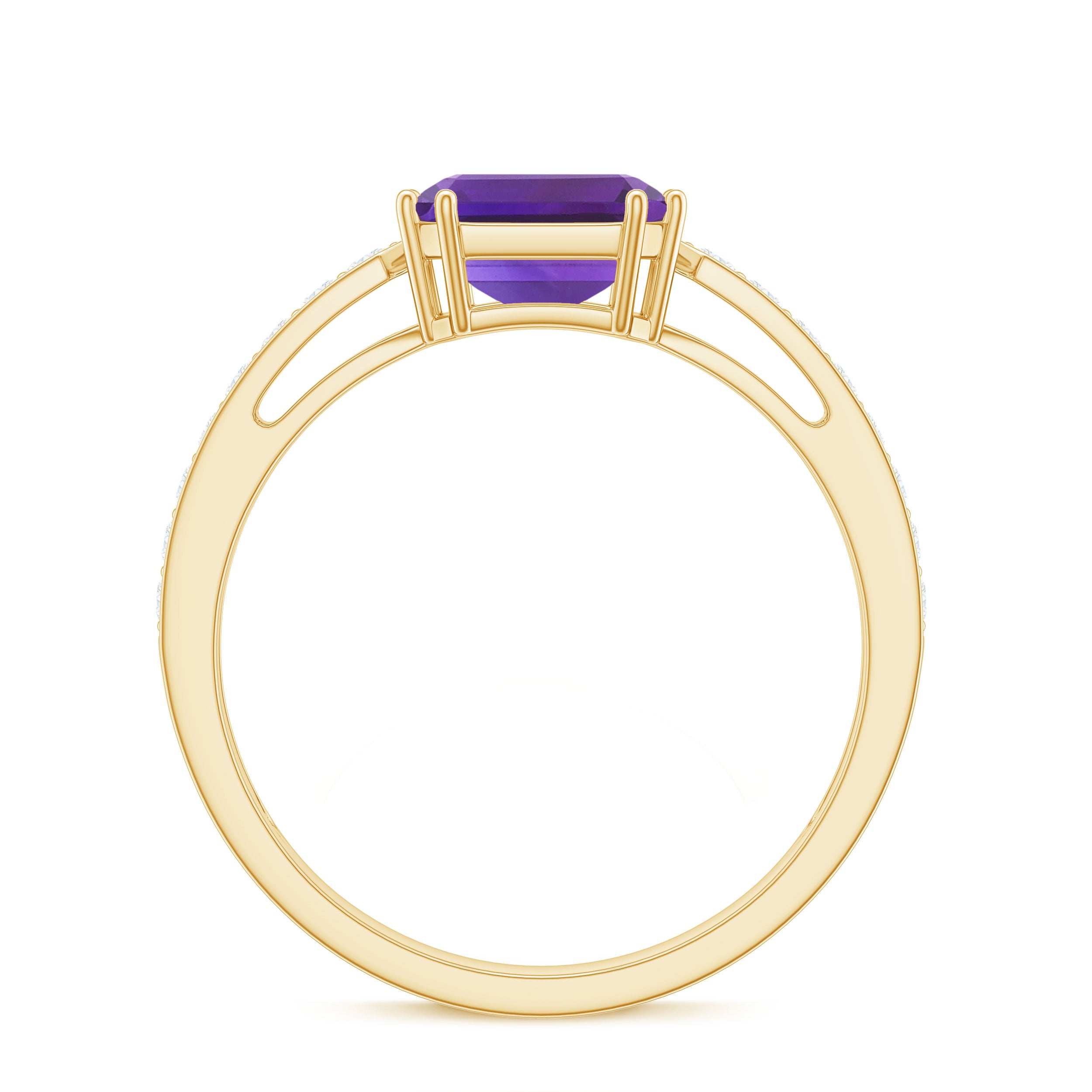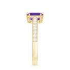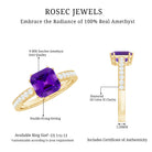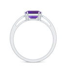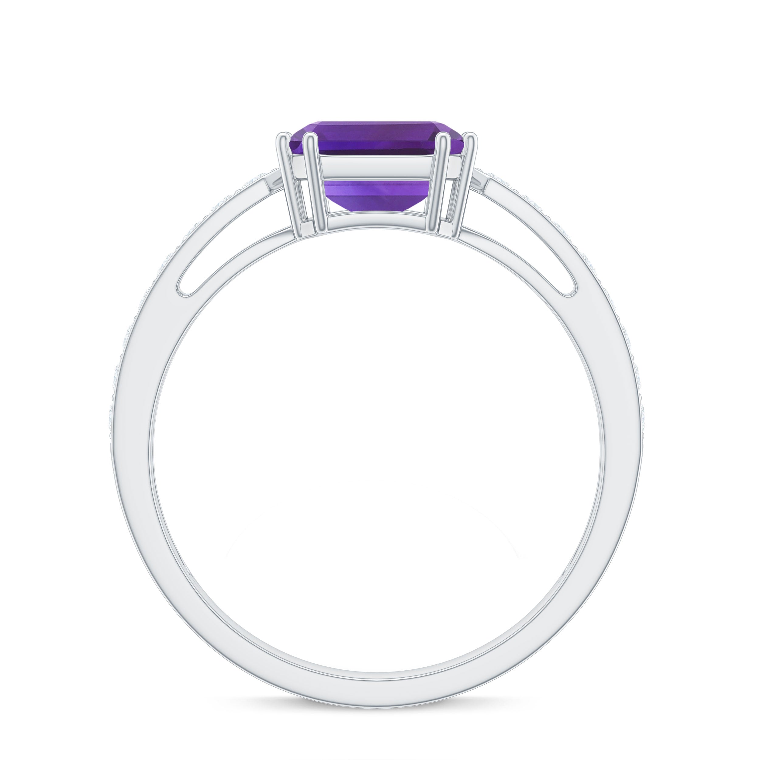Asscher Cut Amethyst Solitaire Ring with Diamond Side Stones