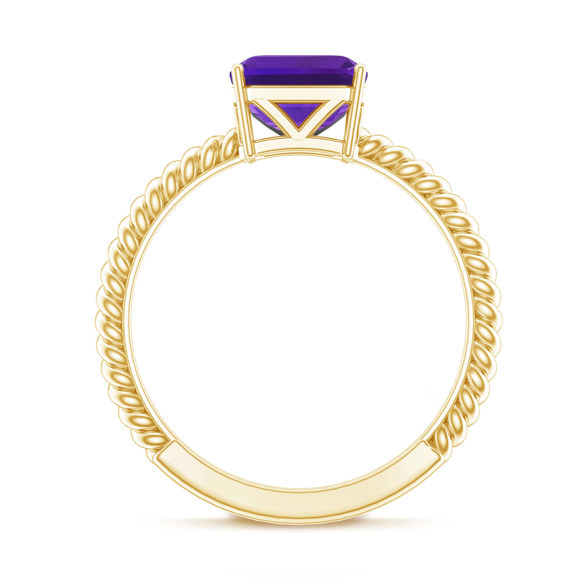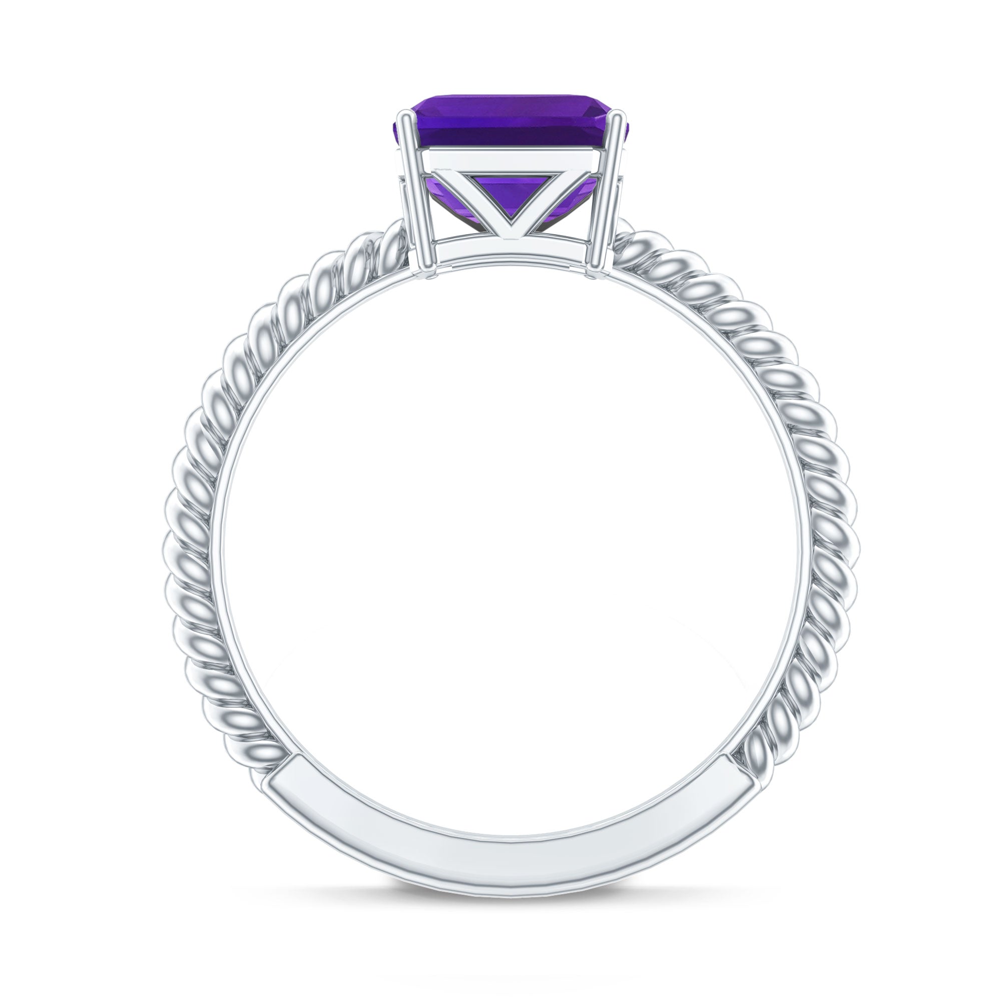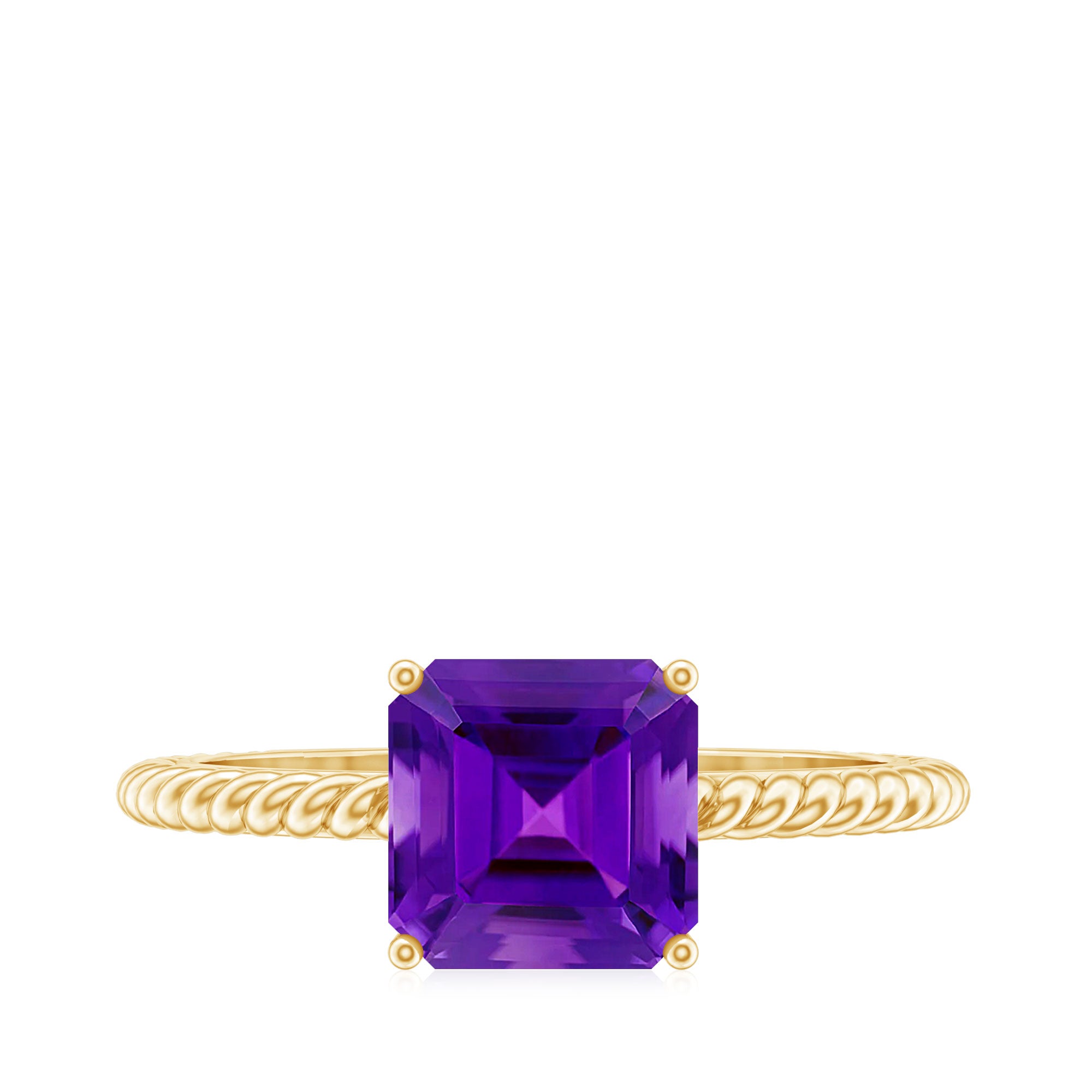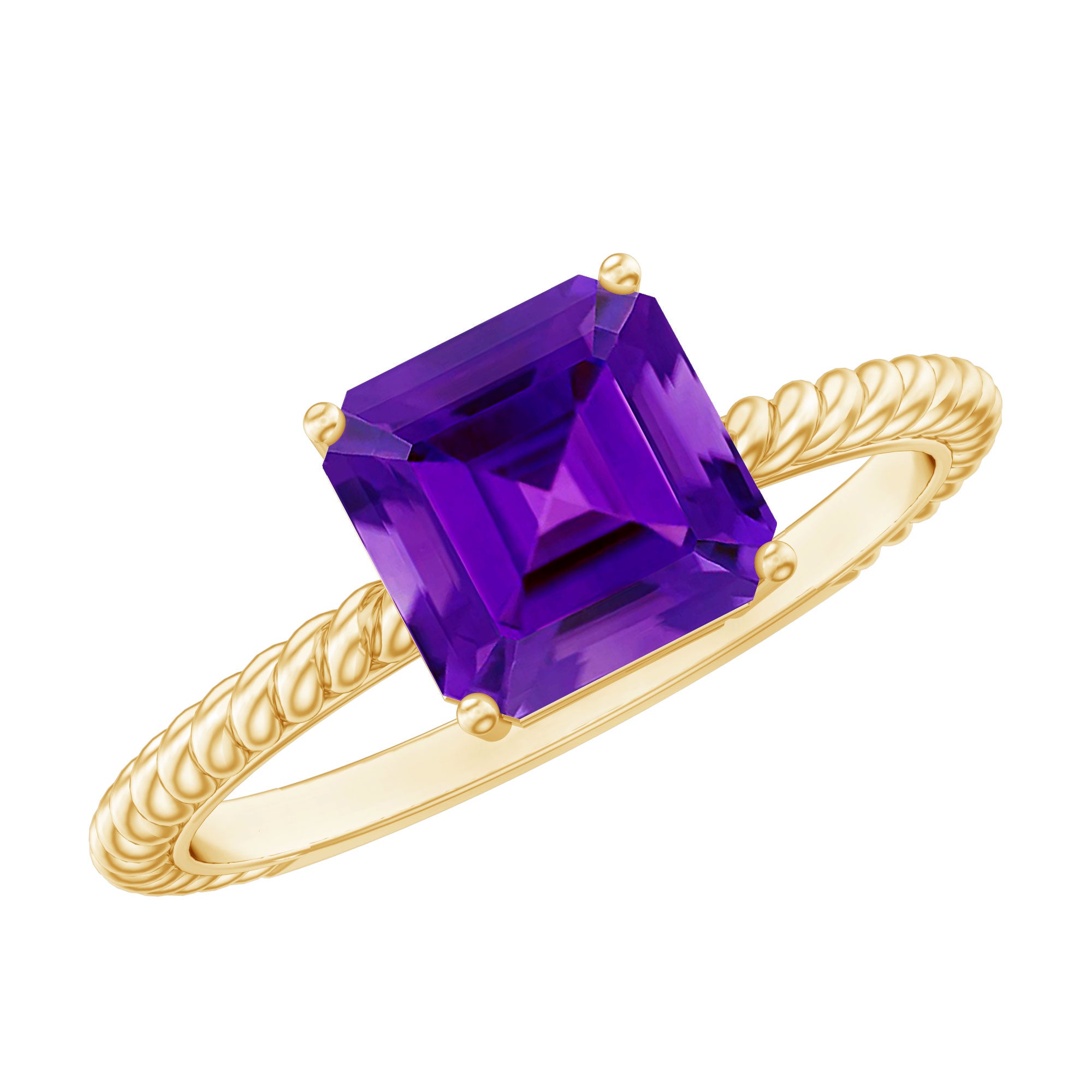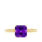 Enhance your shopping experience by adding this Solitaire Ring to your cart, a flawless choice for a birthday gift to cherish. Featuring an Asscher Cut Amethyst set in a secure Prong Setting, adorned with intricate Twisted Rope Detailing along the shank, its a token of love shell treasure.