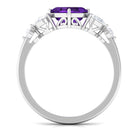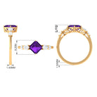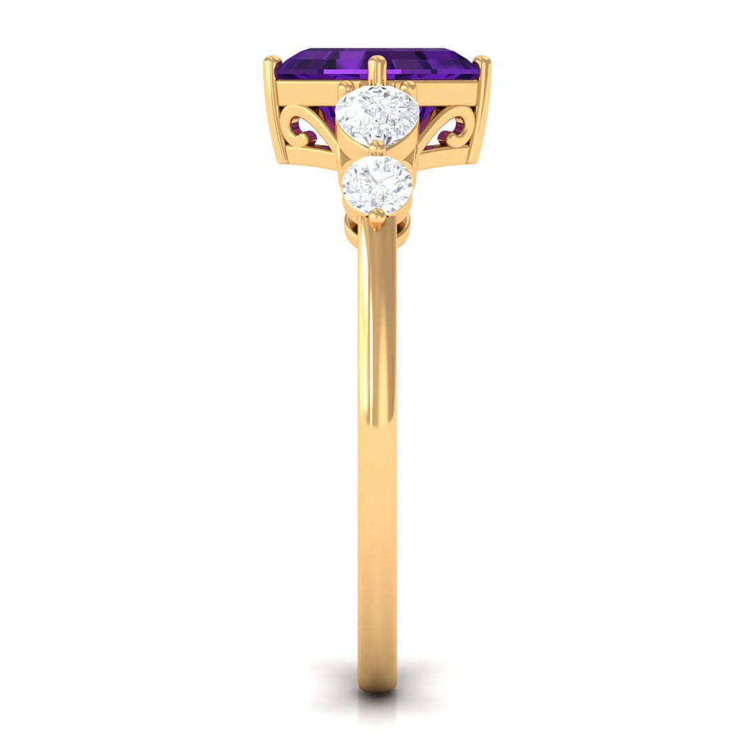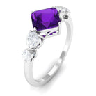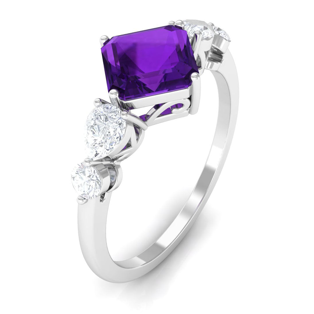 Asscher Cut Amethyst Solitaire Ring with Moissanite Side Stone