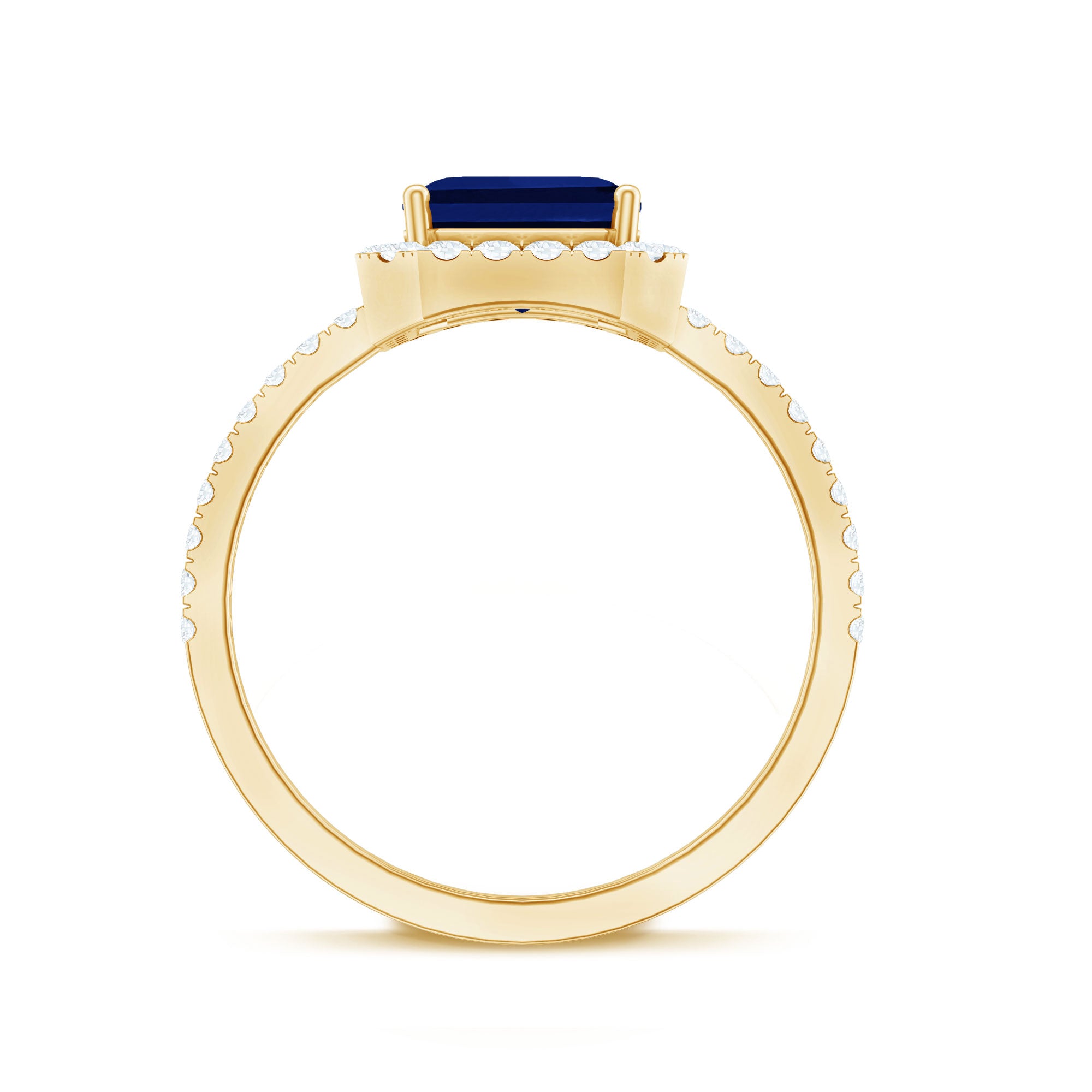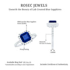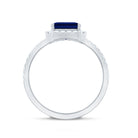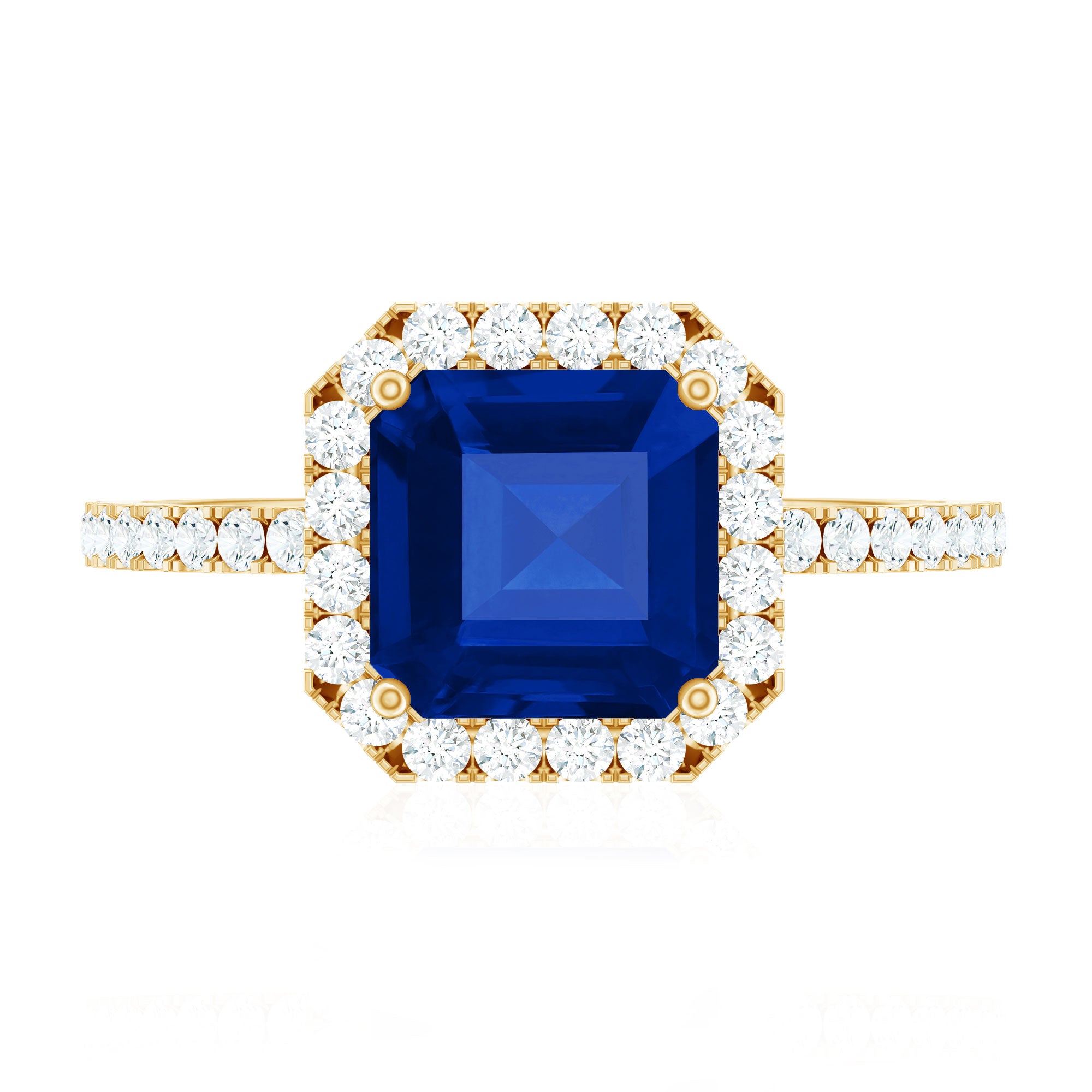 The elegant Asscher-cut Created Blue Sapphire ring with Diamond accents is the perfect jewelry for special occasions. This classic gold ring has a stunning AAAA quality Created Blue Sapphire and undergoes strict quality control. All gemstones are certified for added assurance.