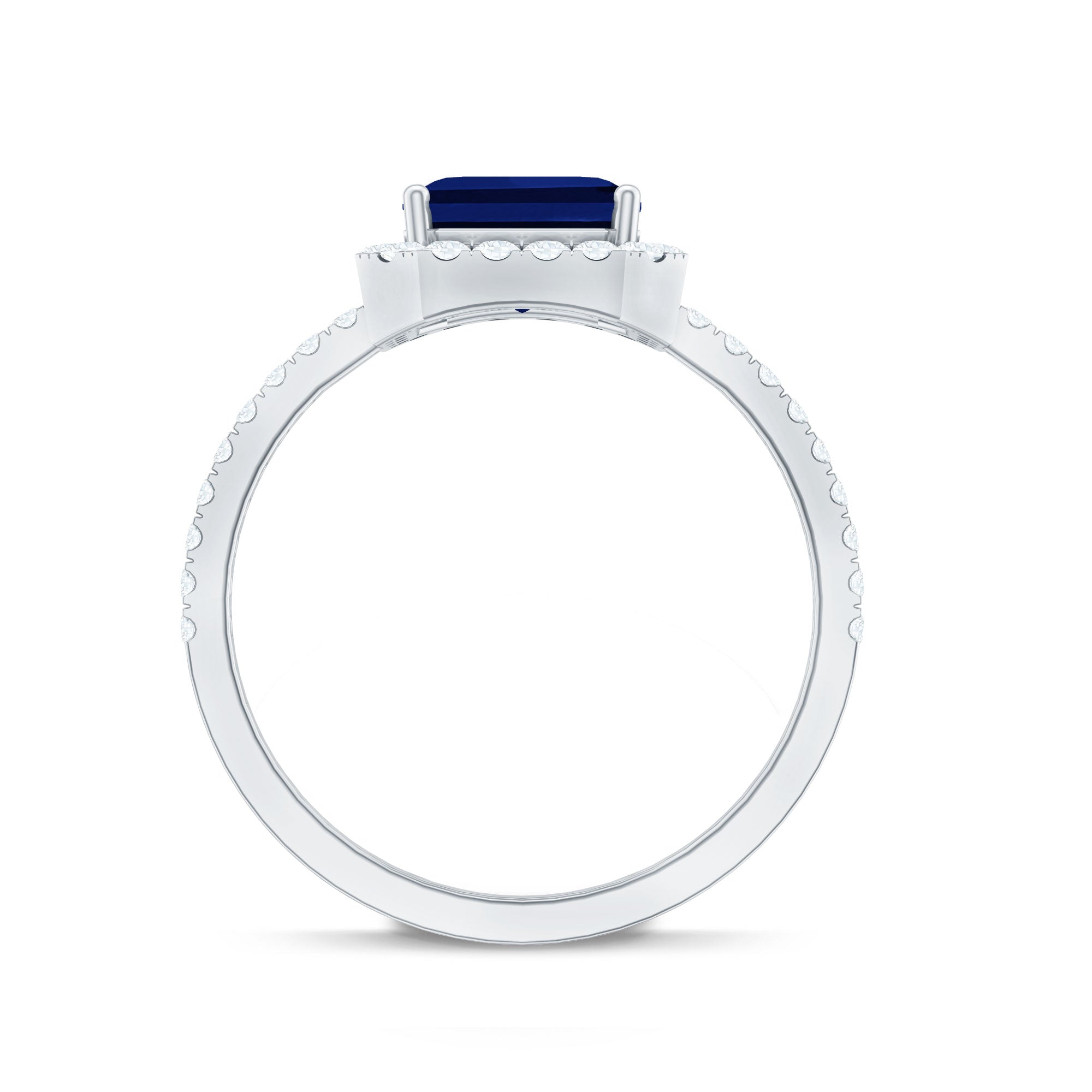 Asscher Cut Created Blue Sapphire Classic Halo Engagement Ring with Diamond