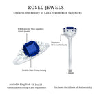 Asscher Cut Created Blue Sapphire Solitaire Engagement Ring with Diamond Trio