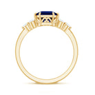 Adorn yourself with the captivating Solitaire Engagement Ring and exude a charismatic aura that is sure to captivate everyone around you. This Solid Gold Ring features an Asscher Cut Created Blue Sapphire as a stunning solitaire, flanked by sets of Diamond Trio on either end, creating a bold and statement-making look.