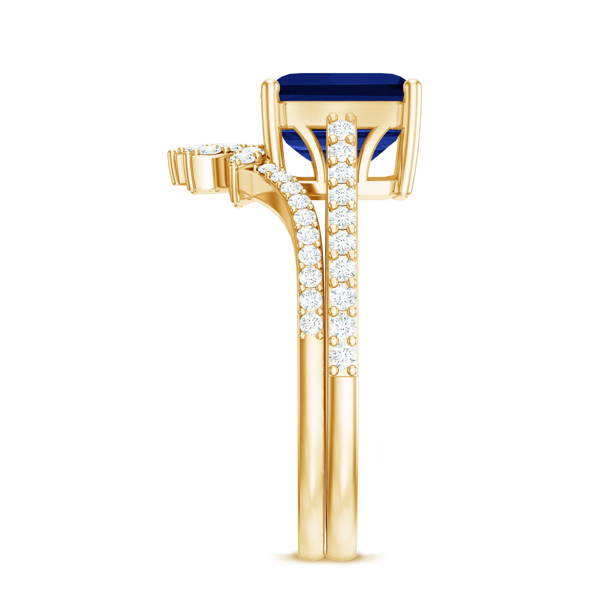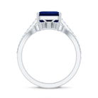 Asscher Cut Created Blue Sapphire Solitaire Wedding Ring Set with Diamond Accent