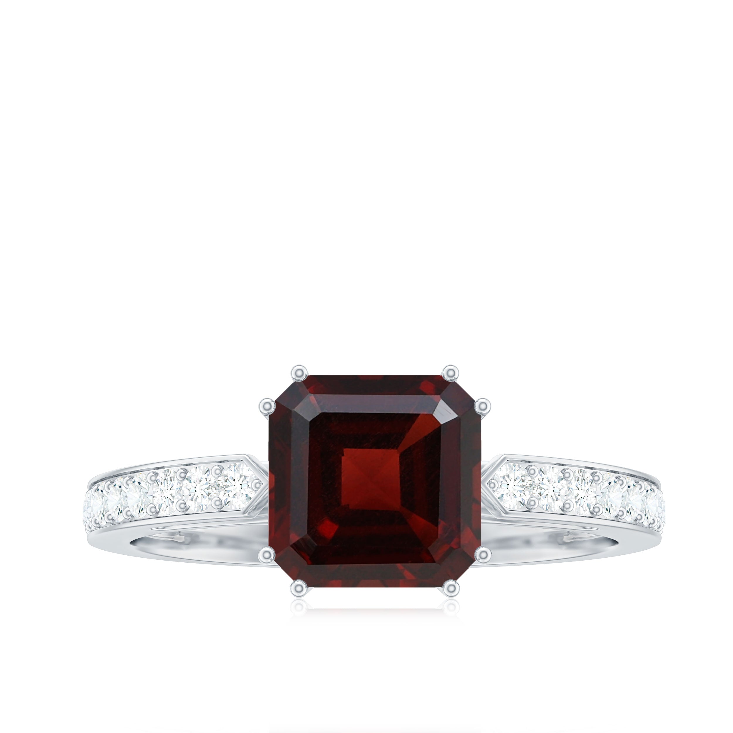 Asscher Garnet Solitaire Engagement Ring with Diamond