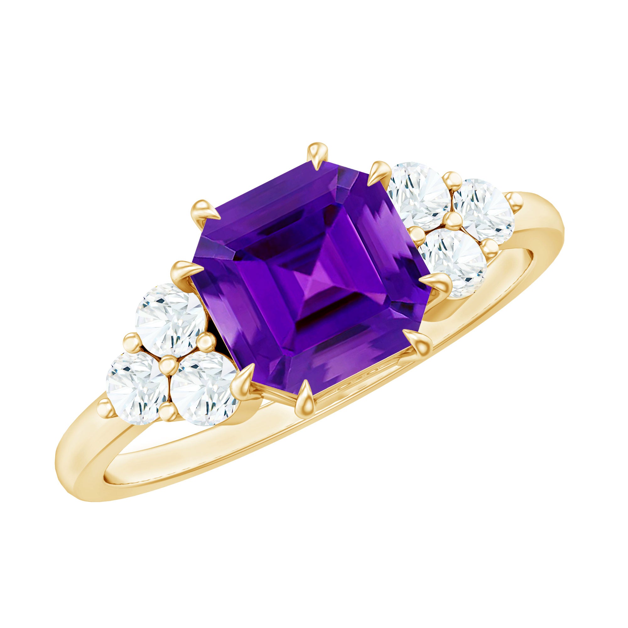Asscher Solitaire Amethyst Engagement Ring with Diamond Trio