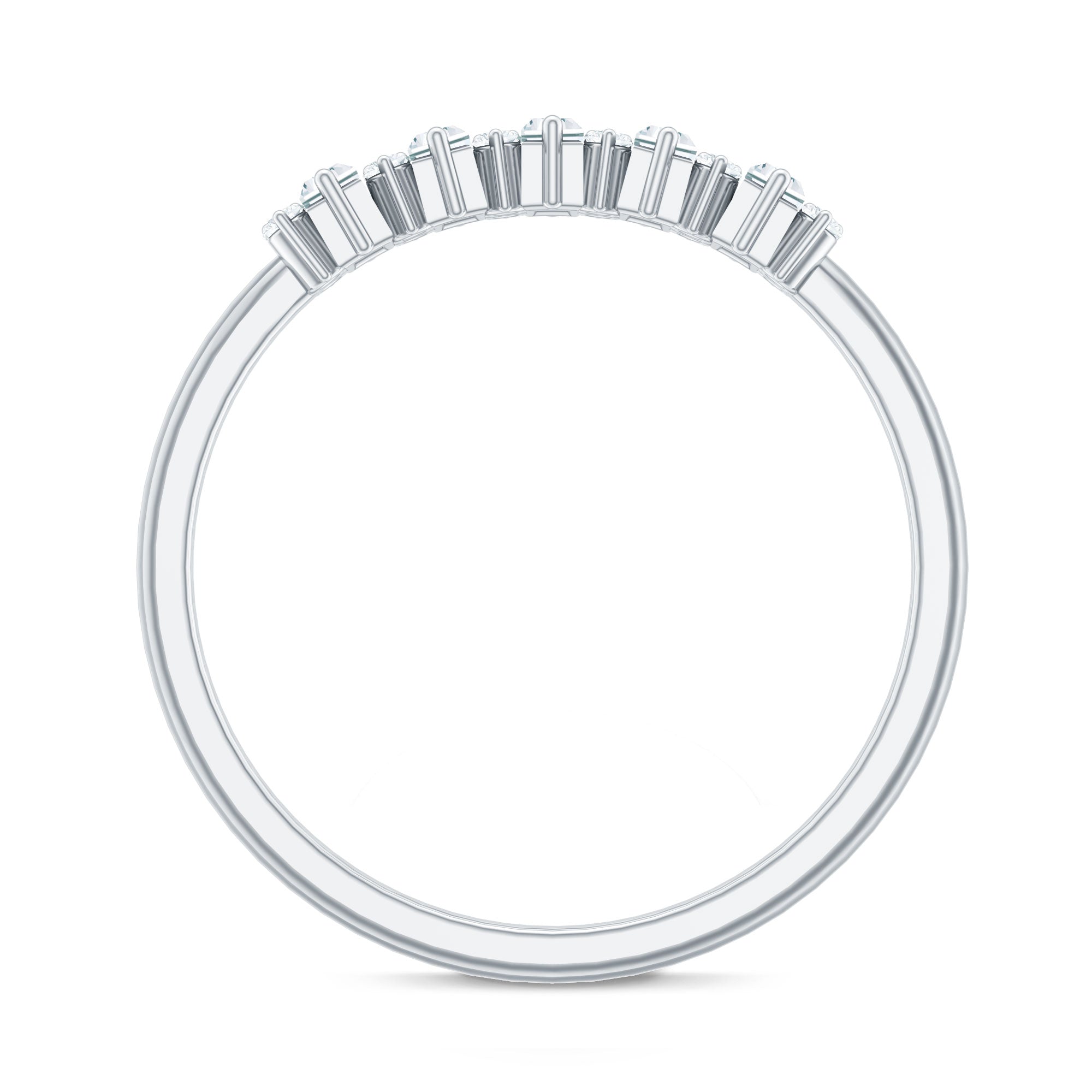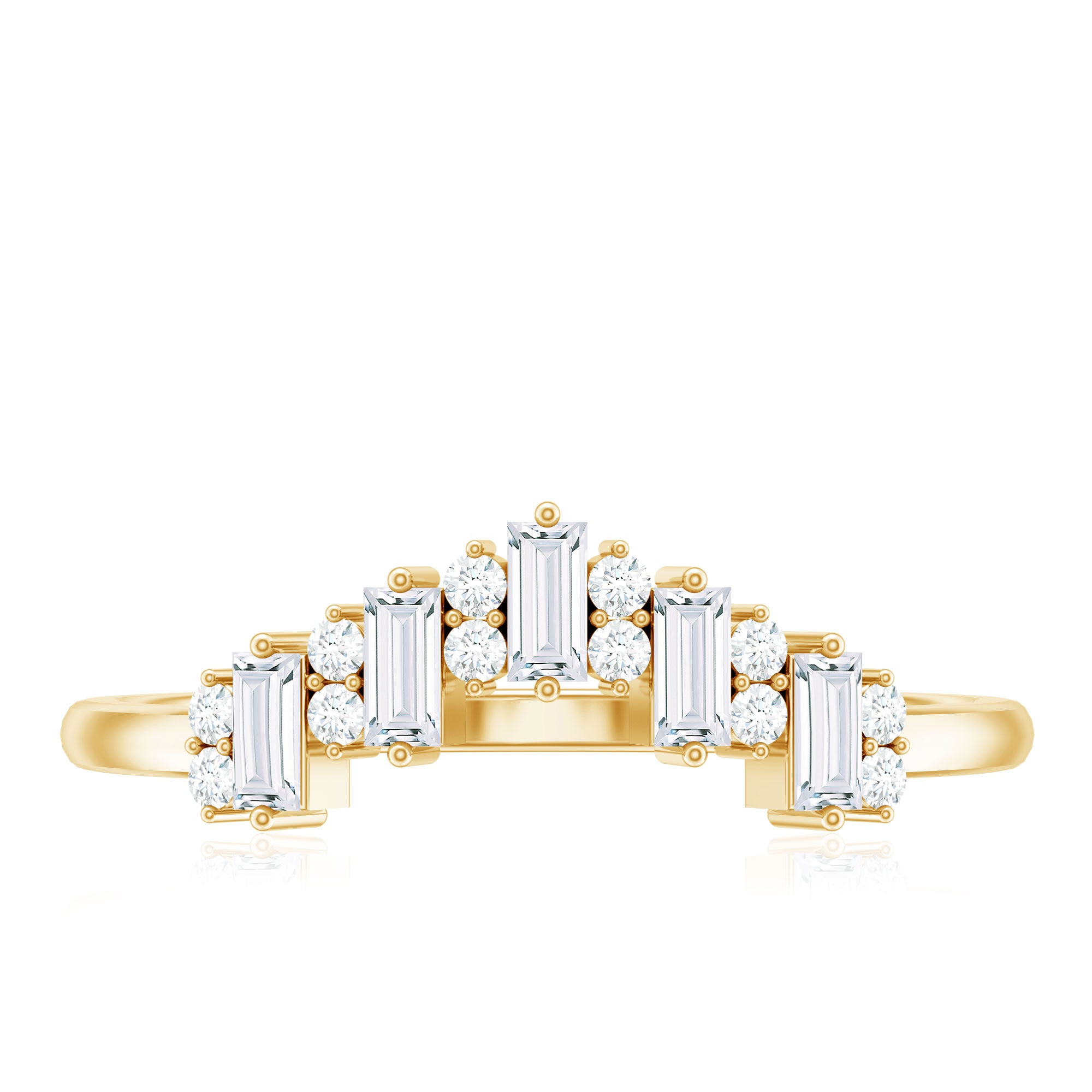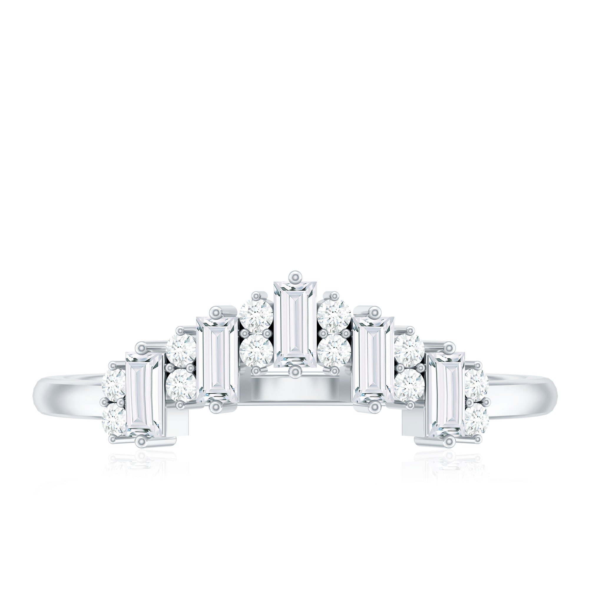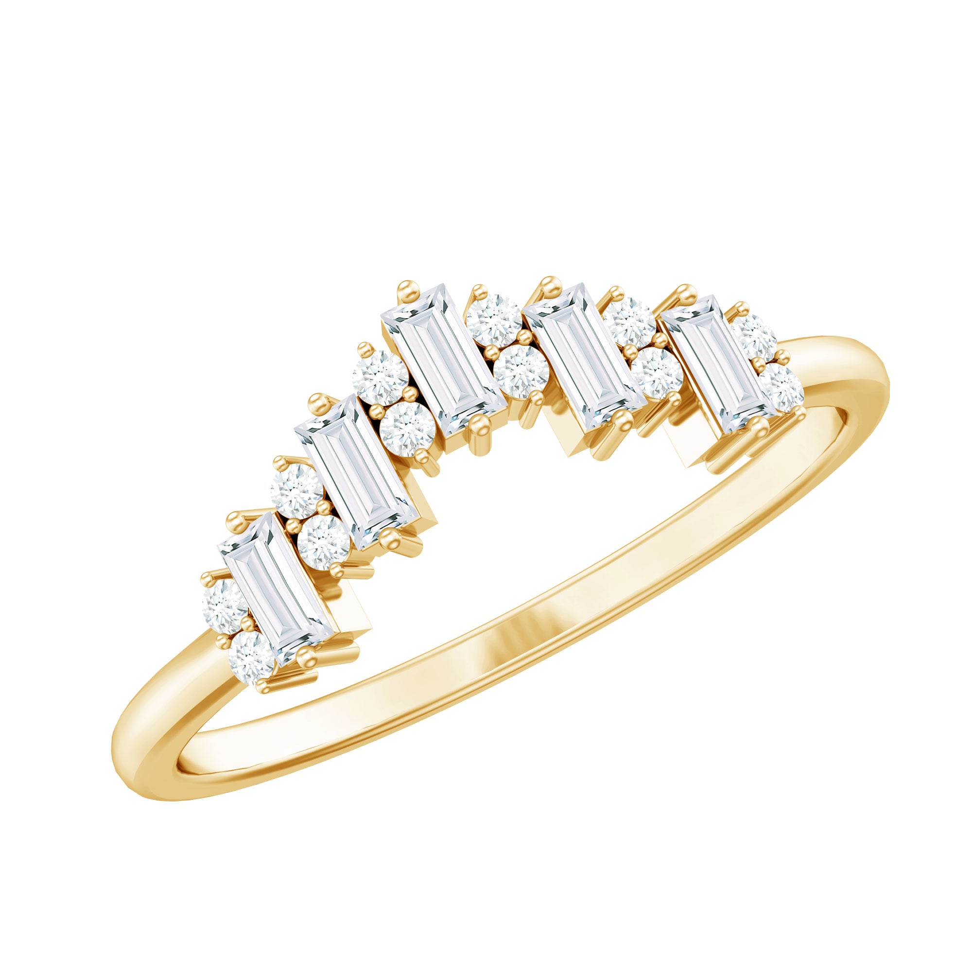 Baguette and Round Cut Moissanite Chevron Stackable Ring