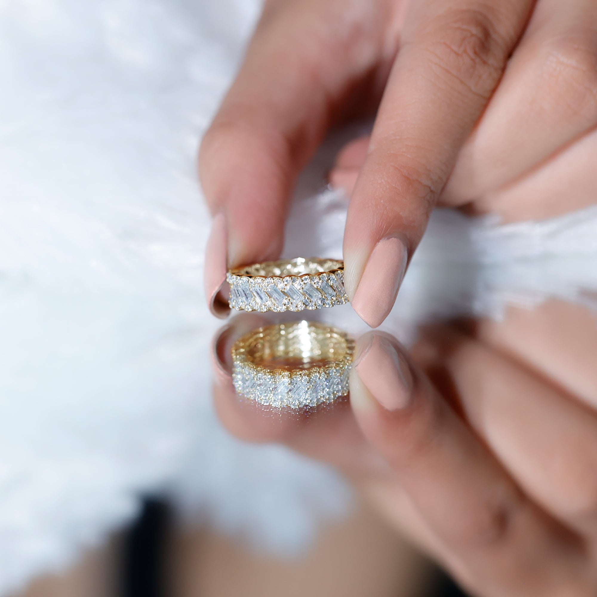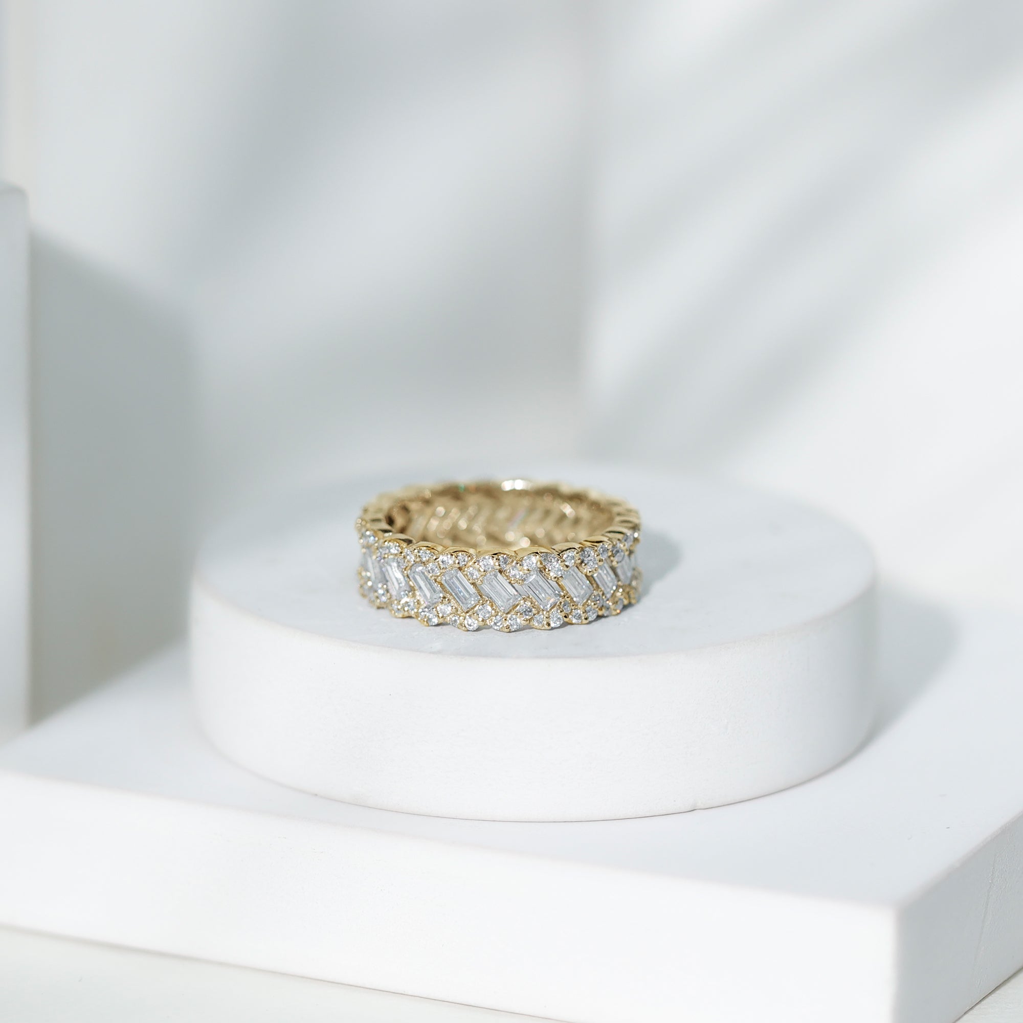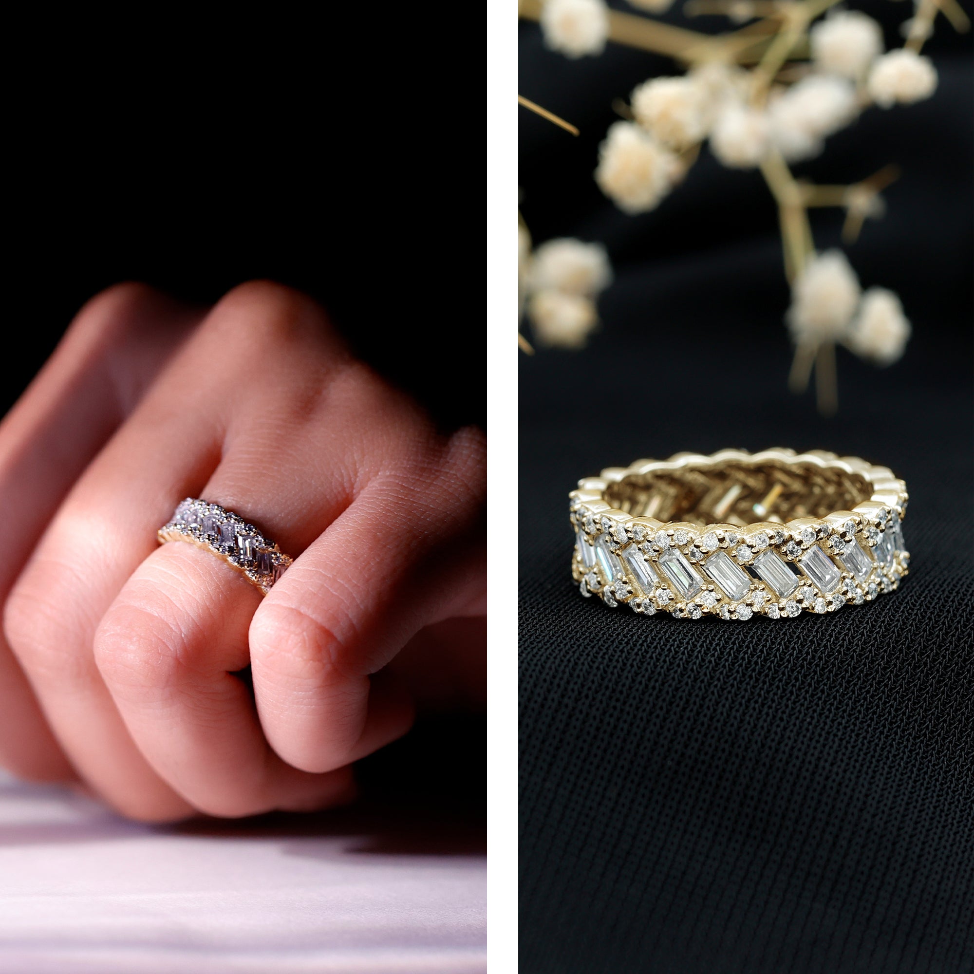 Baguette and Round Moissanite Braided Wedding Band