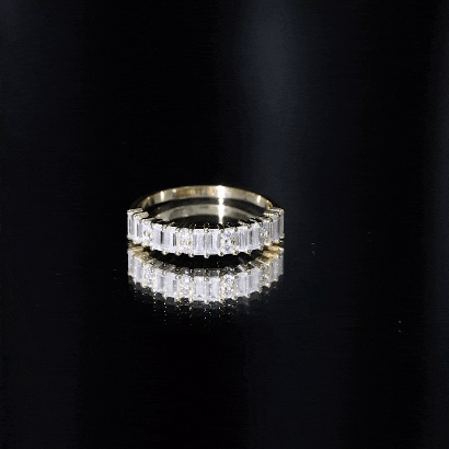 Some promises are softly spoken, while others are cherished for a lifetime - this Moissanite Wedding Band conveys deep meaning without uttering a single word. Crafted with elegance and brilliance, this Half Eternity Band serves as a beautiful symbol of everlasting love. It showcases a breathtaking array of alternating round and baguette cut moissanites, with each stone meticulously chosen for its flawless D color and VS1 clarity, providing unparalleled sparkle and purity. Expertly set in a sophisticated prong setting that secures each gem, this Wedding Anniversary Ring guarantees stunning brilliance from every perspective. The half eternity design strikes the perfect balance of sparkle while ensuring comfort for everyday wear. Whether worn alone for a sleek look or stacked with your engagement ring or another band for a more layered appearance, this Moissanite Eternity Ring is as adaptable as it is gorgeous. It makes an ideal gift for anniversaries, birthdays, weddings, or simply to celebrate yourself. Every time you glance at your hand, it will remind you, or someone dear to you, of the moments that truly matter.