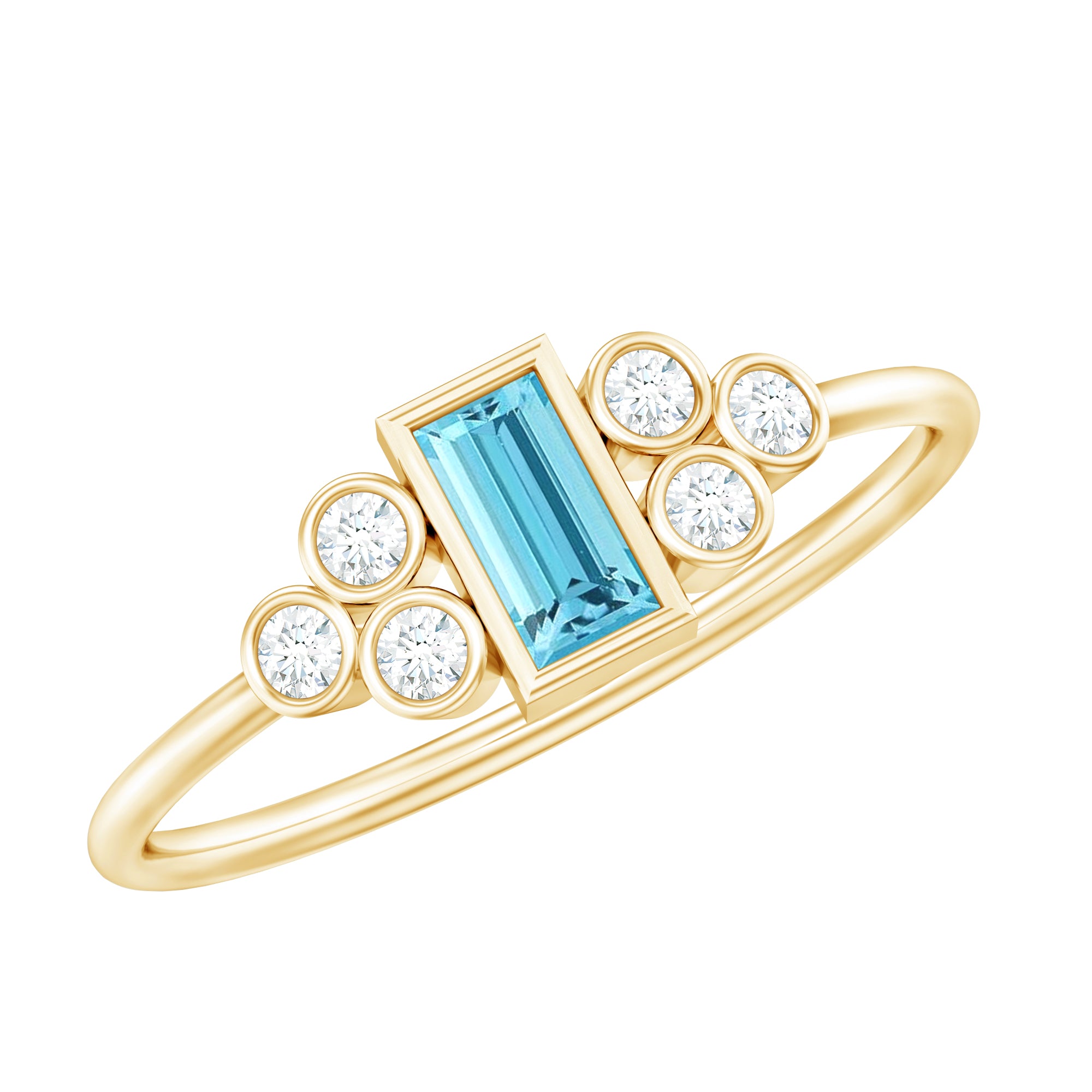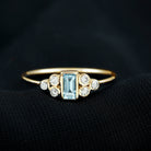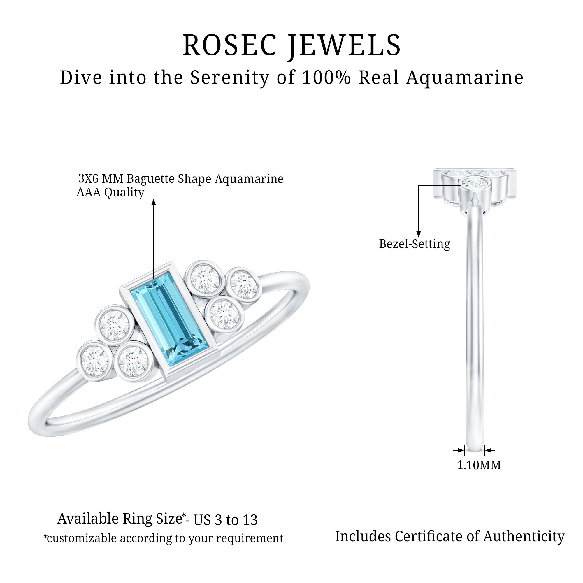 Baguette Aquamarine Solitaire Promise Ring with Diamond