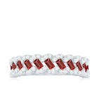 Baguette Created Ruby Braided Eternity Band Ring with Diamond
