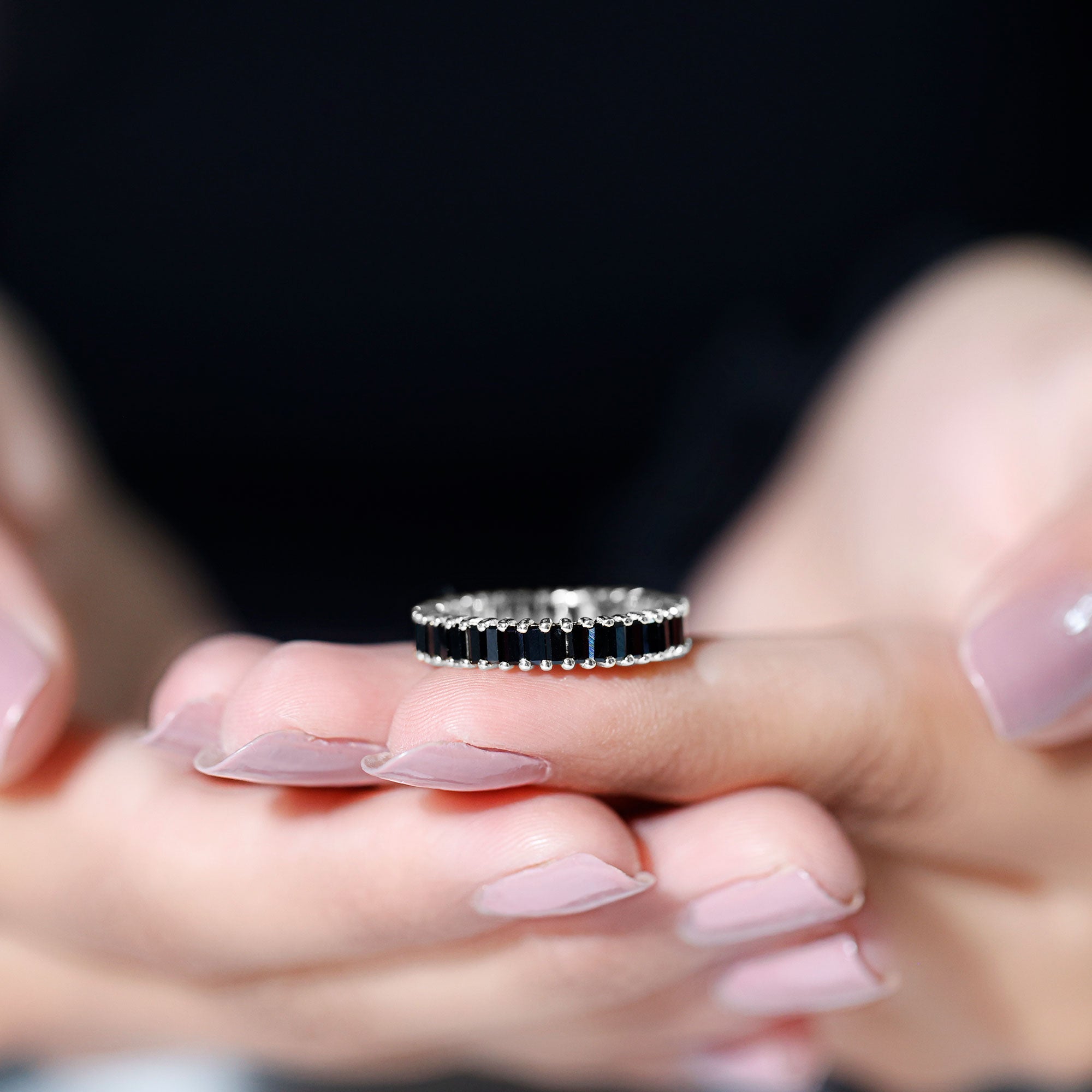 Baguette Cut Black Onyx Eternity Band Ring for Her