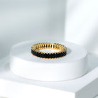 Step into effortless style with this sleek Black Onyx Wedding Band, designed for women who appreciate bold details and everyday elegance. This Stackable Eternity Ring features a continuous row of baguette cut black onyx gemstones, all set in shared prong setting. Perfect for stacking or wearing solo, this Black Onyx Eternity Ring brings a fresh touch to classic jewelry. Crafted using AAA quality natural black onyx, each stone is carefully selected for its beauty and consistency. As the birthstone for December, black onyx carries meaning for those celebrating a birthday this month, and it is also a thoughtful gift for anyone who finds strength and focus in this powerful stone. Handmade with care and available in various finishes and sizes, this Baguette Wedding Band allows for a personalized touch. Its design and lasting appeal make it a lovely choice for holidays, birthdays, or any moment worth remembering. With a balanced mix of simplicity and sophistication, this Black Onyx Stacking Ring adds just the right amount of bold to your jewelry collection. Whether it is your first onyx piece or one of many, it is sure to become a favorite you will reach for every day. A timeless design made with meaning, comfort, and care.