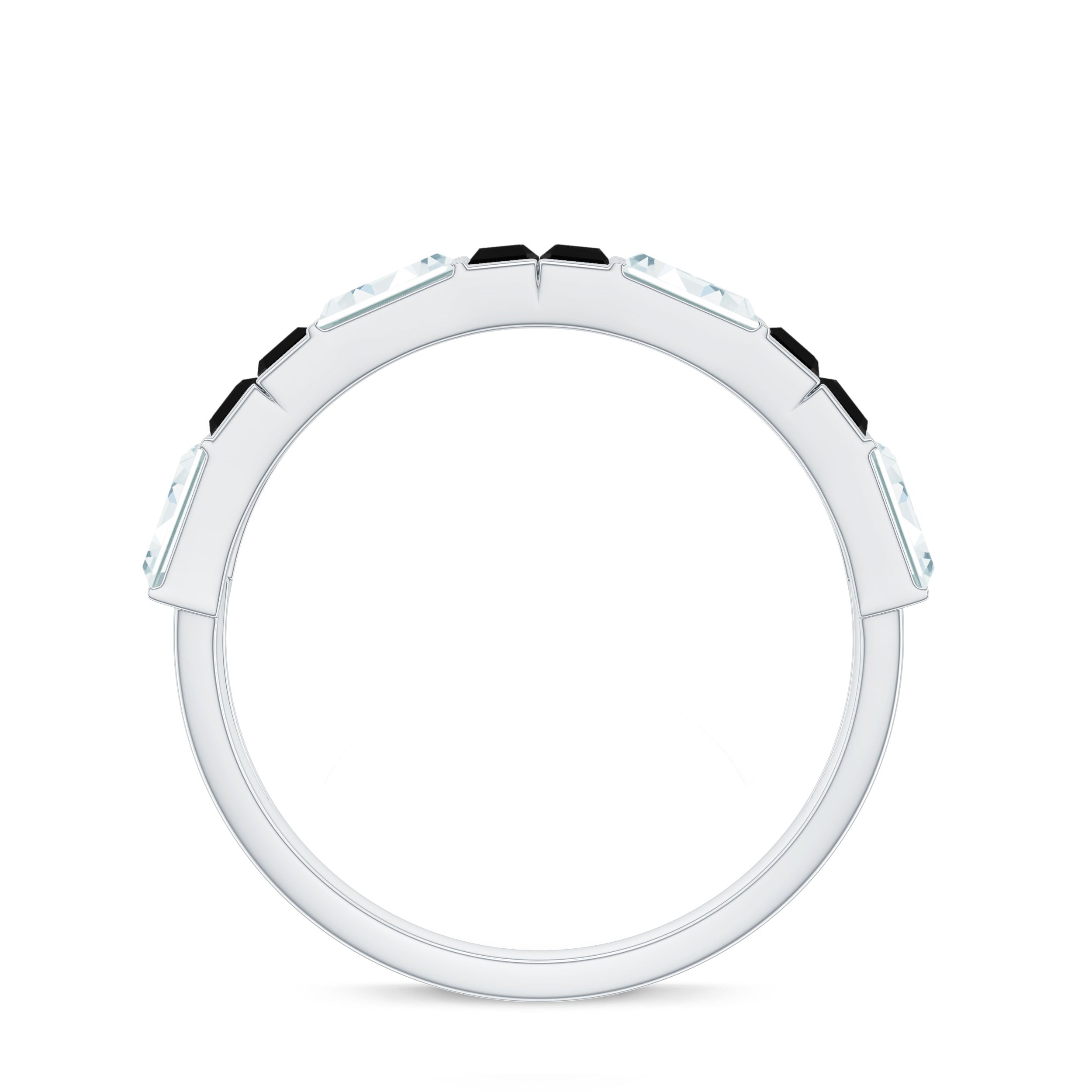 Baguette Cut Black Spinel and Moissanite Half Eternity Ring