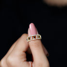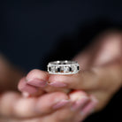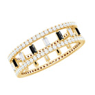 Discover the ideal of a perfect wedding band with our captivating Wedding Band. This eternity band features alternating Baguette Shape Black Spinel and Moissanite stones, creating a striking and harmonious contrast. Our skilled artisans have elevated the allure of this design by adding Round-Cut Moissanite accents, making it a symbol of everlasting elegance and style.