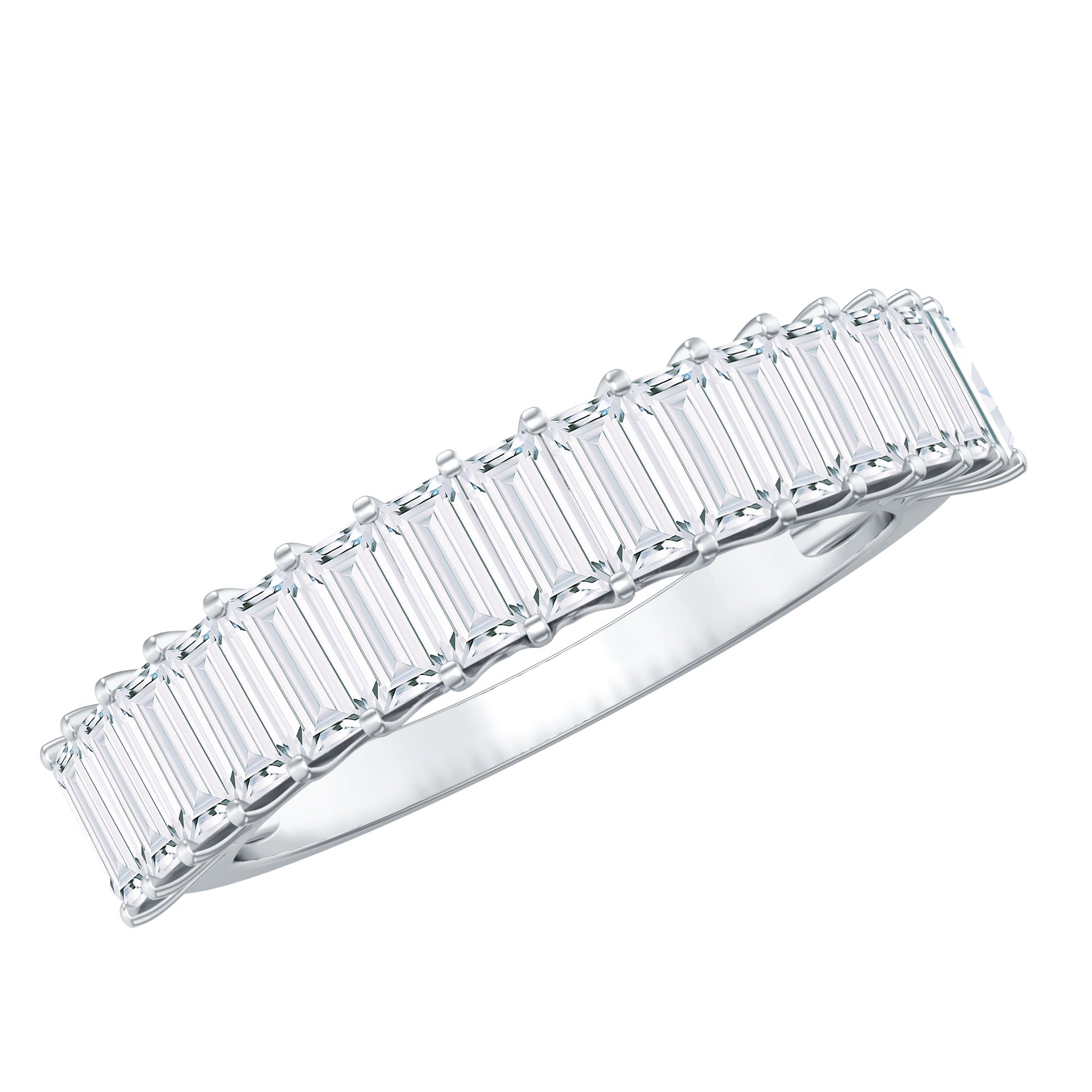 Baguette Cut Certified Moissanite Half Eternity Band Ring