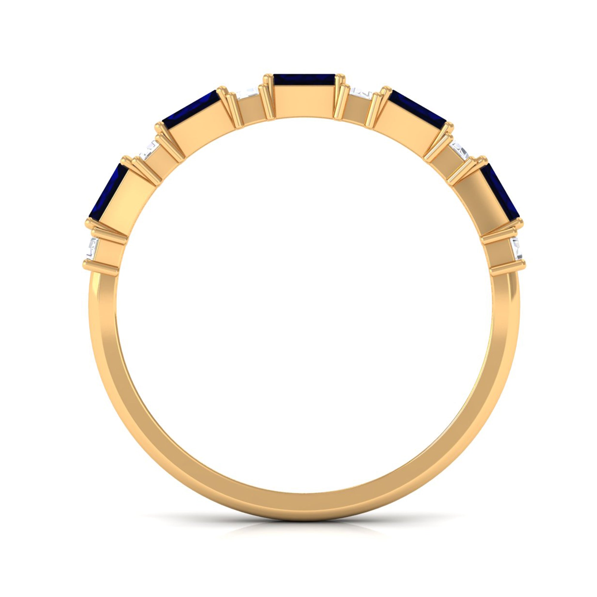 Certified Baguette Cut Lab Created Blue Sapphire and Diamond Half Eternity Band