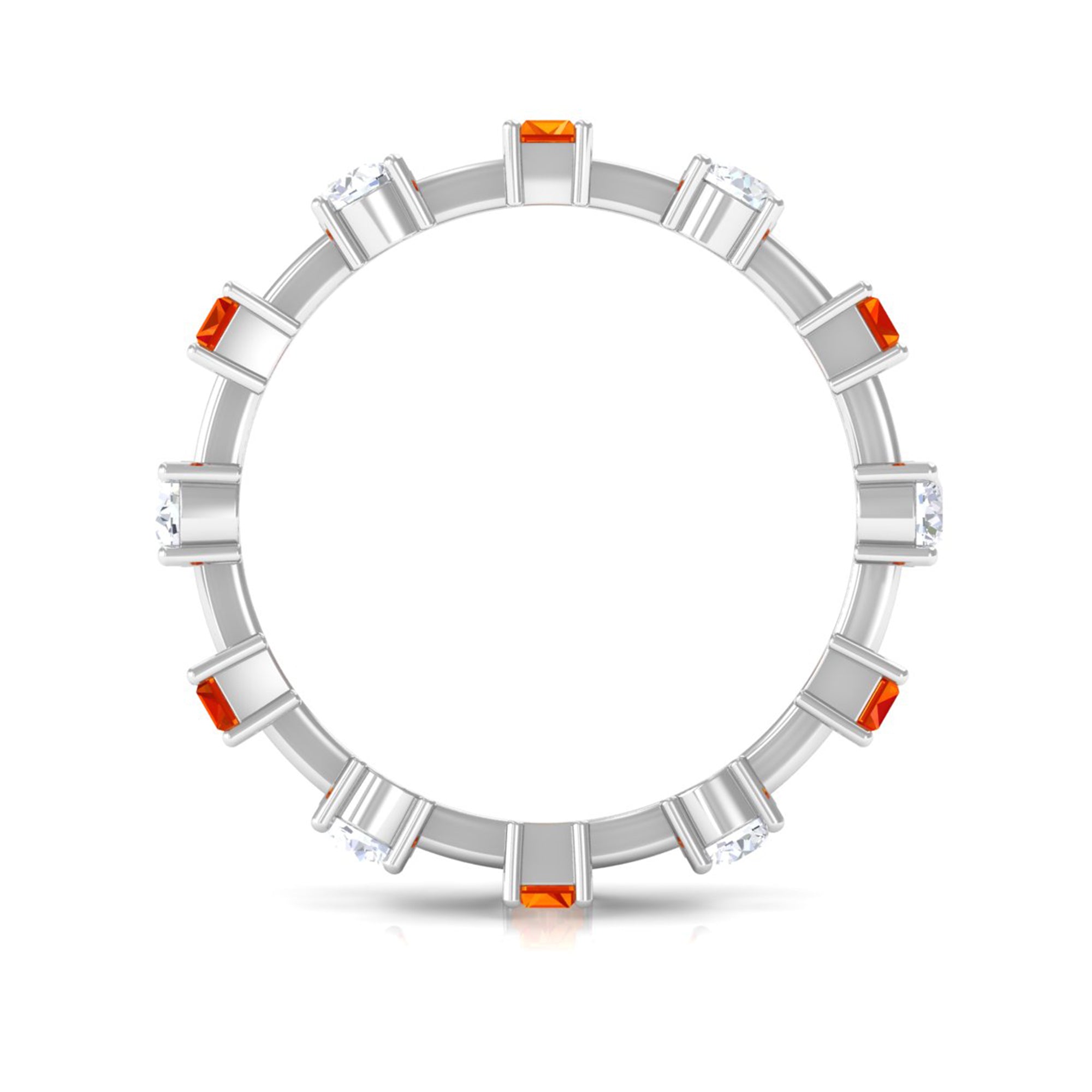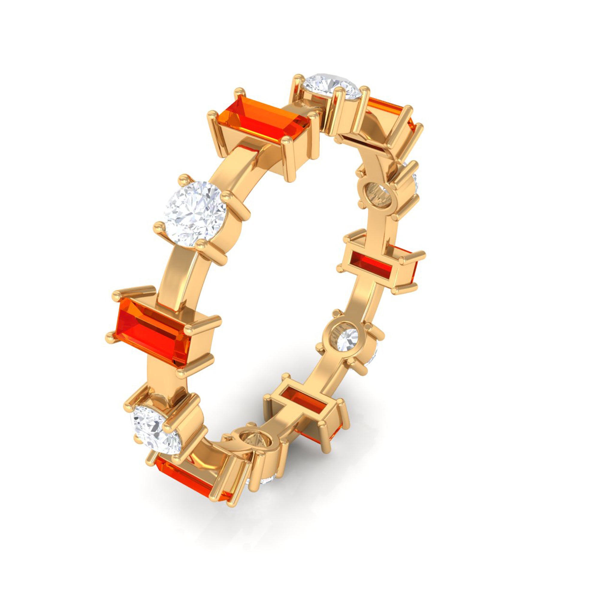 Baguette Cut Created Orange Sapphire Eternity Ring with Moissanite