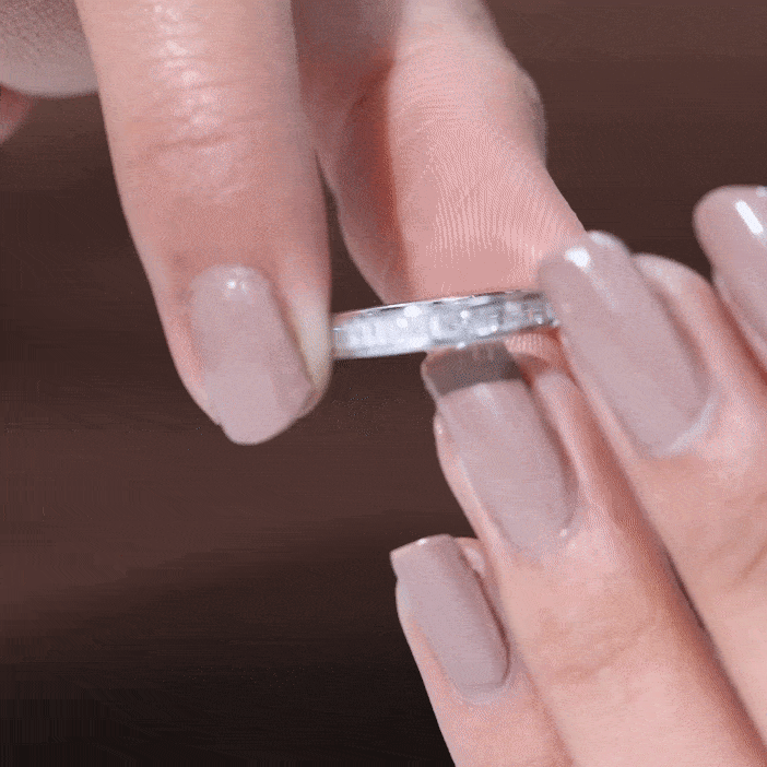 In a channel setting, each baguette diamond is securely positioned between two smooth metal walls, creating a streamlined surface with minimal interruption. This setting style enhances durability while allowing the geometric facets of the baguette cuts to reflect light in a subtle, sophisticated manner. The result is a band that sits comfortably alongside engagement rings or stands confidently on its own.