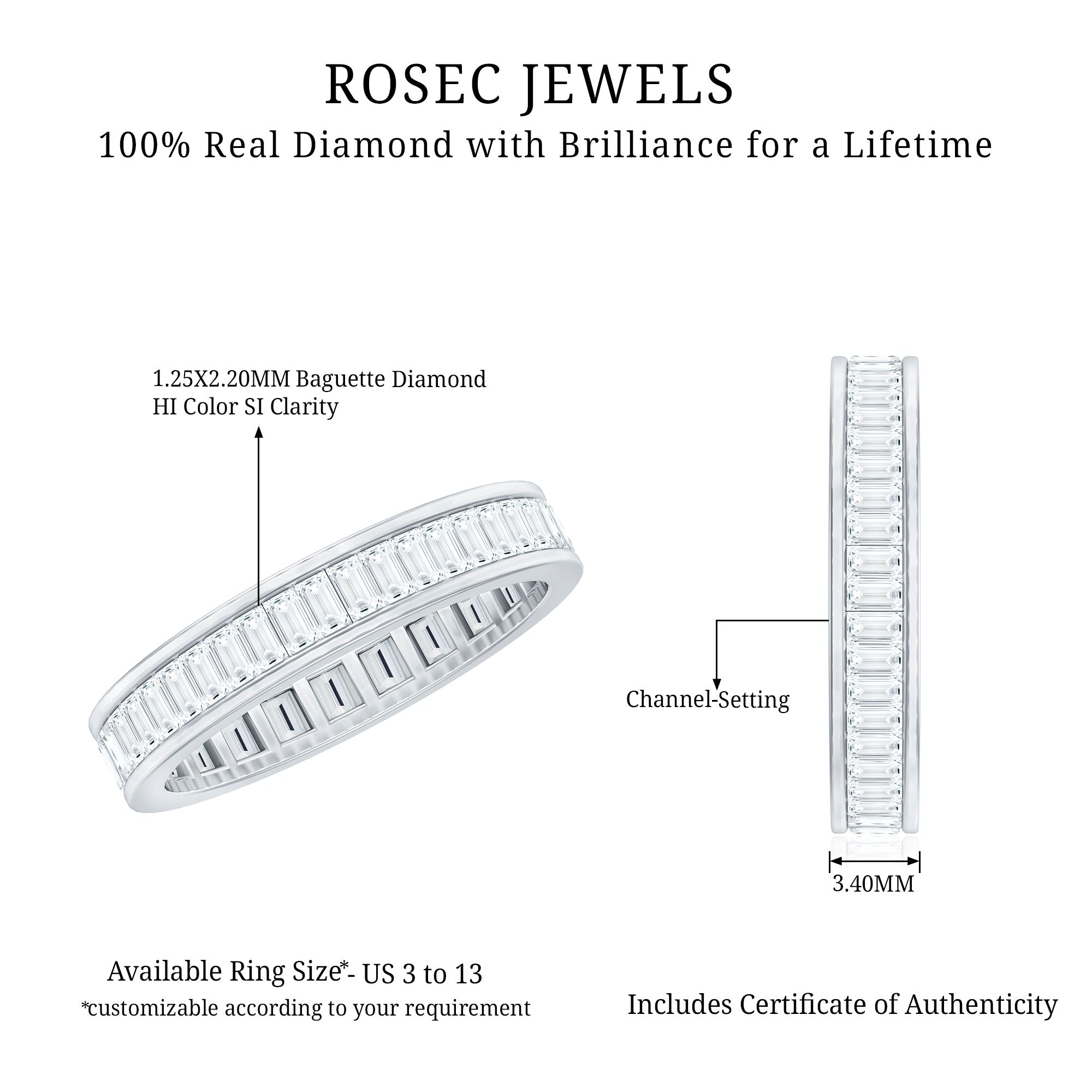 - Eternity design: continuous diamond presence around the band.