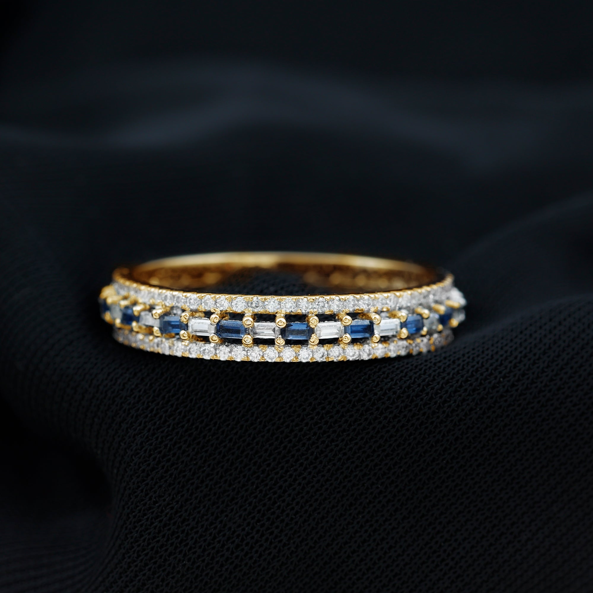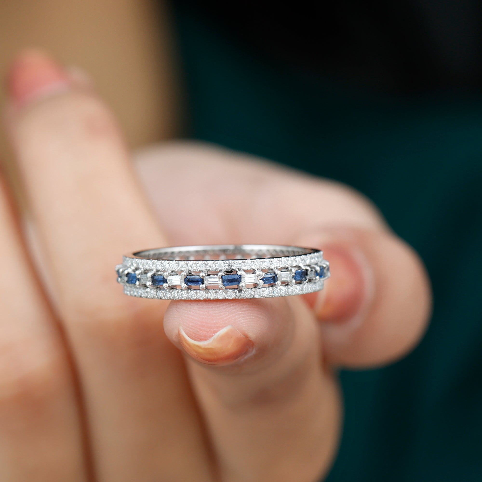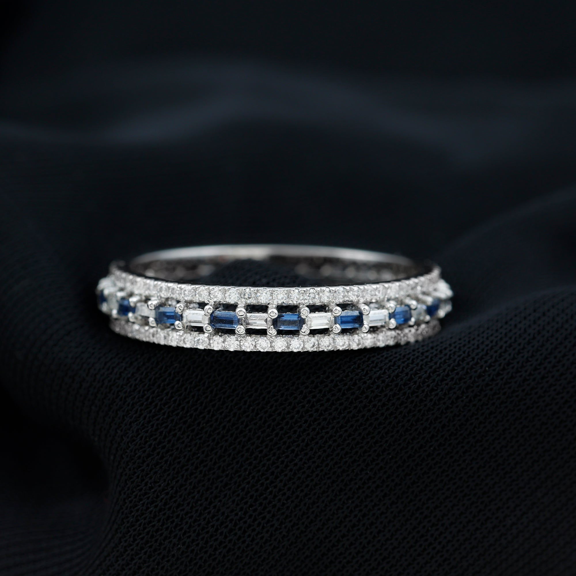 Baguette Cut Lab Grown Blue Sapphire and Moissanite Wedding Band