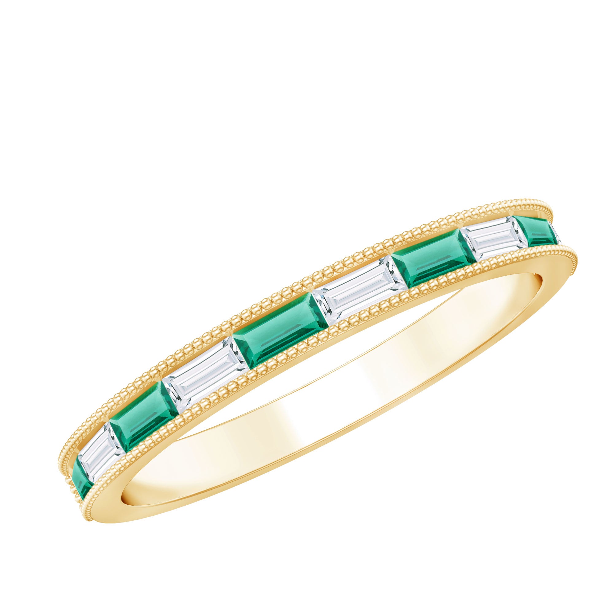 Baguette Cut Lab Grown Emerald and Diamond Band Ring