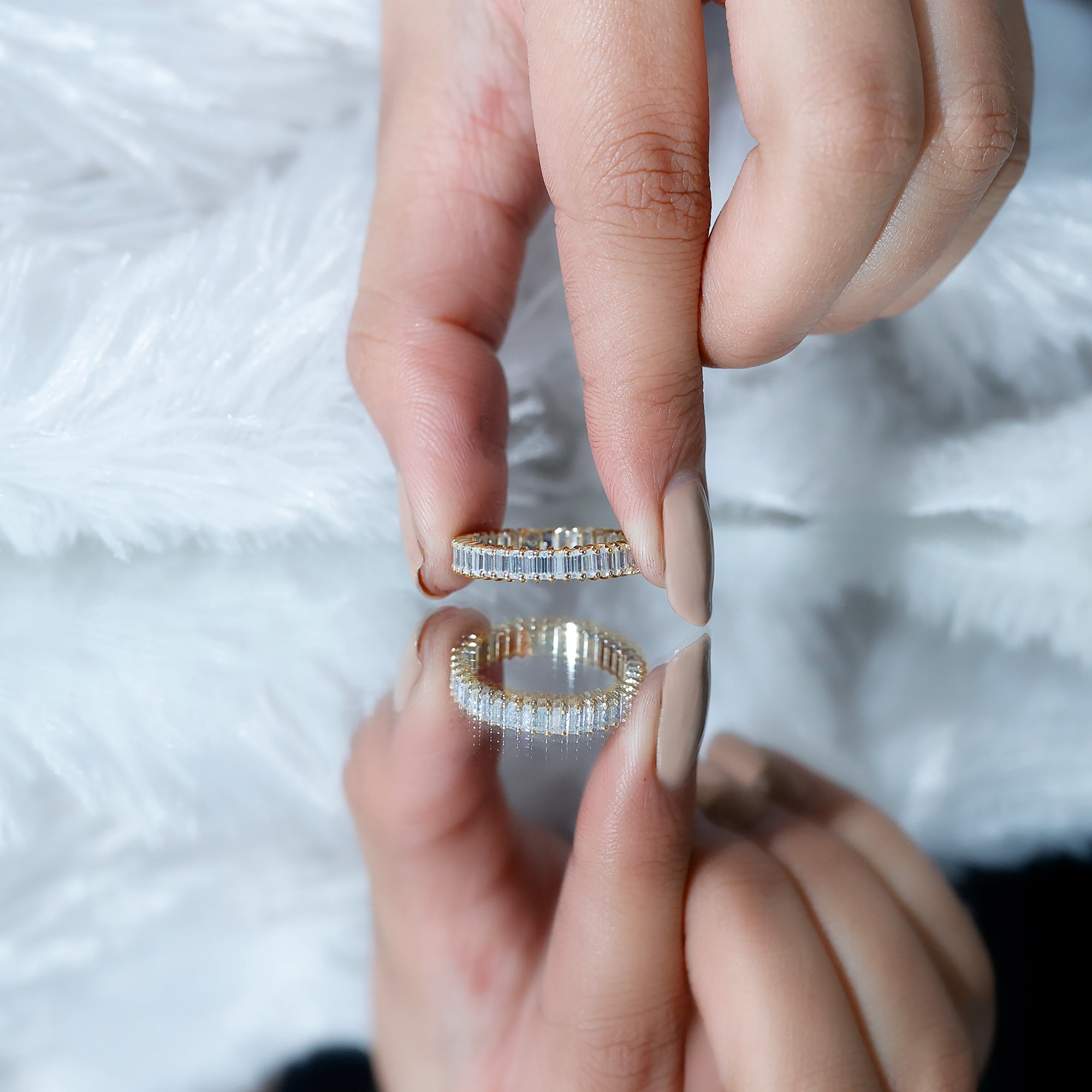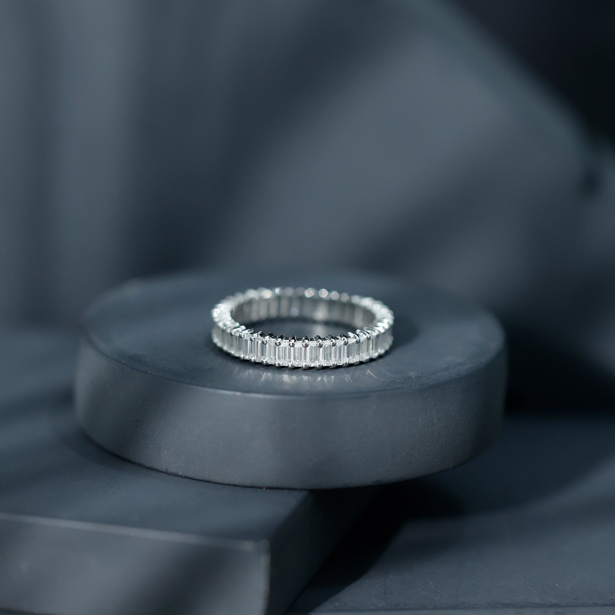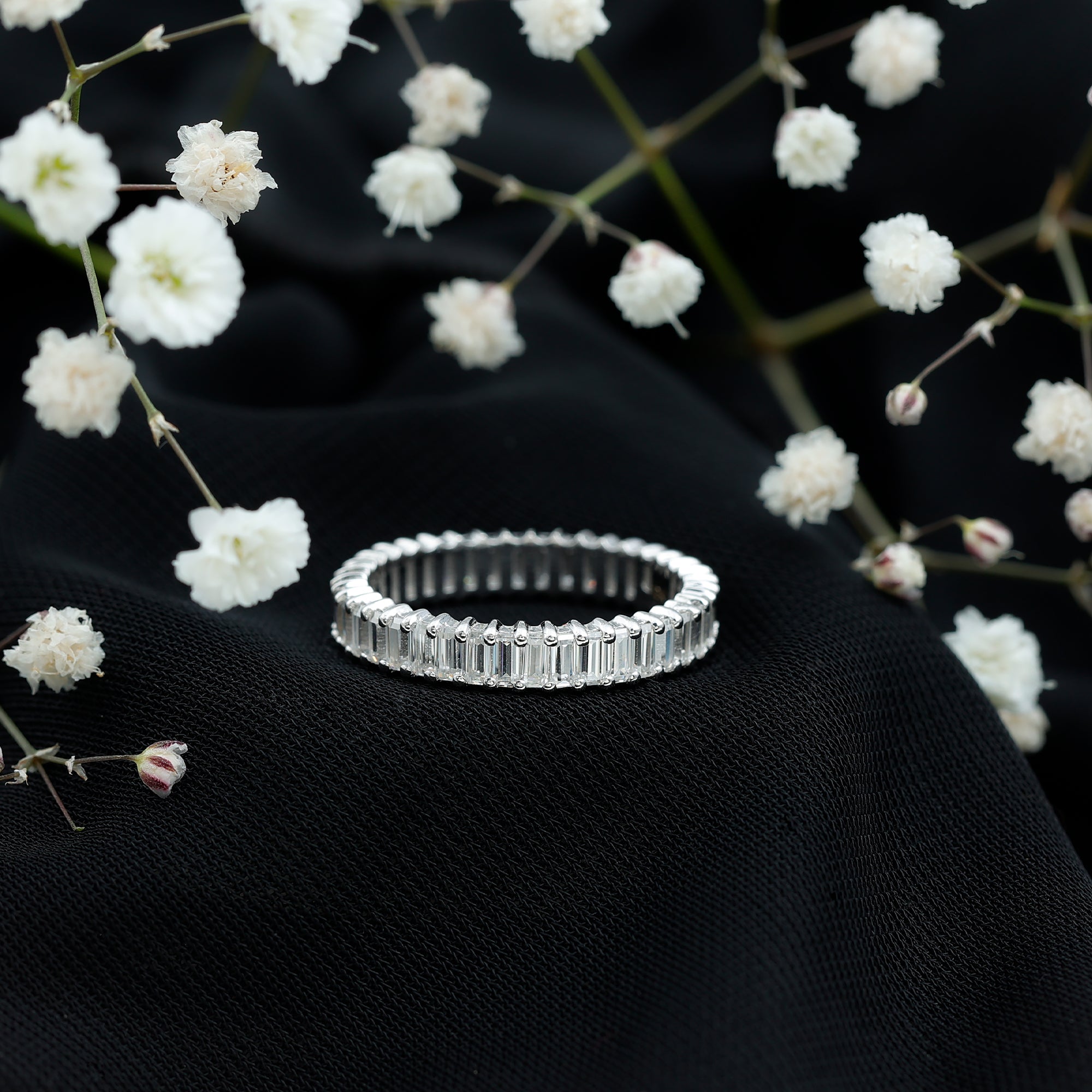 Baguette Cut Moissanite Eternity Ring in Shared Prong Setting