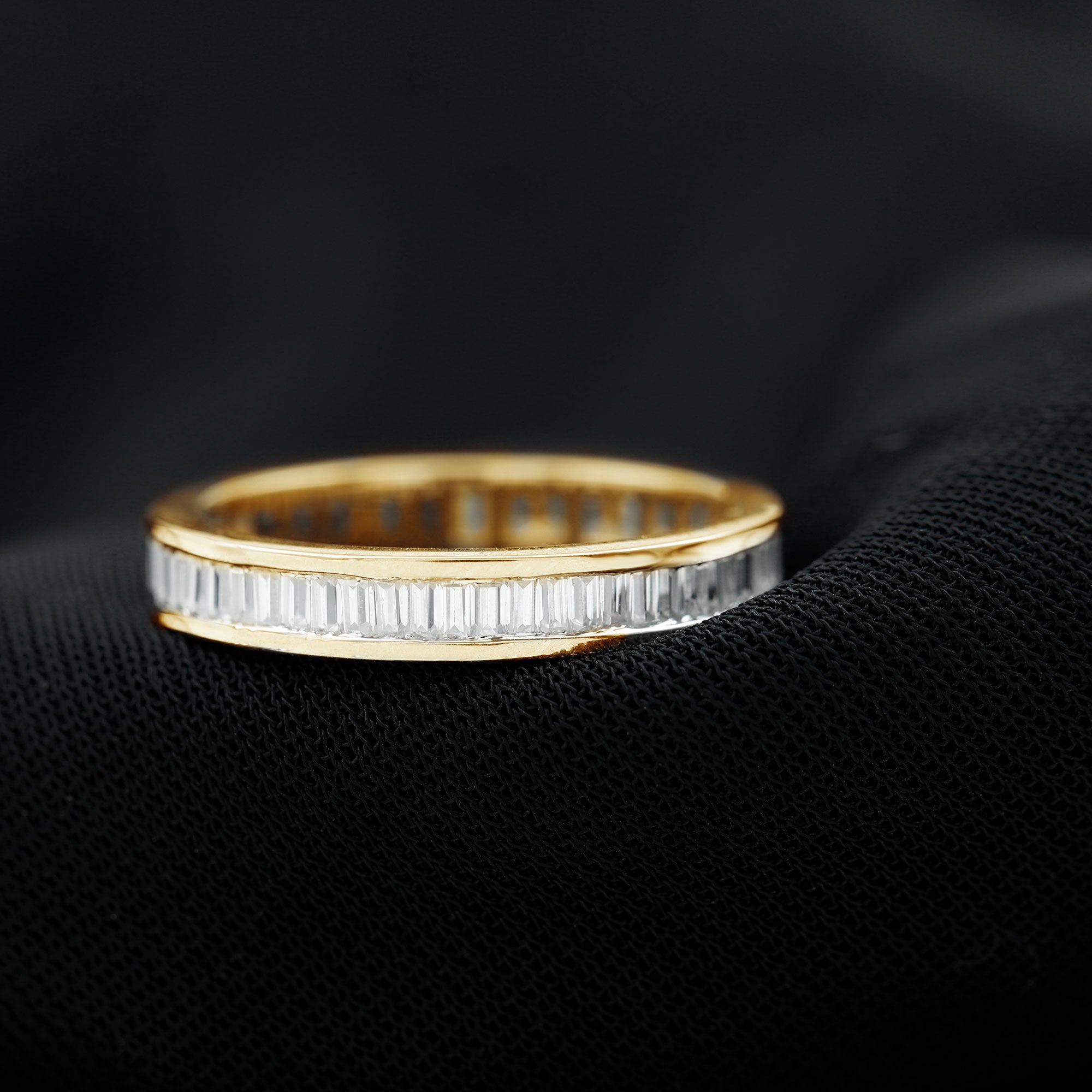 This Half Eternity Ring is crafted with Baguette Moissanite which gives justice to its incredible value. Certified Moissanite summons beauty, attractiveness, and unbreakable love, adding luxury to the wearer. Its Durability and Luster are enhanced by Lab Created Treatment, to further make it a captivating and desirable gem. This Moissanite Wide Band Ring can be worn solely to get a classy look or stacked with other thin rings to achieve a statement look. This Unisex Band Ring is crafted precisely for the special day for both men and women. Your purchase will include a certificate of gemstone authentication which assures the quality of the ring.