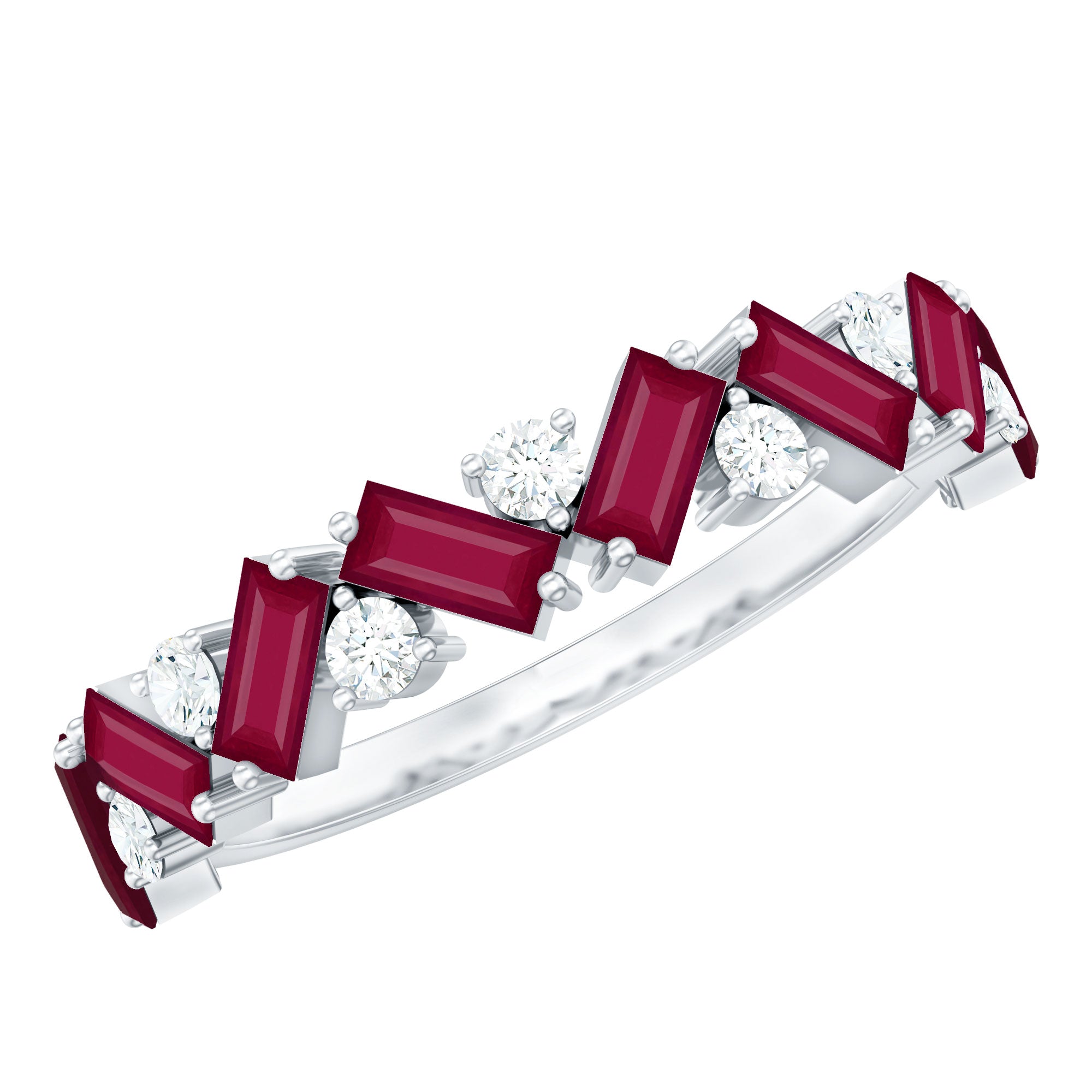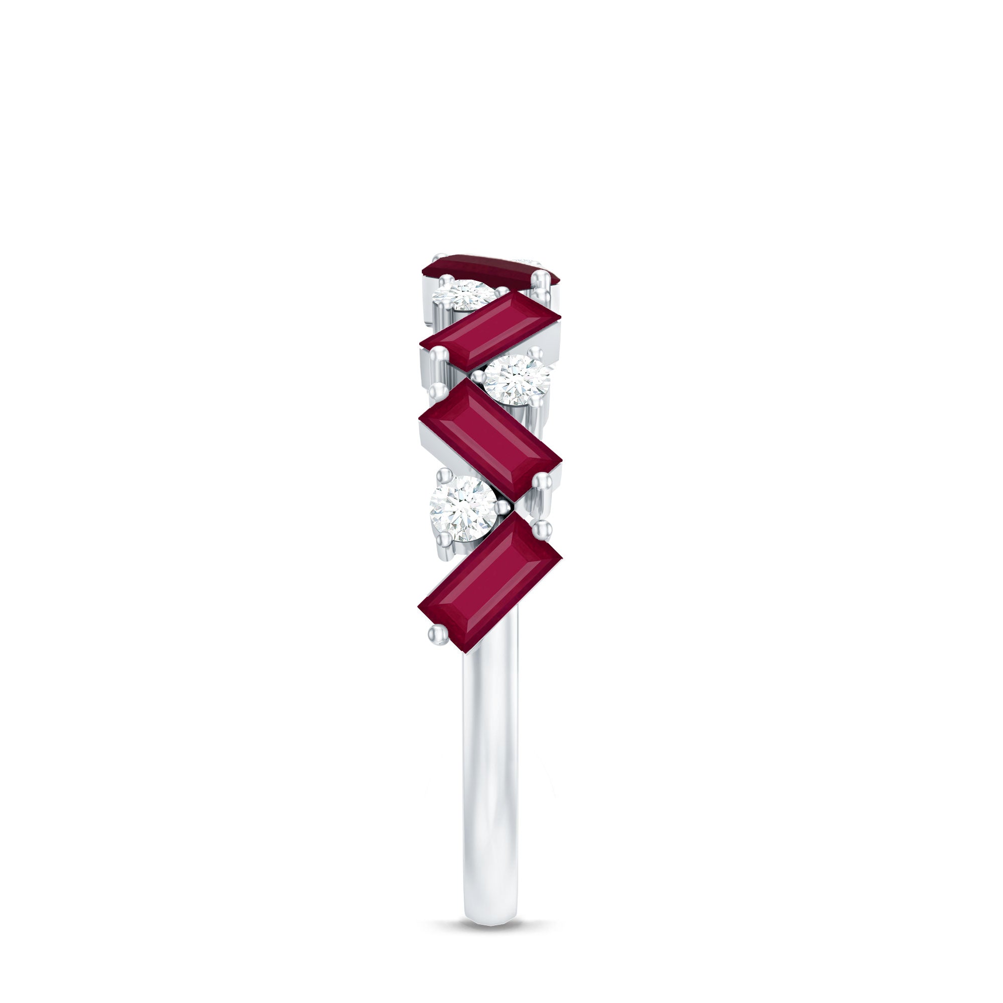 Baguette Cut Ruby and Moissanite Half Eternity Ring