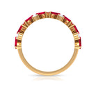 Turn heads while you flaunt this stunning Ruby Eternity Ring in your gorgeous hands. The Half Eternity Ring showcases Baguette Cut Ruby Gemstones and Round Cut Moissanite gemstones set in a zig zag pattern in prong setting. Mesmerizing Solid Gold Build makes this Eternity Ring for Women a perfect gift for surprising your precious one on valentines day.