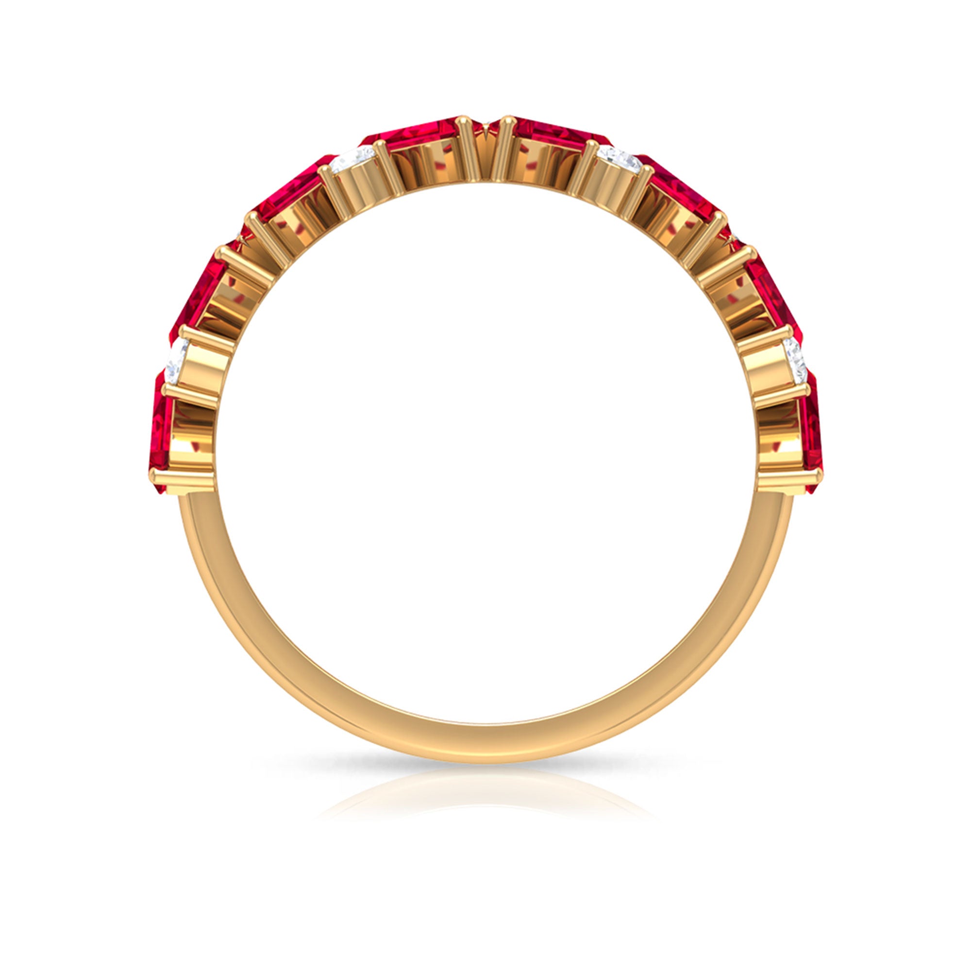 Baguette Cut Ruby and Moissanite Half Eternity Ring