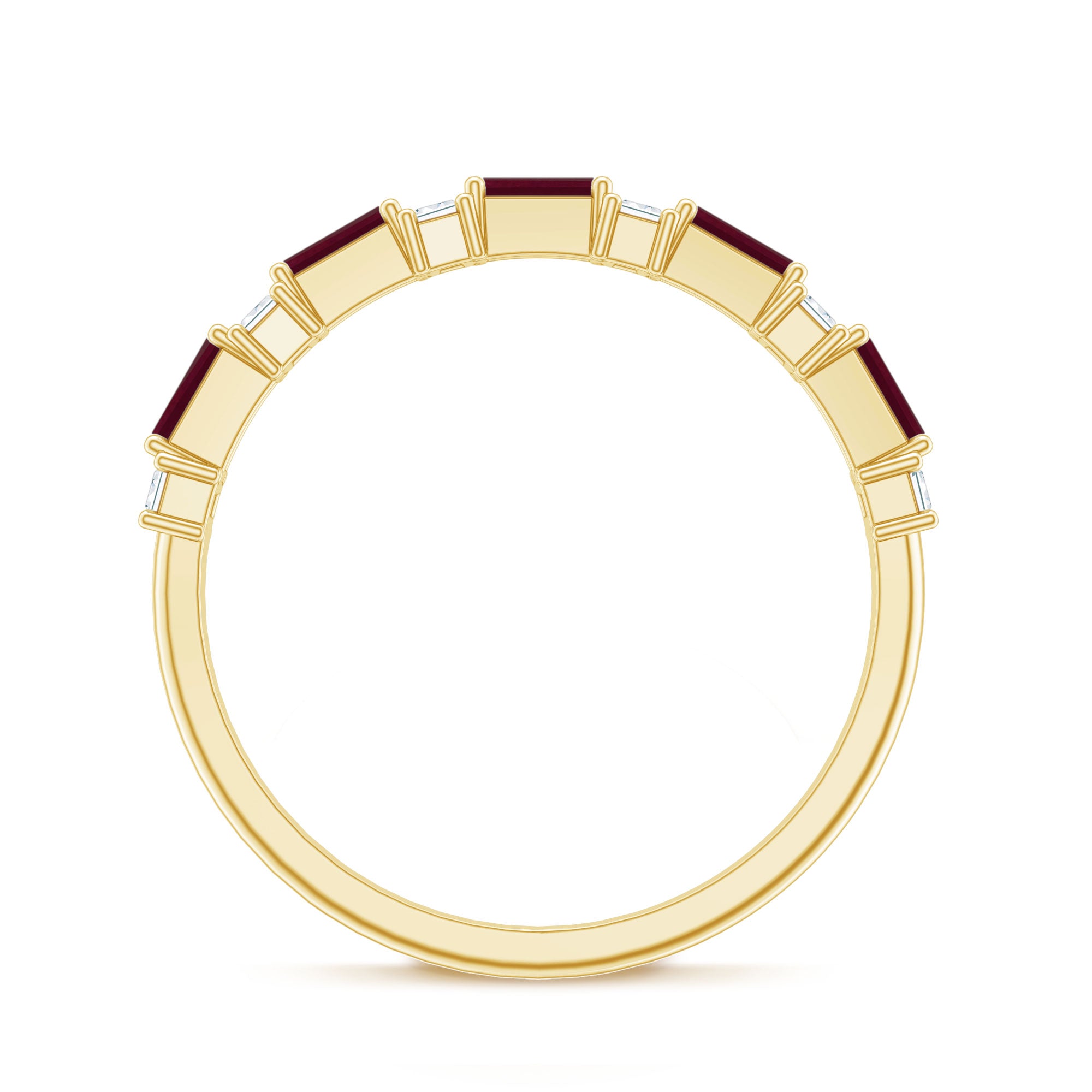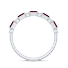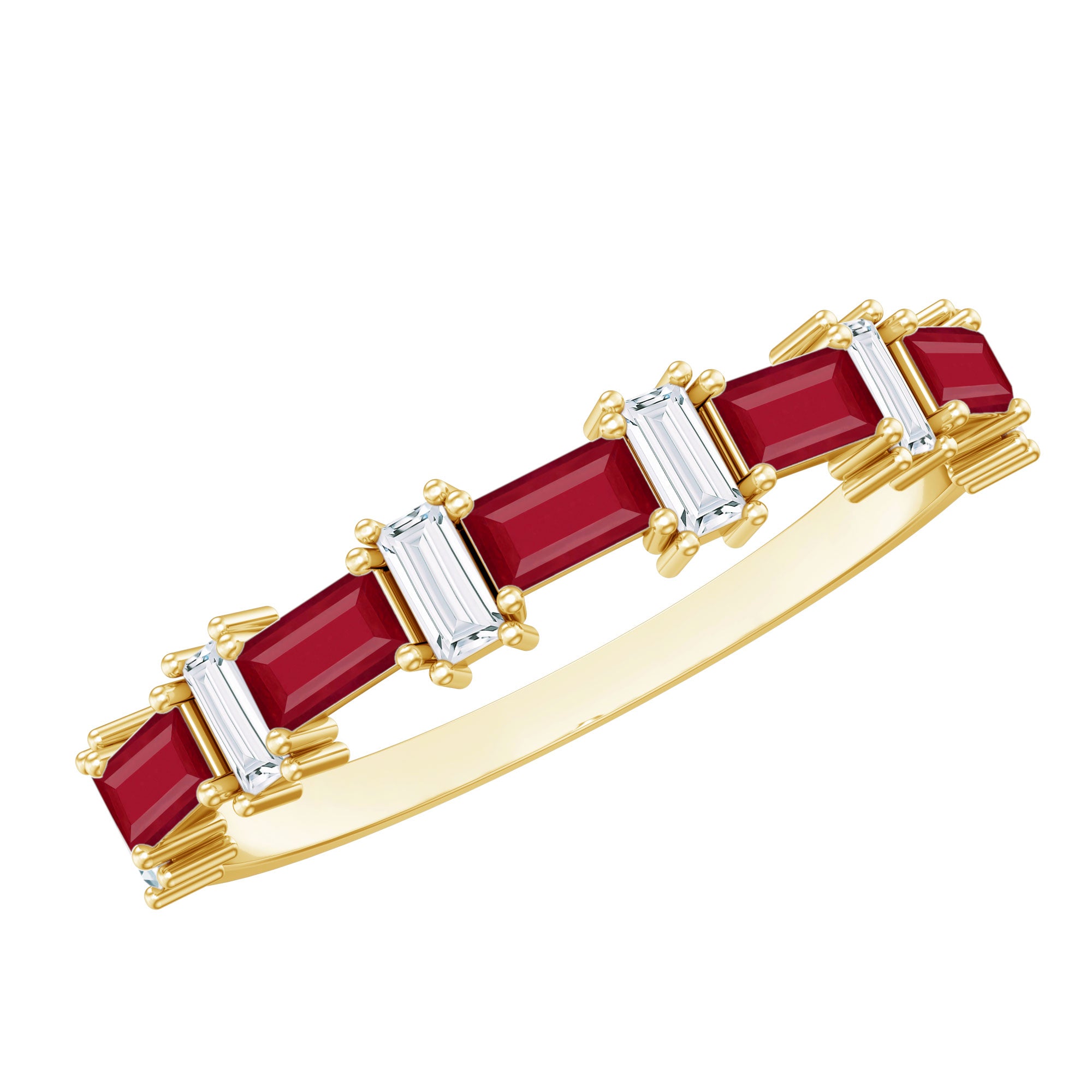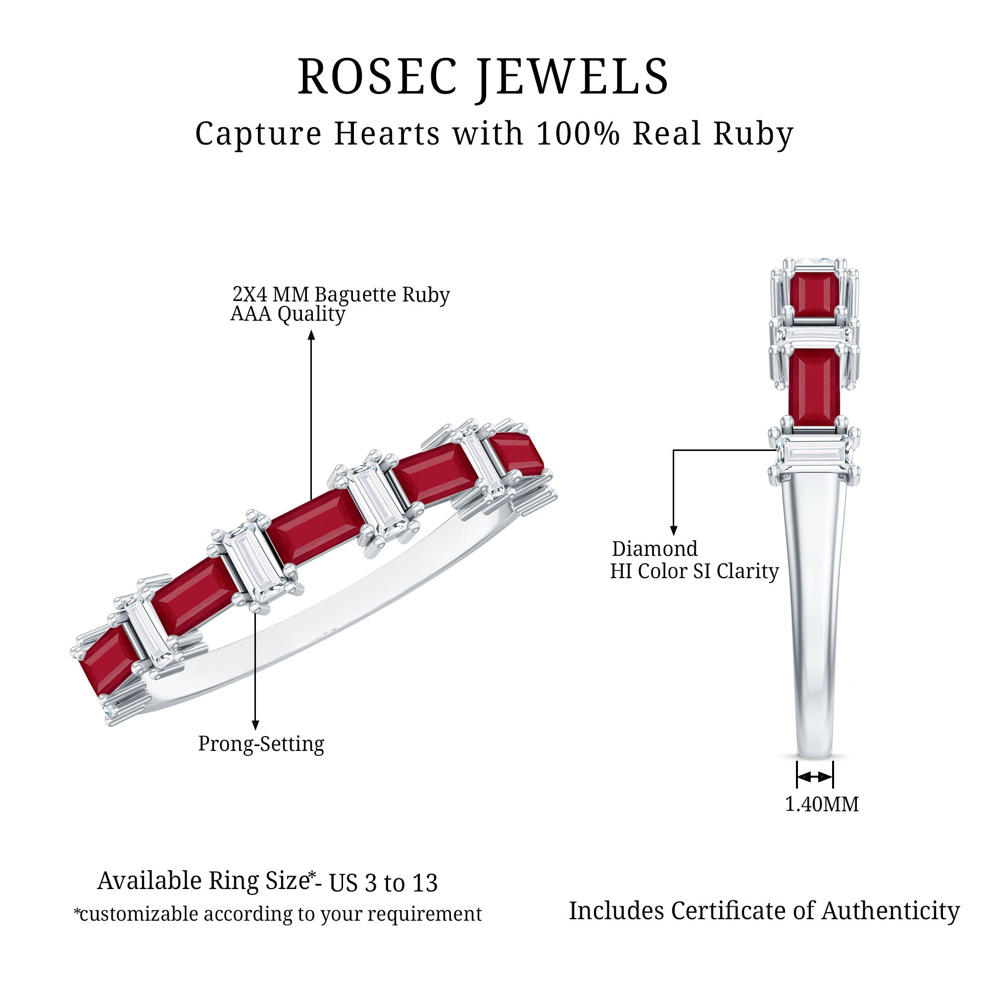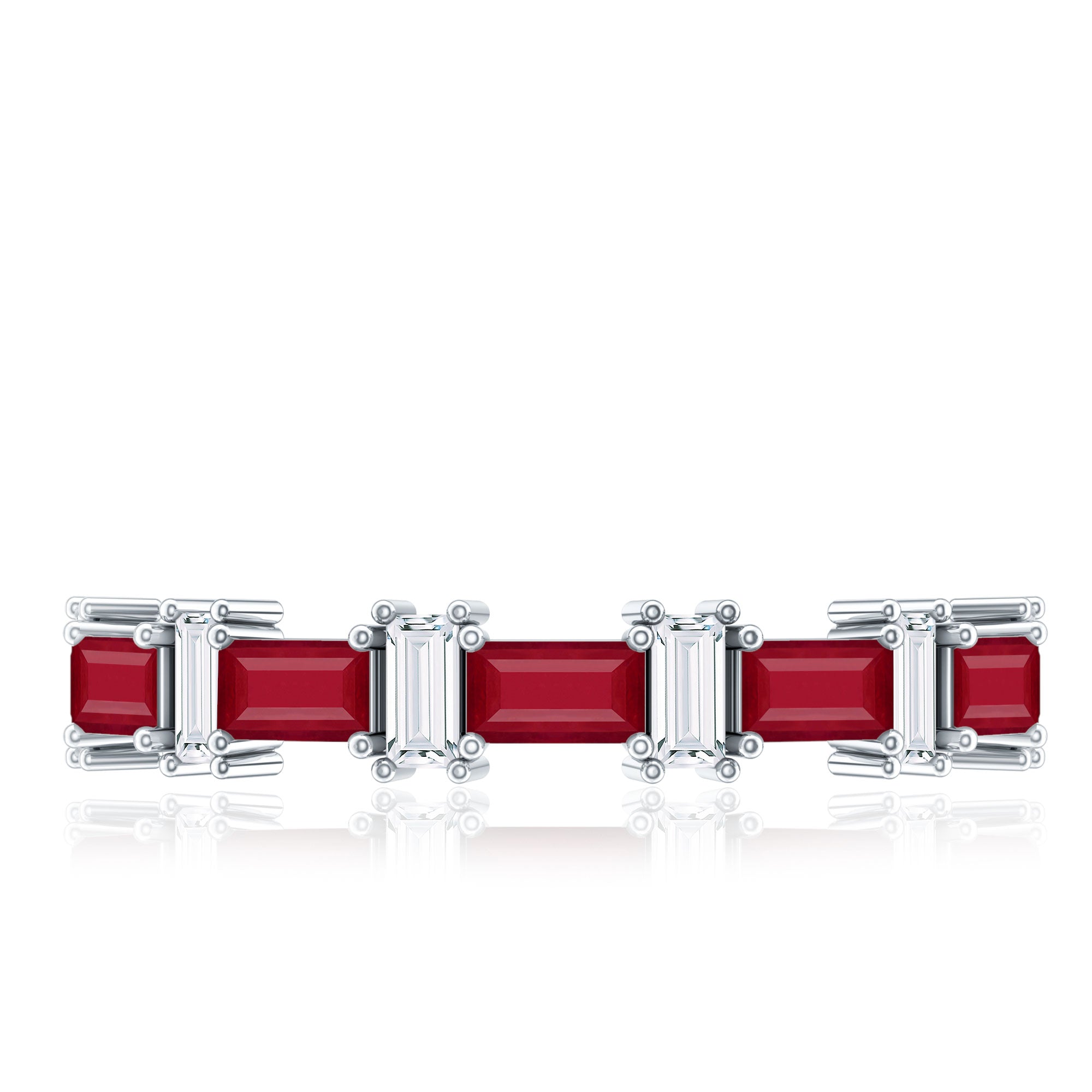 Baguette Cut Ruby Half Eternity Ring with Diamond Accent