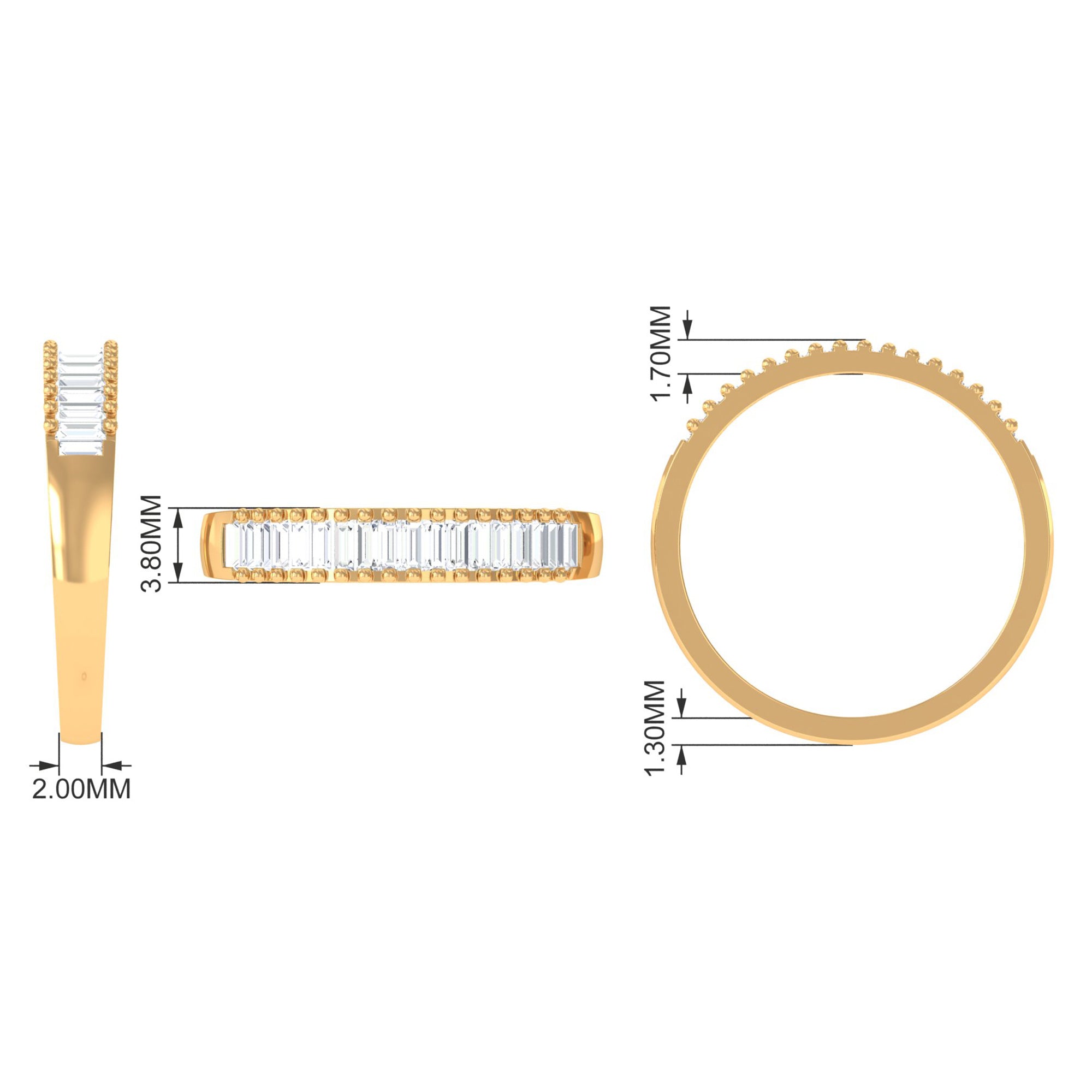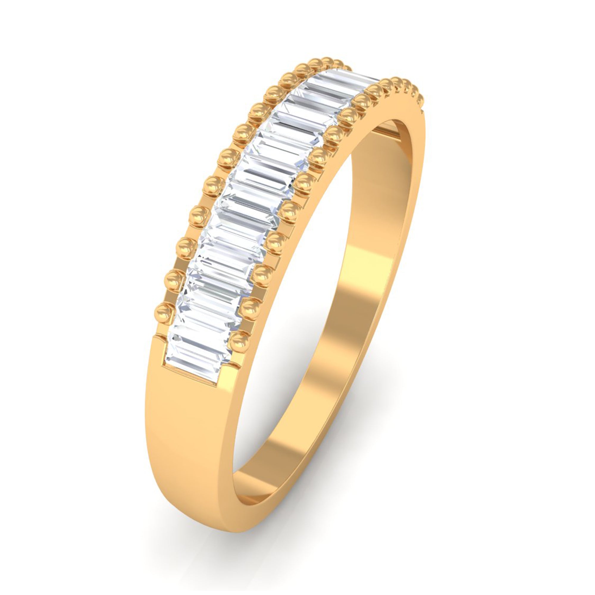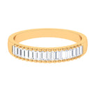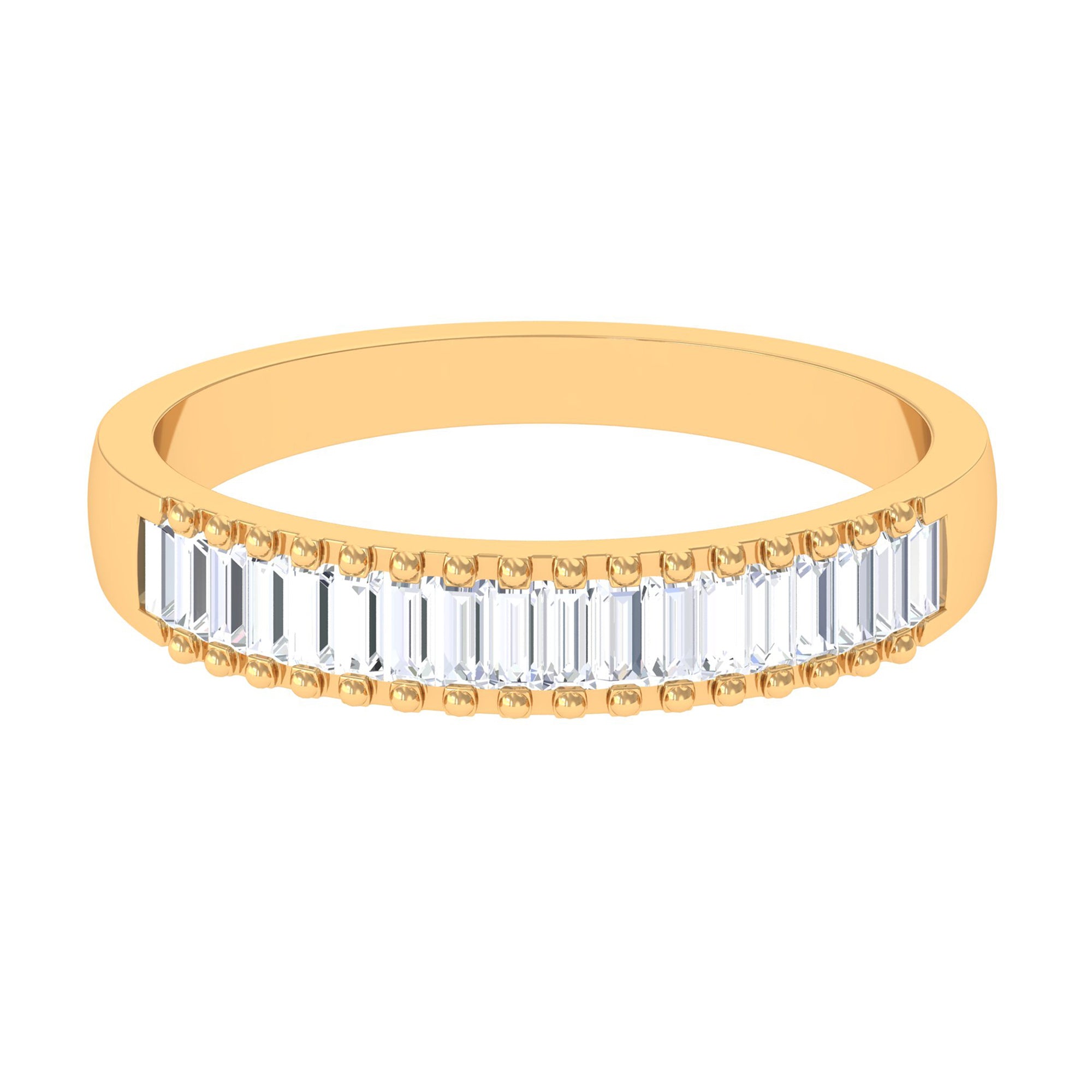 Baguette Cut Zircon Minimal Half Eternity Ring with Gold Beaded