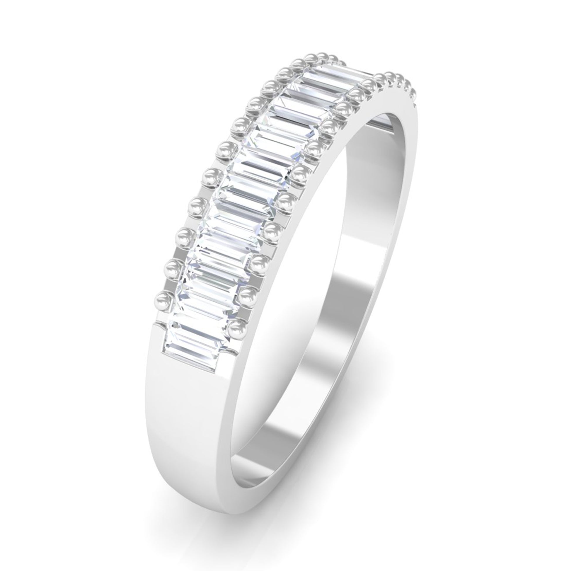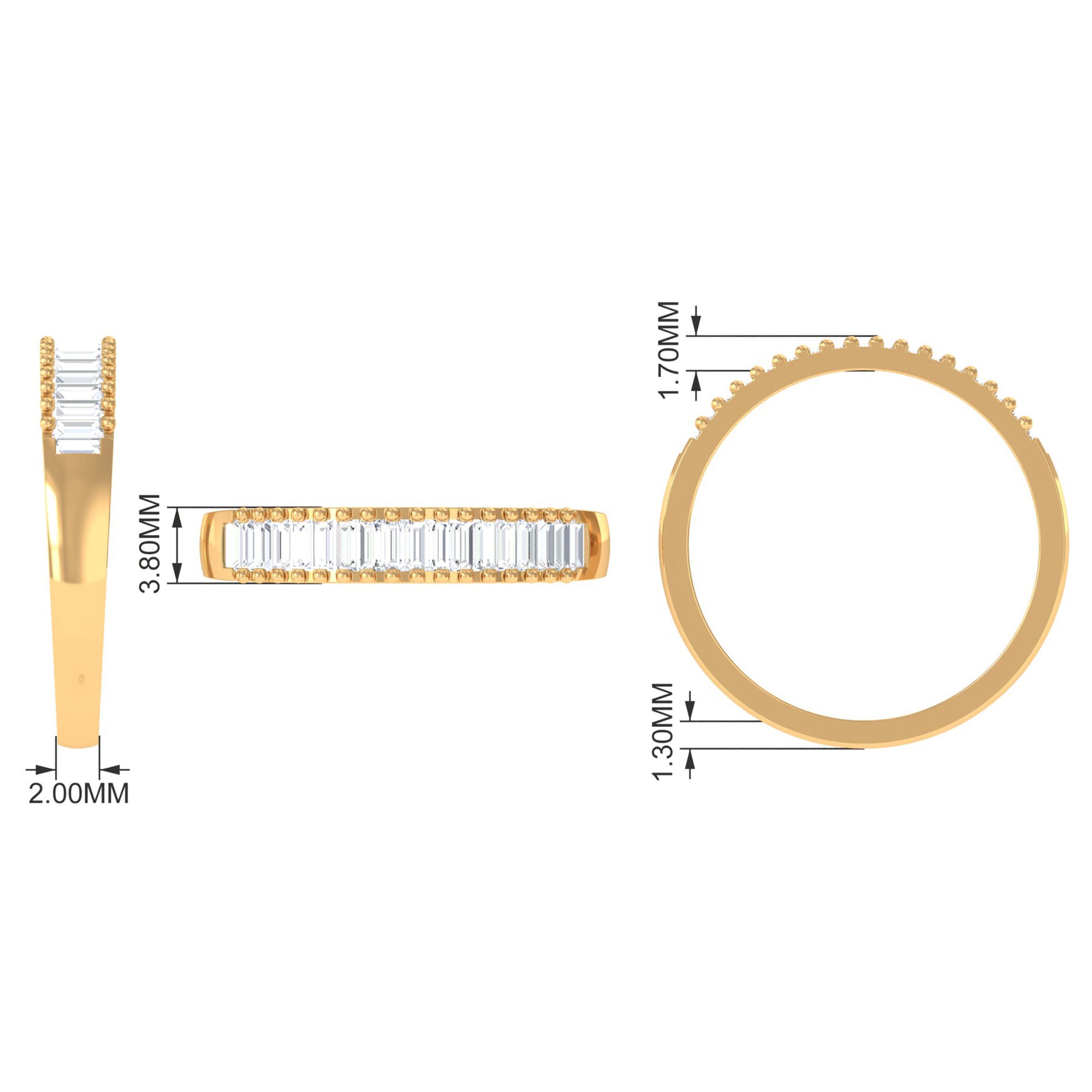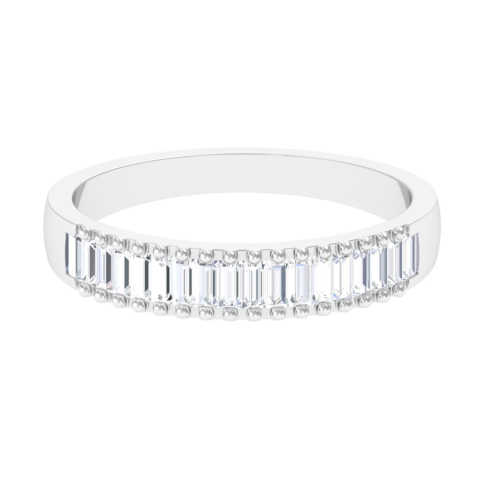 Baguette Cut Zircon Minimal Half Eternity Ring with Gold Beaded