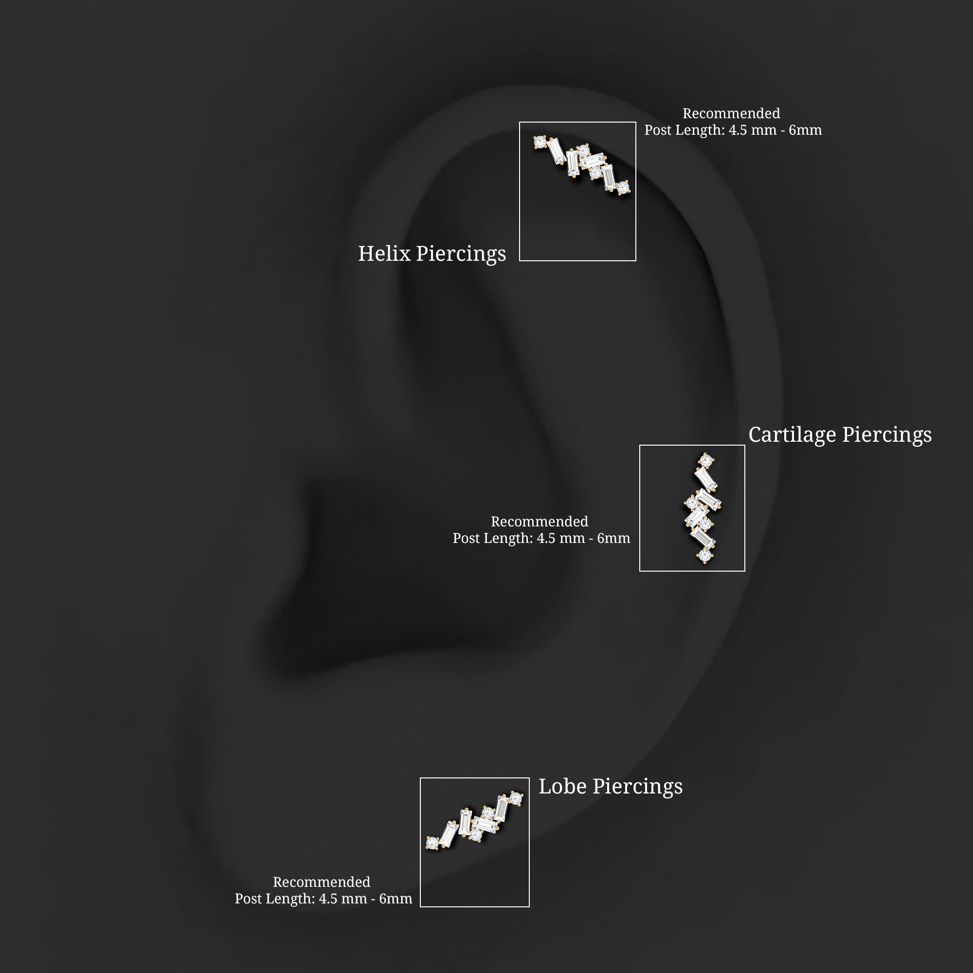 - Fashioned in iconic hallmarked gold for everyday wear, this baguette earring can be styled on your lower helix, cartilage, or upper lobe piercings.